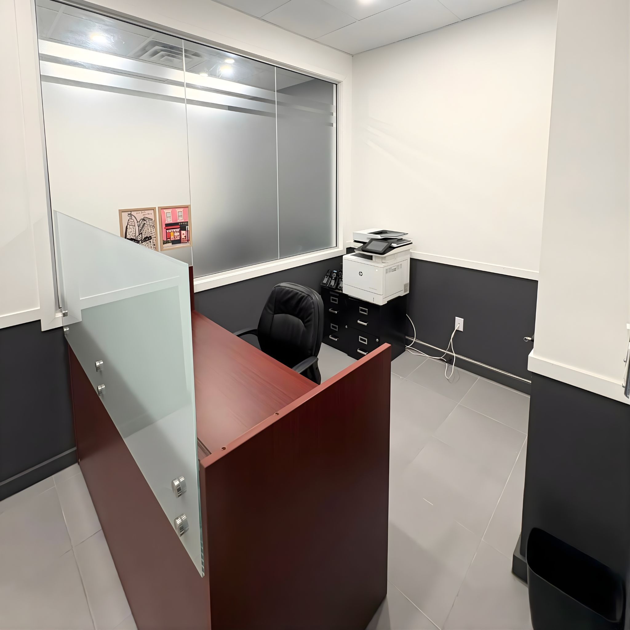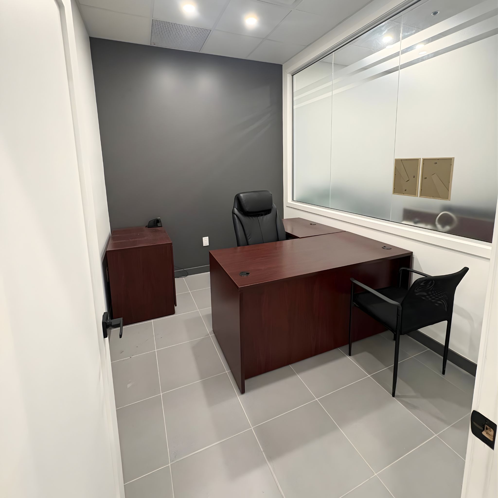 Commercial office space for lease - fully furnished (not residential)turnkey, fully furnished office suite in a prime commercial/industrial area. Featuring 7 private offices, conference/board room, reception area, and 1 bathroom. Large exterior-facing windows provide strong natural light, with modern frosted glass between offices for privacy while maintaining a clean, professional layout. Ample on-site parking. Ideal for accounting, legal, insurance, consulting, or corporate teams. Rent: $4,000 + hst per month, utilities separate, tmi separate term: minimum 2-year lease this is a commercial office space only - not a residential rental. Immediate availability. 3 month rent as deposit + first month rent
