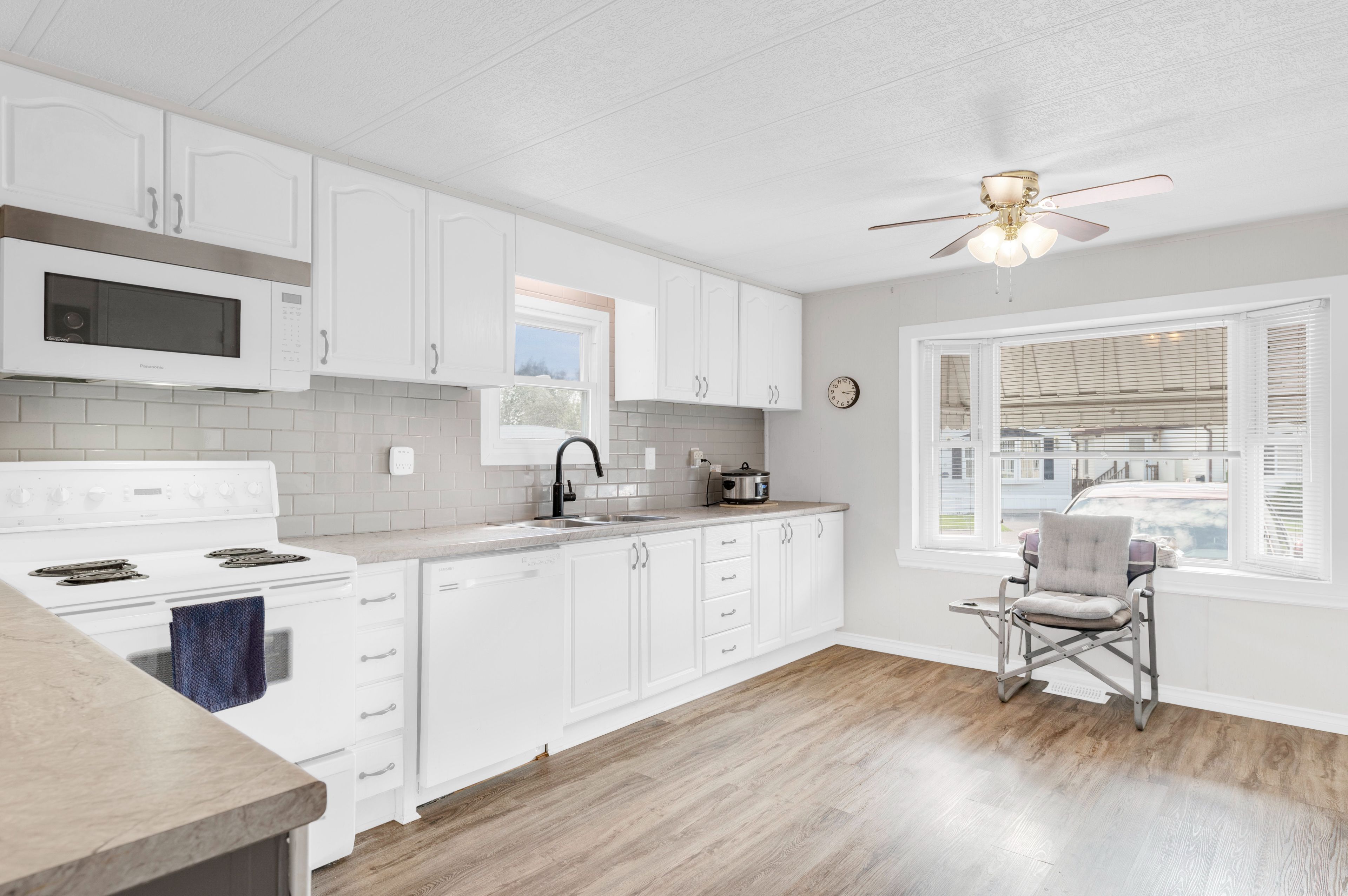 • Open-concept design with a spacious eat-in kitchen and ample storage.