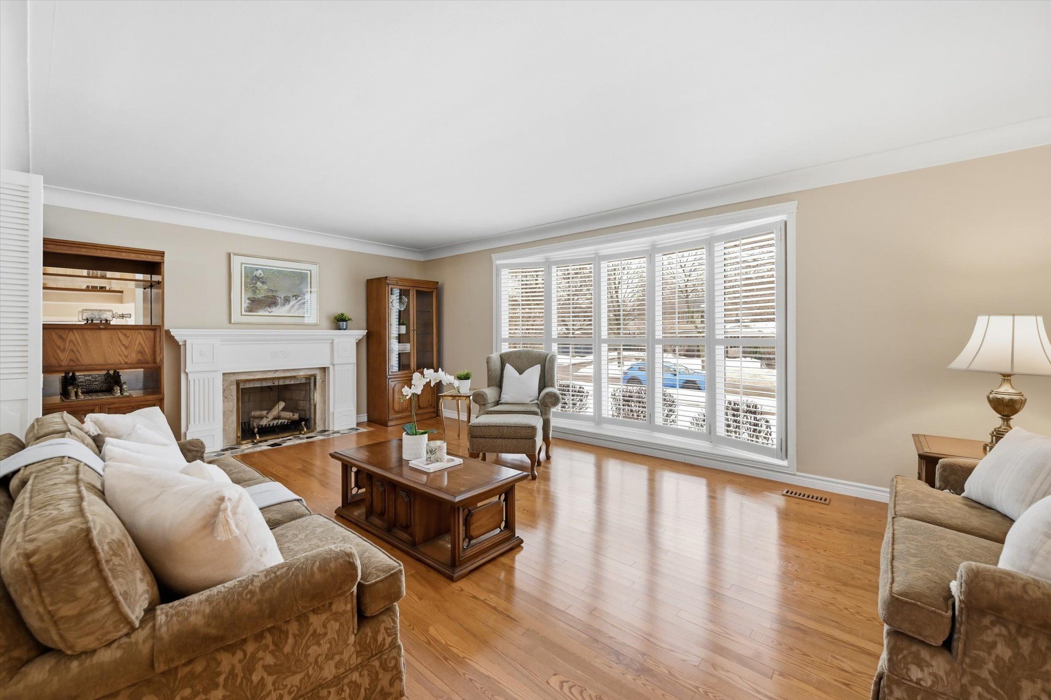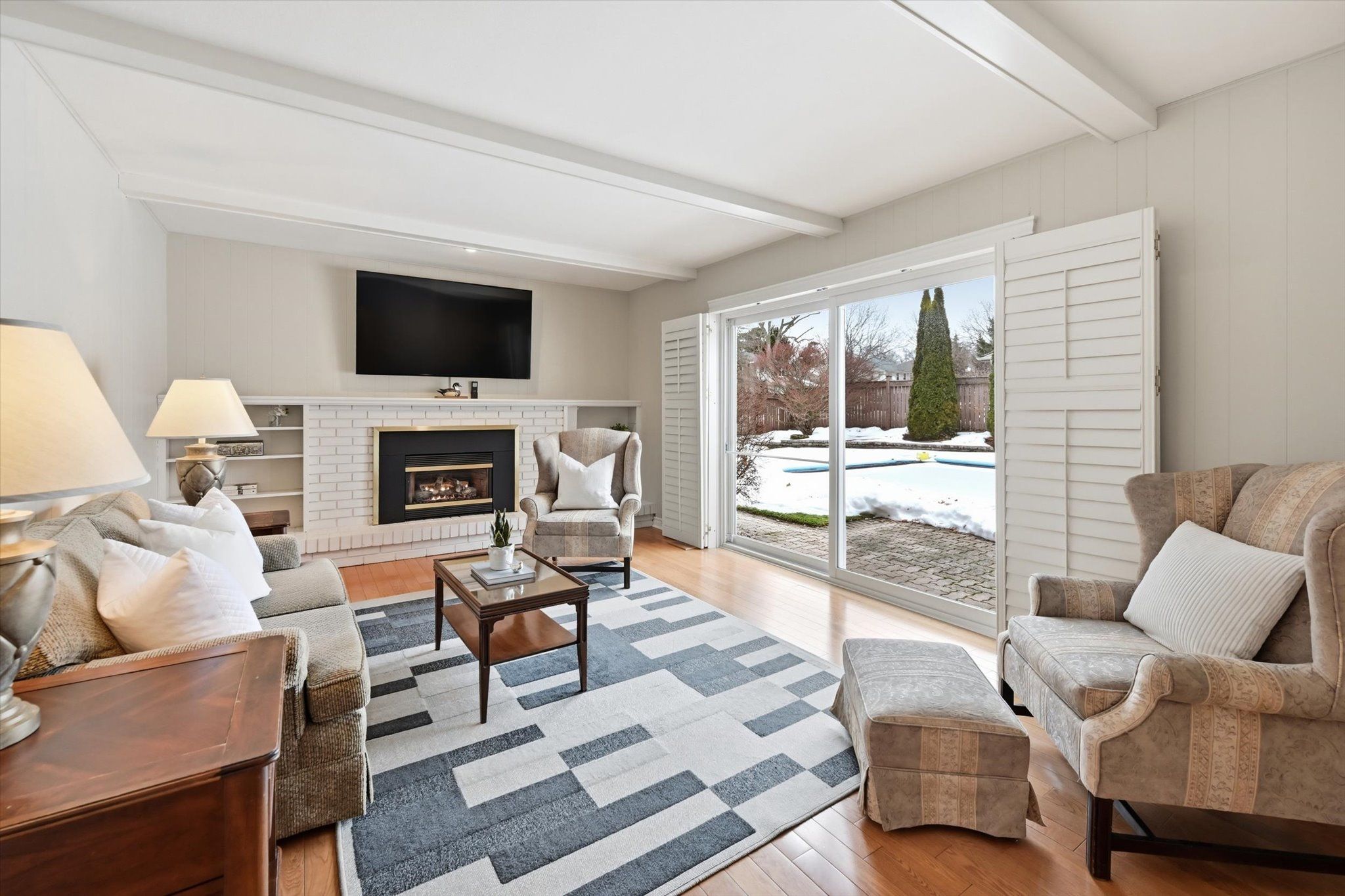 Beautiful family home in the desirable shoreacres neighbourhood on a premium mature pied lot 77 ft x 112 ft and 100 ft across the back. Walking distance to all amenities including tuck and nelson schools, paletta mansion park and lake ontario. Features include a long double drive and double garage with inside entry. The lot is fully fenced and landscaped with an inviting in ground heated pool and pool shed. Meticulously cared for and move in ready with new paint throughout. The home is large with four bedrooms in upper level, a main bath and an ensuite bath in the primary. Large separate living room with plenty of natural light from floor to ceiling window with california shutters, a wood burning fireplace, hardwood floors and crown moulding. The spacious dining room has plenty of room for large gatherings and a walk out to deck/back yard gardens and pool. Updated eat-in kitchen with pot lights, newer appliances and plenty of storage. The main foyer is welcoming and allows for easy entry for entertaining. It flows into the main floor family room with gas fireplace, a walkout to rear patio/gardens and concrete pool for swimming and soaking. There is a second walkout door and 2 piece bath beside the family room. The lower level offers a massive new family room with built ins for office/storage, pot lights and bar area and separate updated laundry room.