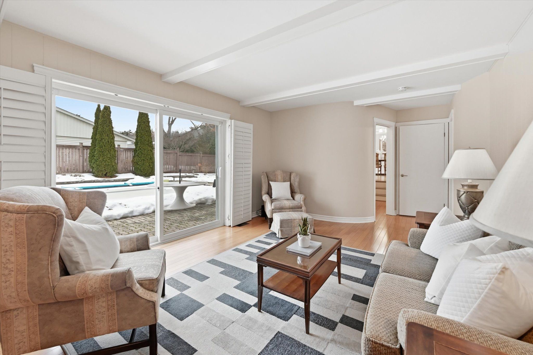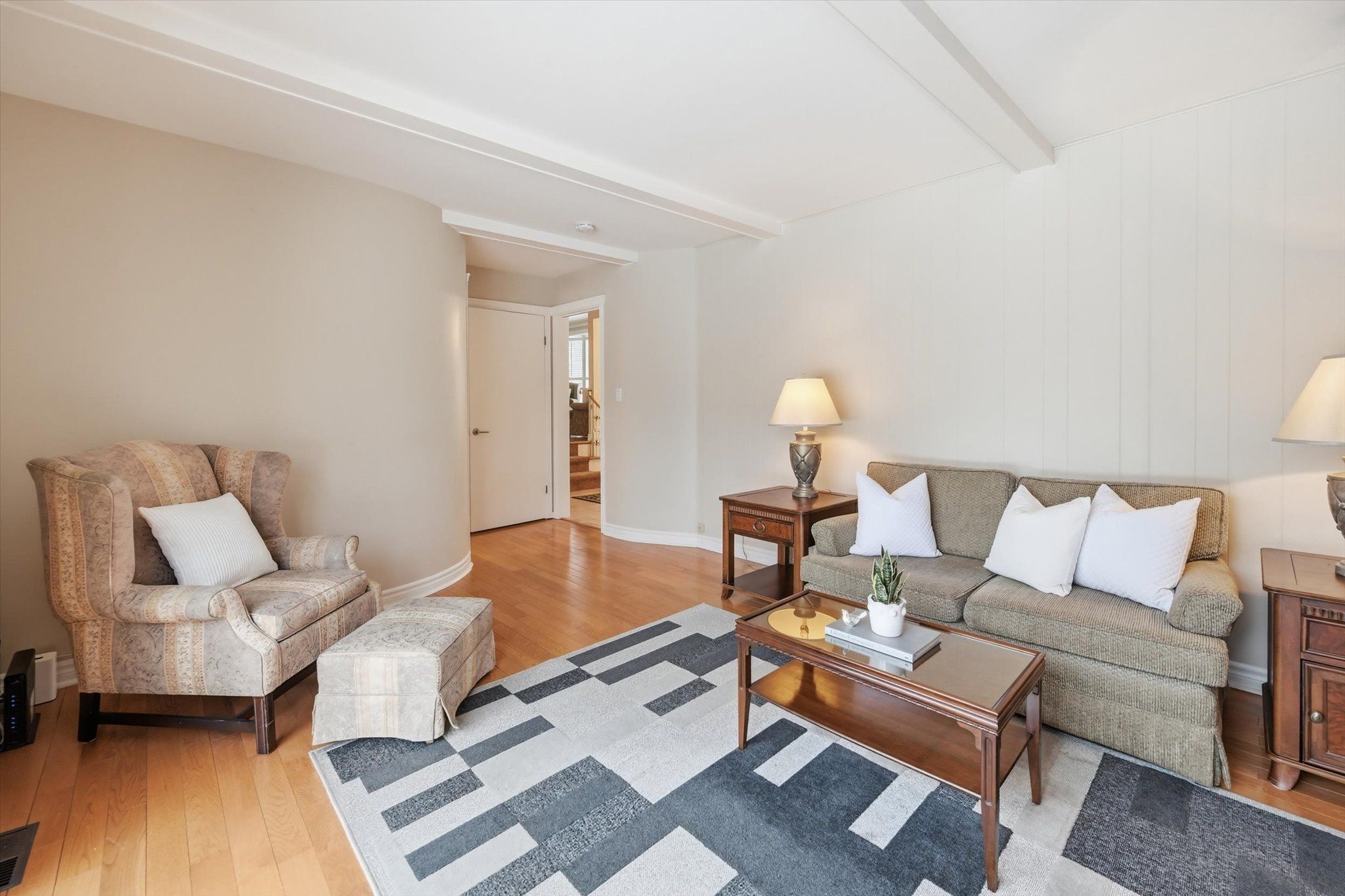 • Large living and dining areas with natural light and hardwood floors.