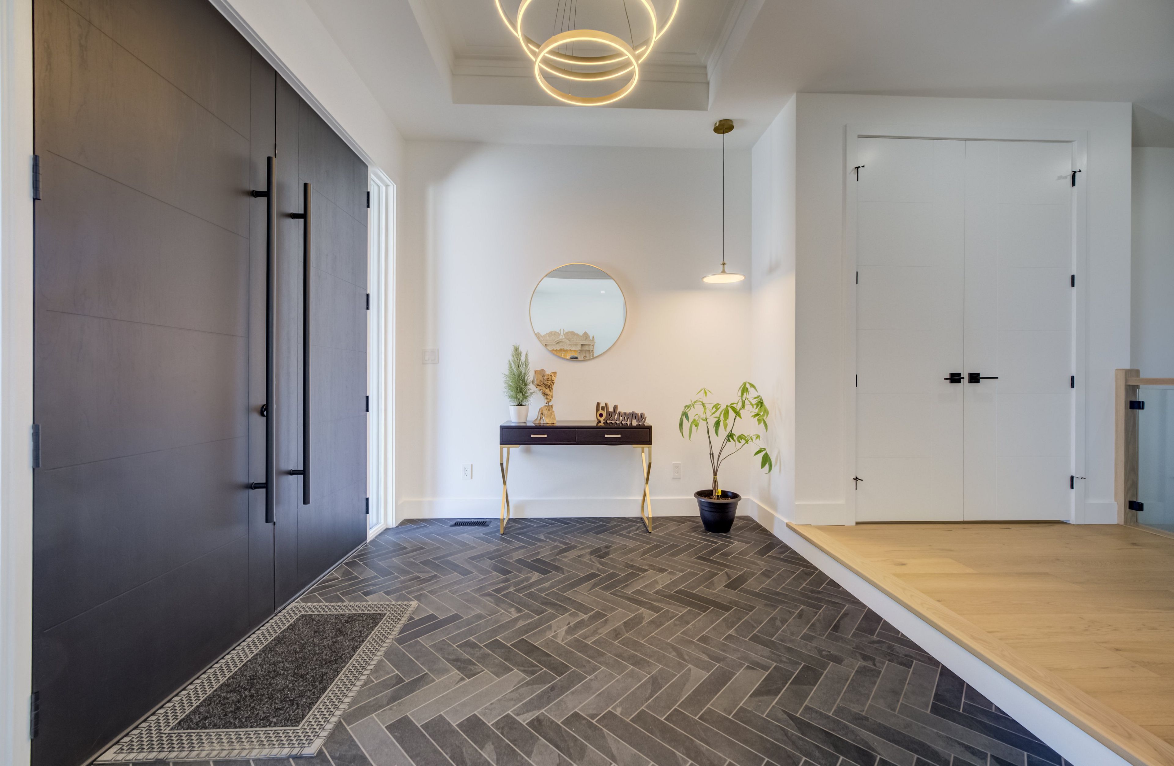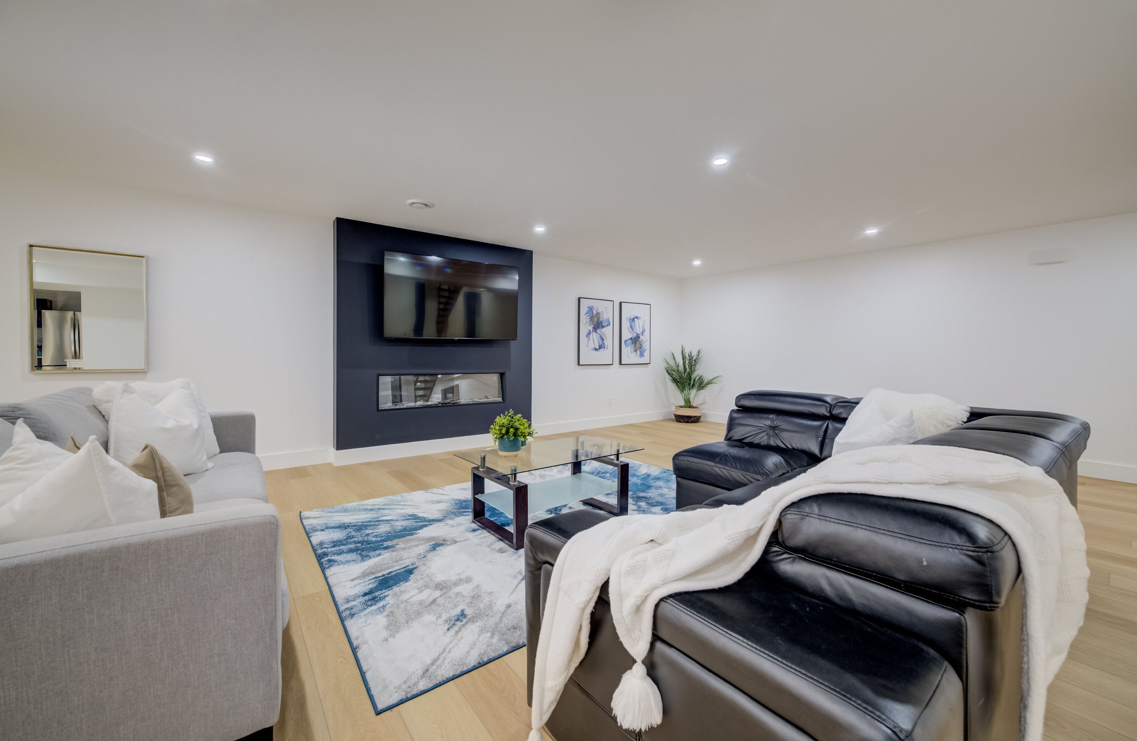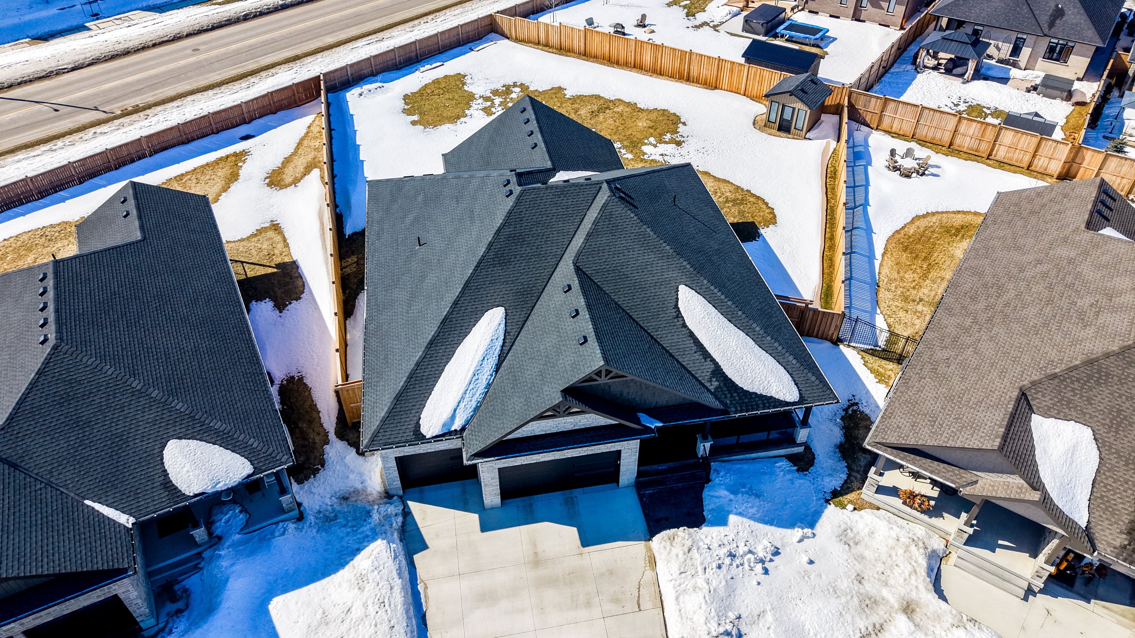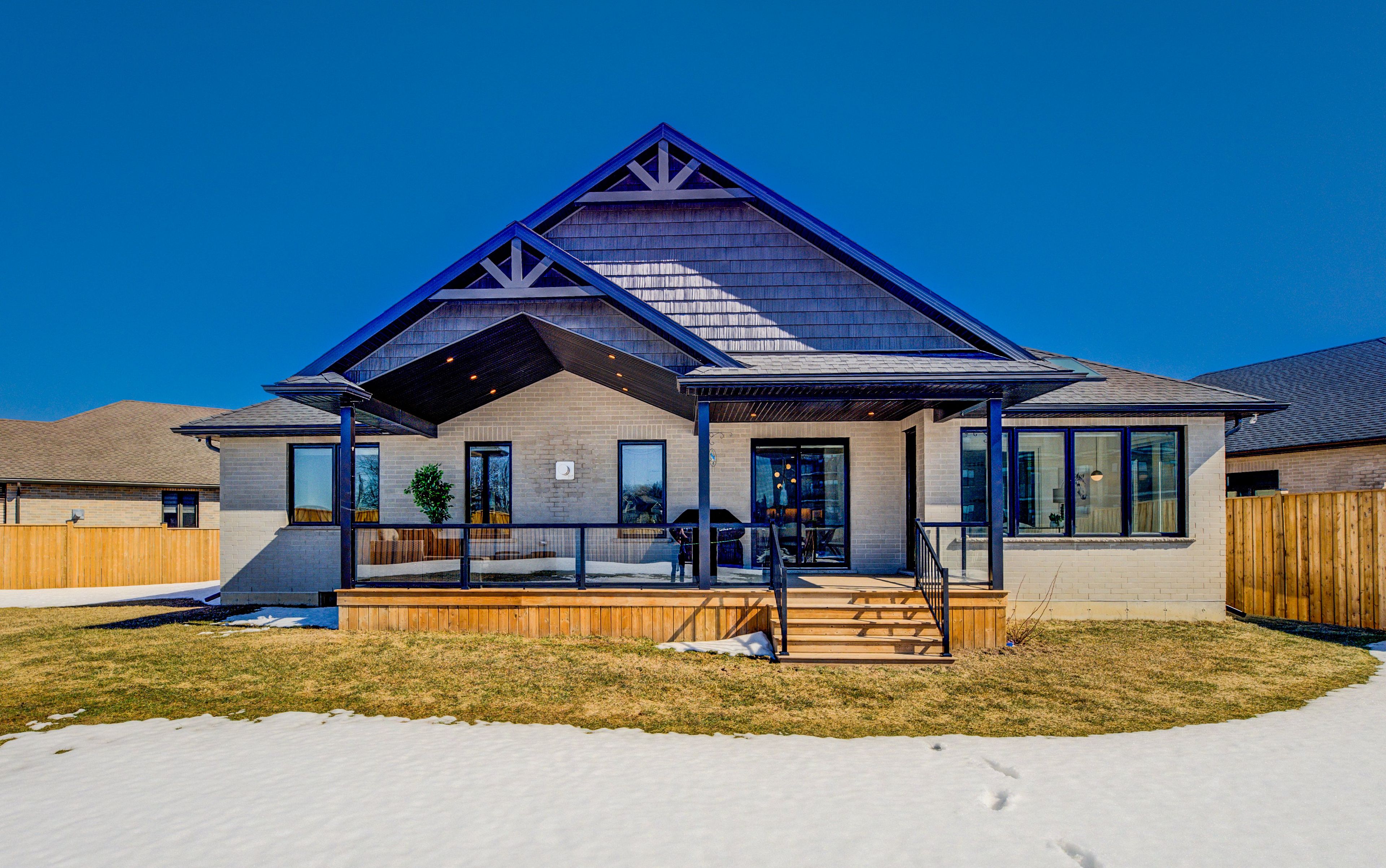 A rare opportunity to own exceptional custom-built oversized pie shape lot bungalow by b&s construction offering the perfect luxury and modern design. This stunning showcase high-end upgrades inside and out. It offers over 5,000 sq. Ft. Of total living space. The main level features 3 bedrooms, 2. 5 washrooms, office/ den room, bright sunroom. The finished basement includes 2 bedrooms, washroom, a full kitchen, large rec room, and a gym area, making it perfect for extended family living. The impressive curb appeal begins with 3-car concrete driveway, stamped concrete porch, glass railings, separate side entrance to the basement. Step in through the grand double-door entrance into a soaring 10ft foyer with designer tray ceiling and luxurious tile flooring. The main floor flows with 9ft ceilings, european oak hardwood flooring throughout, and breathtaking living room featuring gas fireplace with custom built-ins and a striking false beam 10ft ceiling. The chef-inspired kitchen is a true showpiece, complete with premium cambria berkshire brass quartz countertops, a waterfall island, and full-height quartz backsplash. High-end kitchenaid built-in appliances, slab cabinetry with soft-close features, and premium kuzco lighting elevate the space. A well-appointed mudroom with brazilian slate tile, quartz finishes. Bedrooms feature custom cabinetry, while the primary suite offers a luxurious retreat with a false beam 10 ft ceiling, oversized walk-in closets with custom built-ins, and a spa-like ensuite showcasing full-height premium tile, double sink vanity with waterfall edge, quartz counters. A sunroom accessible from both the primary bedroom and dining area, complete with two large skylights, provides a bright and relaxing space year-round. The finished basement features custom floating wooden slab stairs, recreation room with electric fireplace, second kitchen with custom cabinetry, and beautifully finished 4 pc bathroom with quartz finishes, heated basement floors.