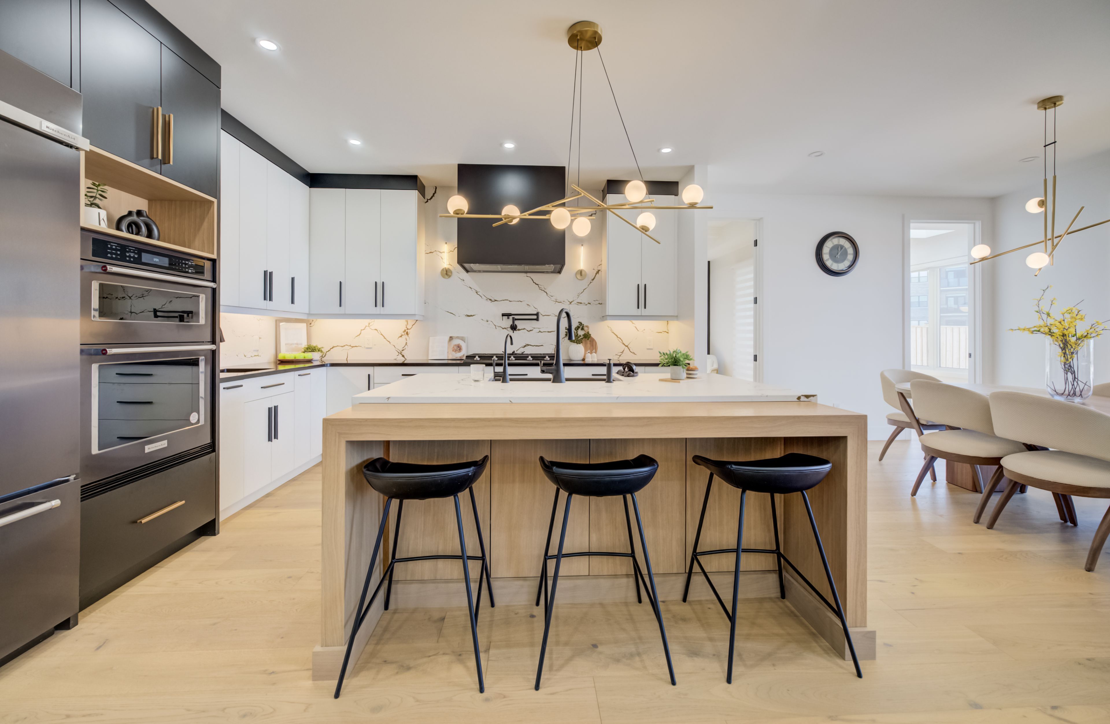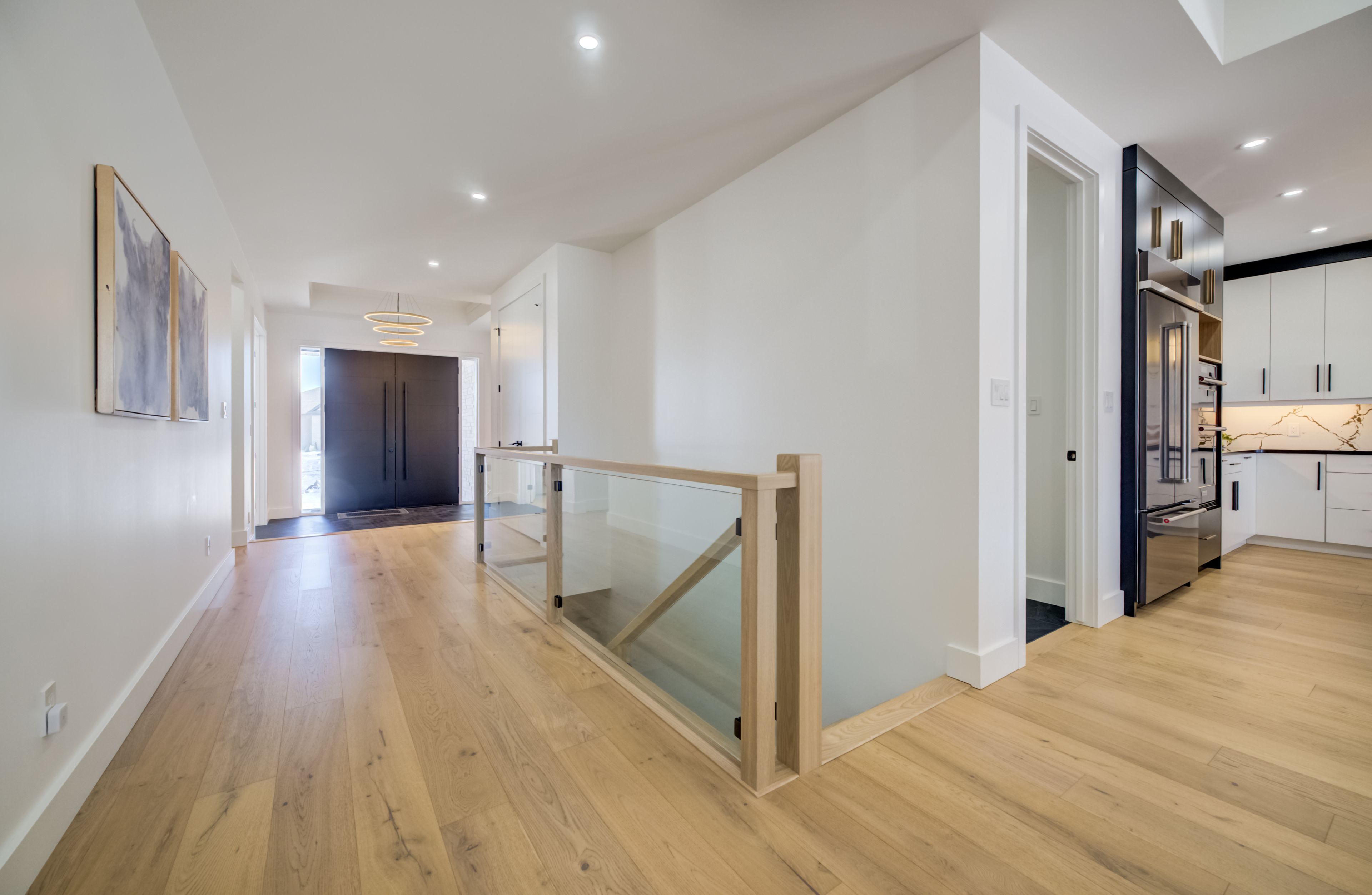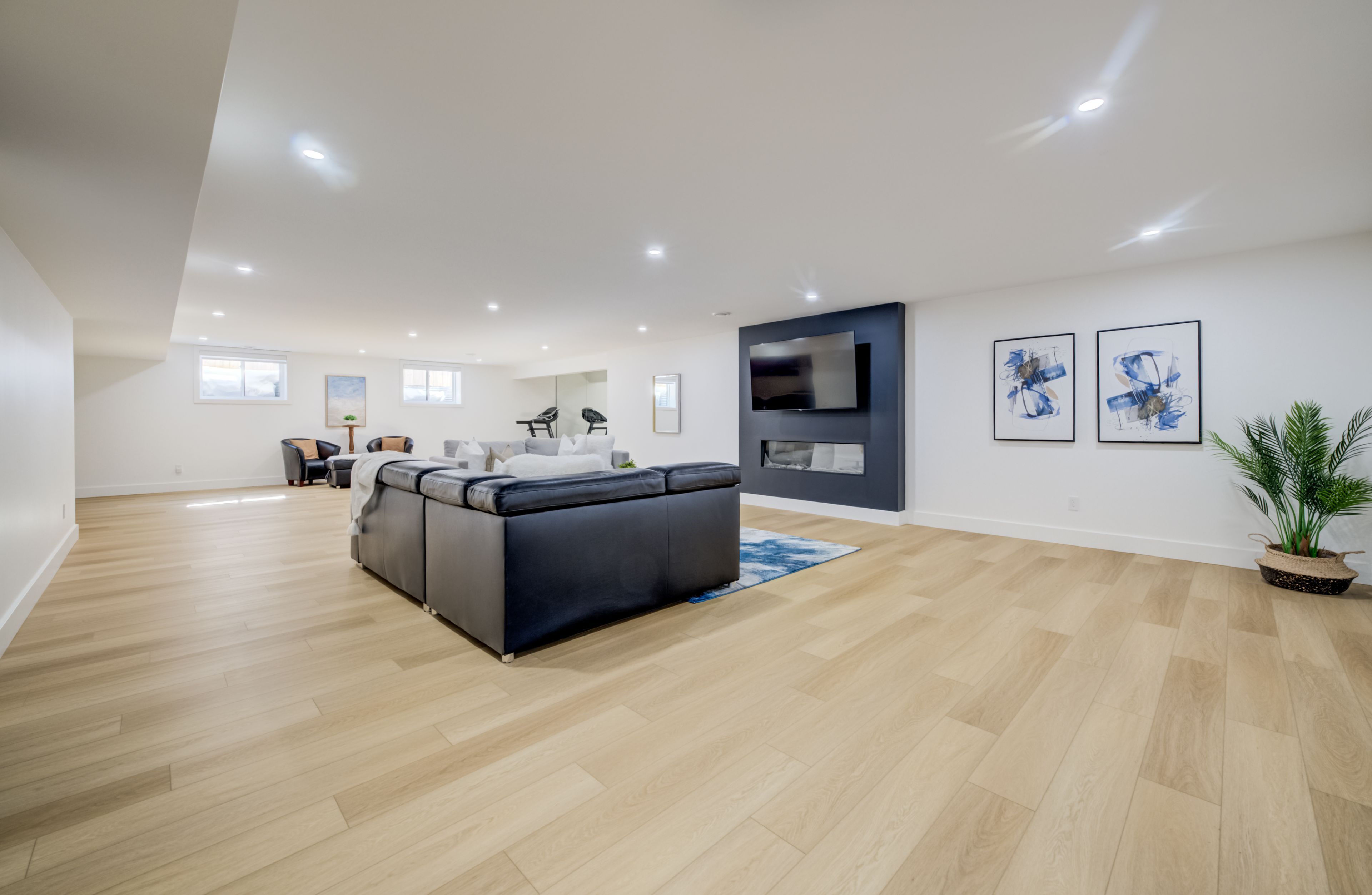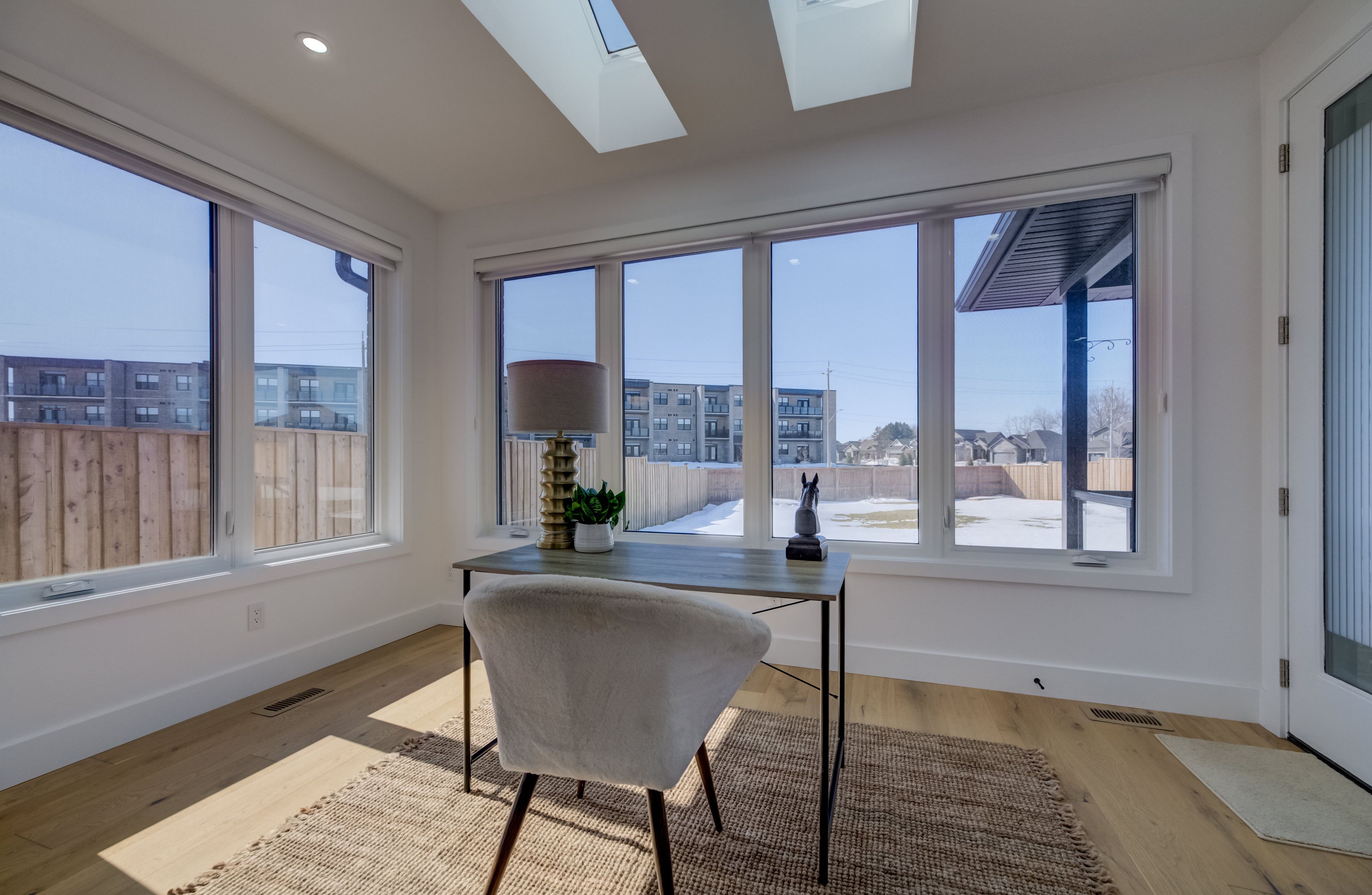 A rare opportunity to own exceptional custom-built oversized pie shape lot bungalow by b&s construction offering the perfect luxury and modern design. This stunning showcase high-end upgrades inside and out. It offers over 5,000 sq. Ft. Of total living space. The main level features 3 bedrooms, 2. 5 washrooms, office/ den room, bright sunroom. The finished basement includes 2 bedrooms, washroom, a full kitchen, large rec room, and a gym area, making it perfect for extended family living. The impressive curb appeal begins with 3-car concrete driveway, stamped concrete porch, glass railings, separate side entrance to the basement. Step in through the grand double-door entrance into a soaring 10ft foyer with designer tray ceiling and luxurious tile flooring. The main floor flows with 9ft ceilings, european oak hardwood flooring throughout, and breathtaking living room featuring gas fireplace with custom built-ins and a striking false beam 10ft ceiling. The chef-inspired kitchen is a true showpiece, complete with premium cambria berkshire brass quartz countertops, a waterfall island, and full-height quartz backsplash. High-end kitchenaid built-in appliances, slab cabinetry with soft-close features, and premium kuzco lighting elevate the space. A well-appointed mudroom with brazilian slate tile, quartz finishes. Bedrooms feature custom cabinetry, while the primary suite offers a luxurious retreat with a false beam 10 ft ceiling, oversized walk-in closets with custom built-ins, and a spa-like ensuite showcasing full-height premium tile, double sink vanity with waterfall edge, quartz counters. A sunroom accessible from both the primary bedroom and dining area, complete with two large skylights, provides a bright and relaxing space year-round. The finished basement features custom floating wooden slab stairs, recreation room with electric fireplace, second kitchen with custom cabinetry, and beautifully finished 4 pc bathroom with quartz finishes, heated basement floors.