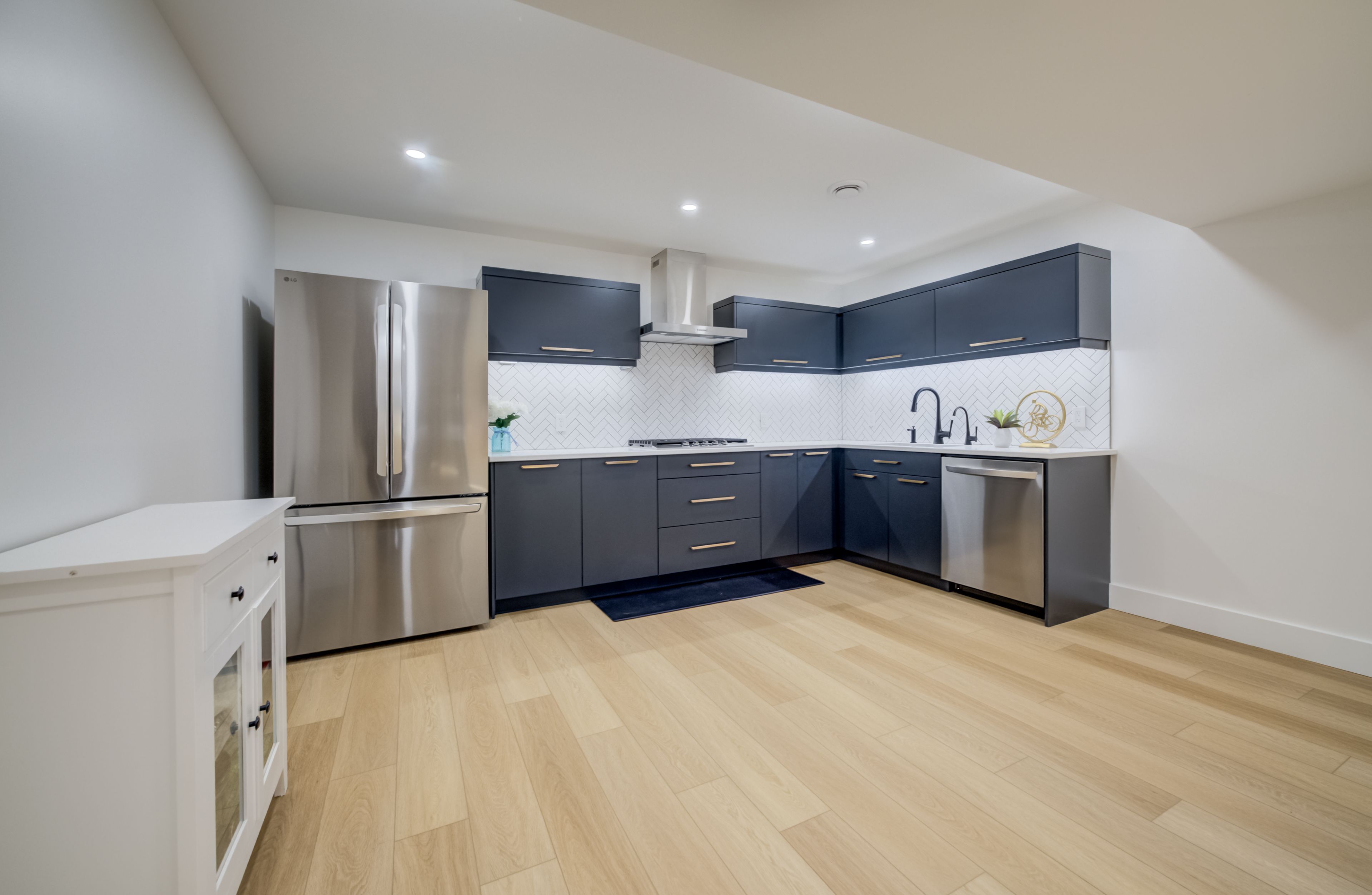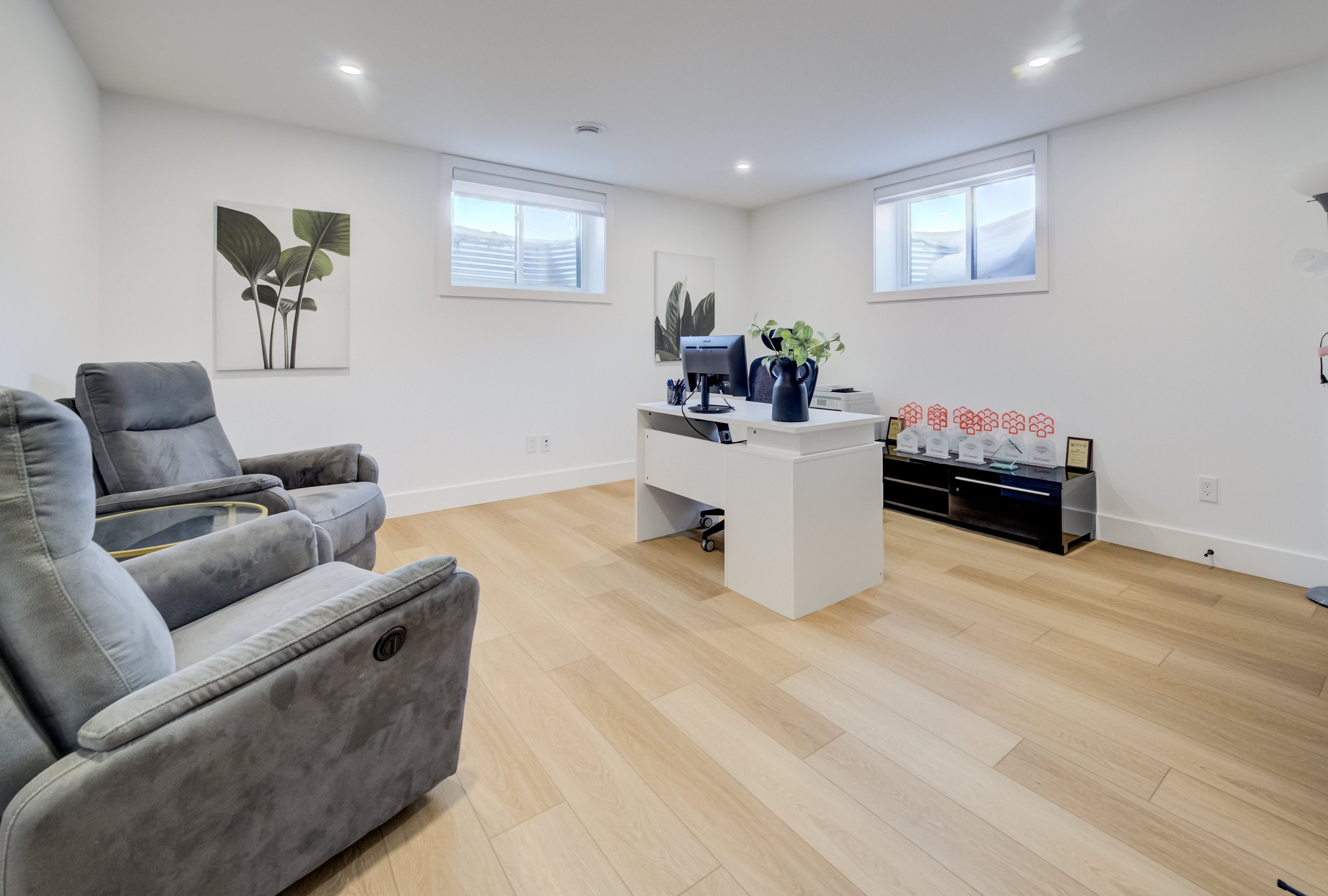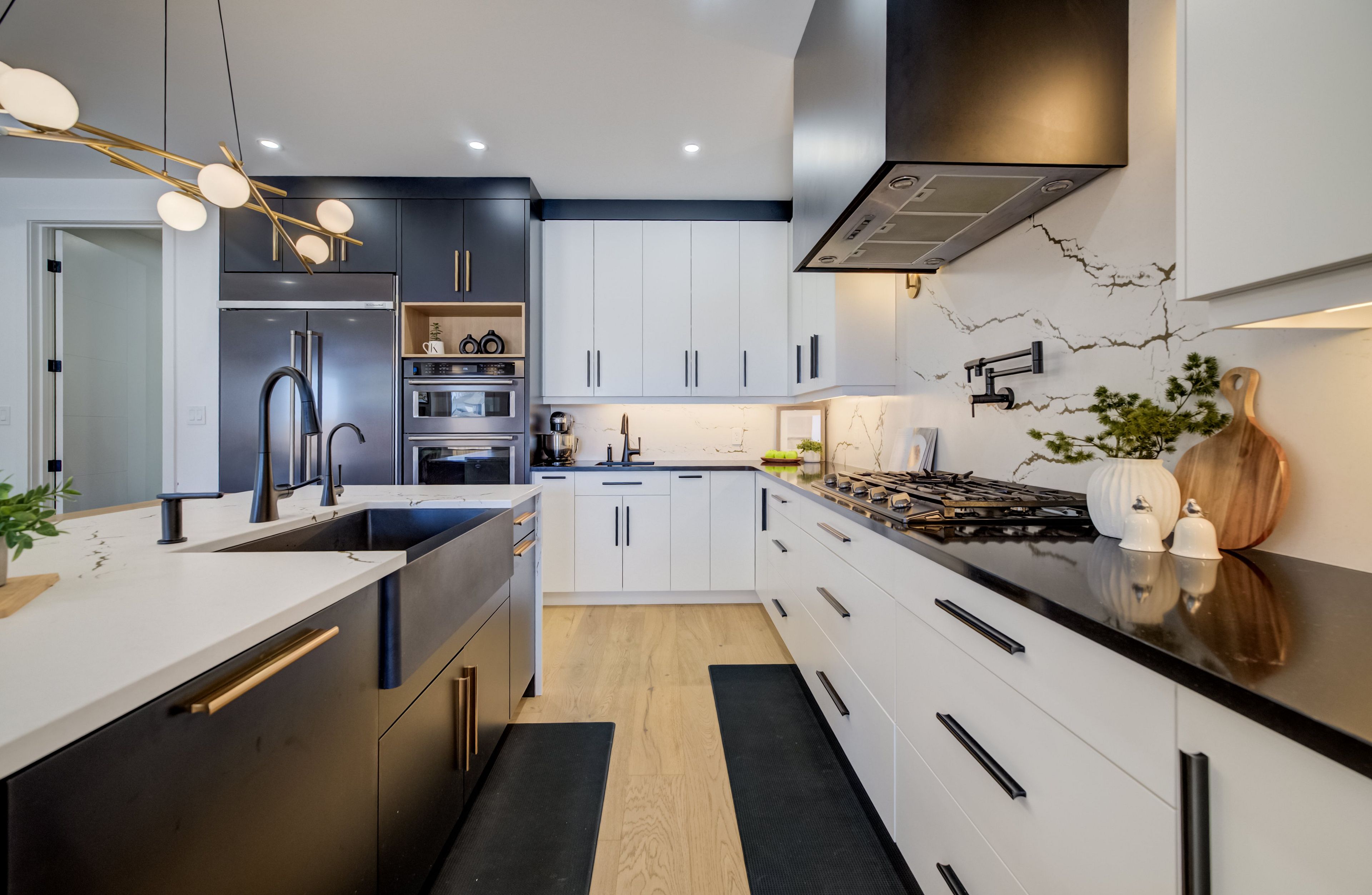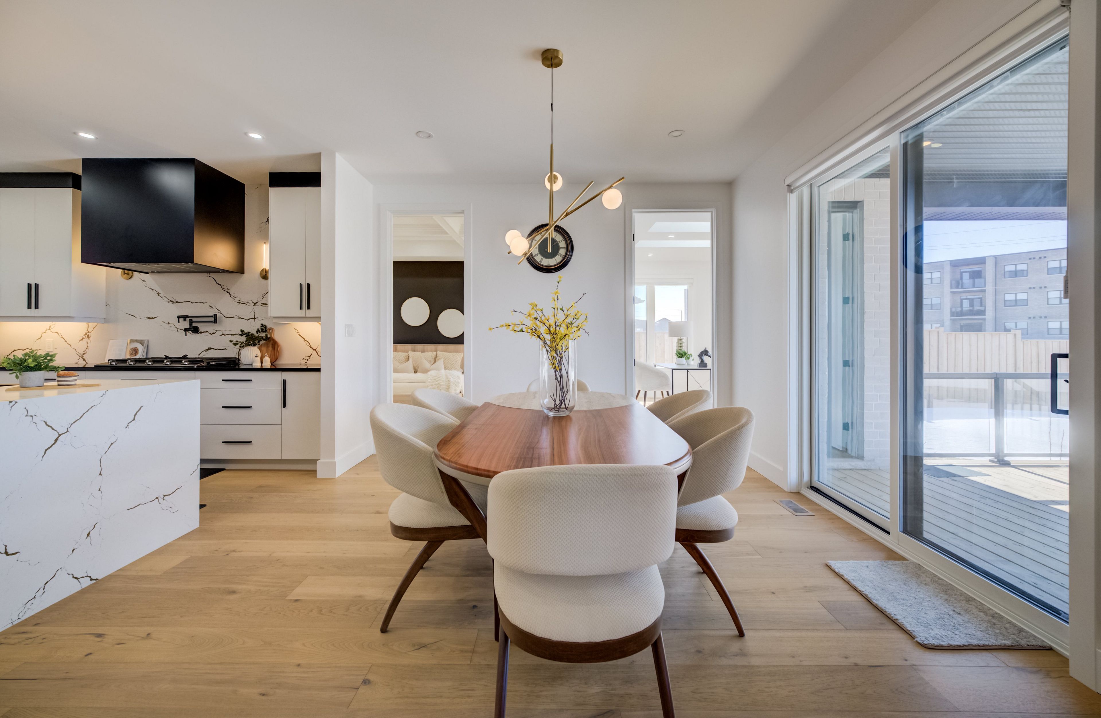 A rare opportunity to own exceptional custom-built oversized pie shape lot bungalow by b&s construction offering the perfect luxury and modern design. This stunning showcase high-end upgrades inside and out. It offers over 5,000 sq. Ft. Of total living space. The main level features 3 bedrooms, 2. 5 washrooms, office/ den room, bright sunroom. The finished basement includes 2 bedrooms, washroom, a full kitchen, large rec room, and a gym area, making it perfect for extended family living. The impressive curb appeal begins with 3-car concrete driveway, stamped concrete porch, glass railings, separate side entrance to the basement. Step in through the grand double-door entrance into a soaring 10ft foyer with designer tray ceiling and luxurious tile flooring. The main floor flows with 9ft ceilings, european oak hardwood flooring throughout, and breathtaking living room featuring gas fireplace with custom built-ins and a striking false beam 10ft ceiling. The chef-inspired kitchen is a true showpiece, complete with premium cambria berkshire brass quartz countertops, a waterfall island, and full-height quartz backsplash. High-end kitchenaid built-in appliances, slab cabinetry with soft-close features, and premium kuzco lighting elevate the space. A well-appointed mudroom with brazilian slate tile, quartz finishes. Bedrooms feature custom cabinetry, while the primary suite offers a luxurious retreat with a false beam 10 ft ceiling, oversized walk-in closets with custom built-ins, and a spa-like ensuite showcasing full-height premium tile, double sink vanity with waterfall edge, quartz counters. A sunroom accessible from both the primary bedroom and dining area, complete with two large skylights, provides a bright and relaxing space year-round. The finished basement features custom floating wooden slab stairs, recreation room with electric fireplace, second kitchen with custom cabinetry, and beautifully finished 4 pc bathroom with quartz finishes, heated basement floors.