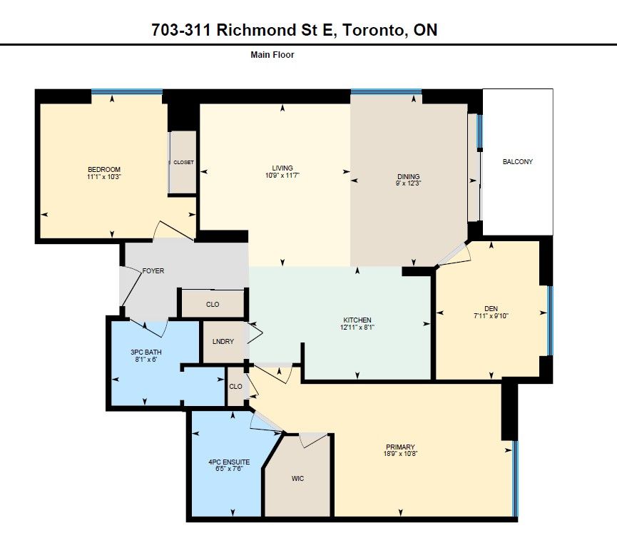Welcome to imperial square! Very rare corner 2-bedroom plus den suite that easily functions as a 3-bedroom! Yes, the den has a real door and a window, and there are two proper bedrooms (with actual doors and windows)! Close to 1000 sq ft of interior space with a great layout that allows for comfortable living and dining, a very spacious kitchen with tons of counter space, storage, and full-size stainless steel appliances, king-sized primary bedroom with a walk-in closet, linen closet, and ensuite bathroom, plus a private true second bedroom. No popcorn ceilings here! Smooth ceilings throughout, great natural light, added pot lights, two hvac units for maximum comfort, plus a balcony... This is one of those layouts that makes condo living easy! Quiet, boutique building (just 90 units) with a gym, party room, and awesome roof deck with bbqs, a quick stroll to st lawrence market, distillery district, financial district, with king and queen streetcars steps away... Come and get it. **storage locker included. No parking** >>**available april 1st**<<