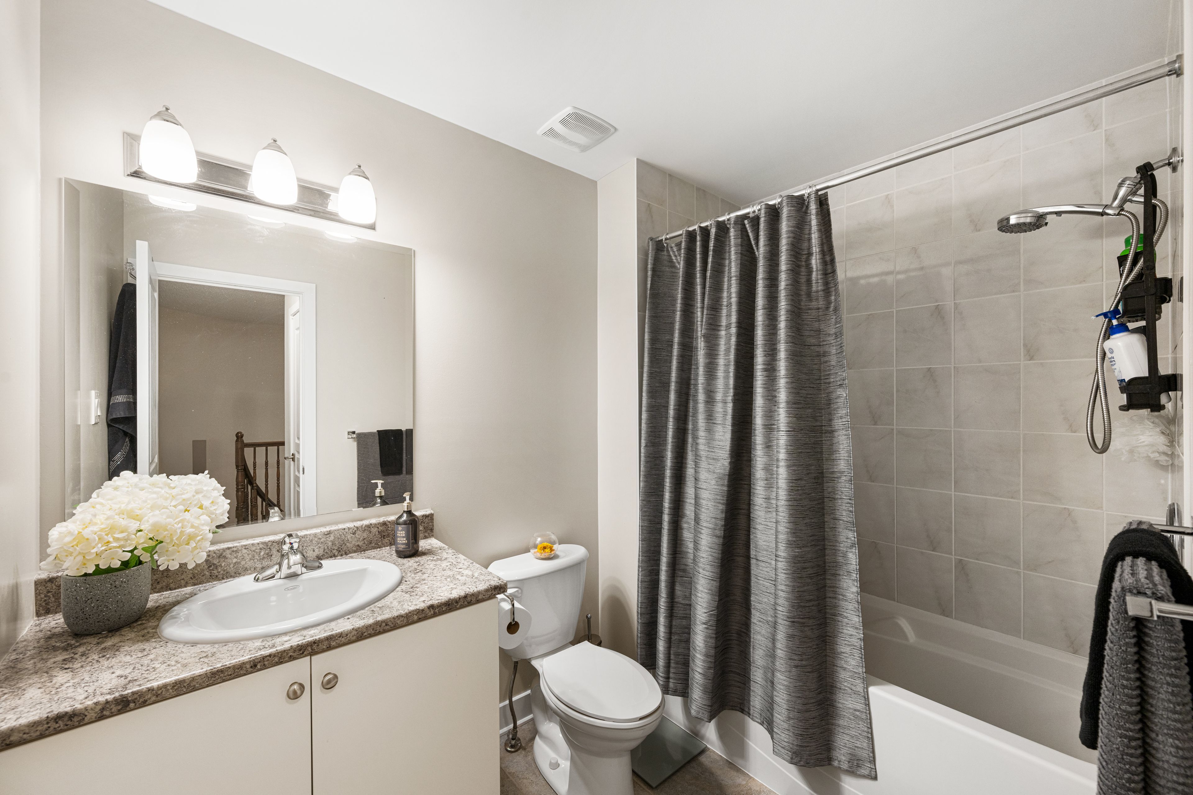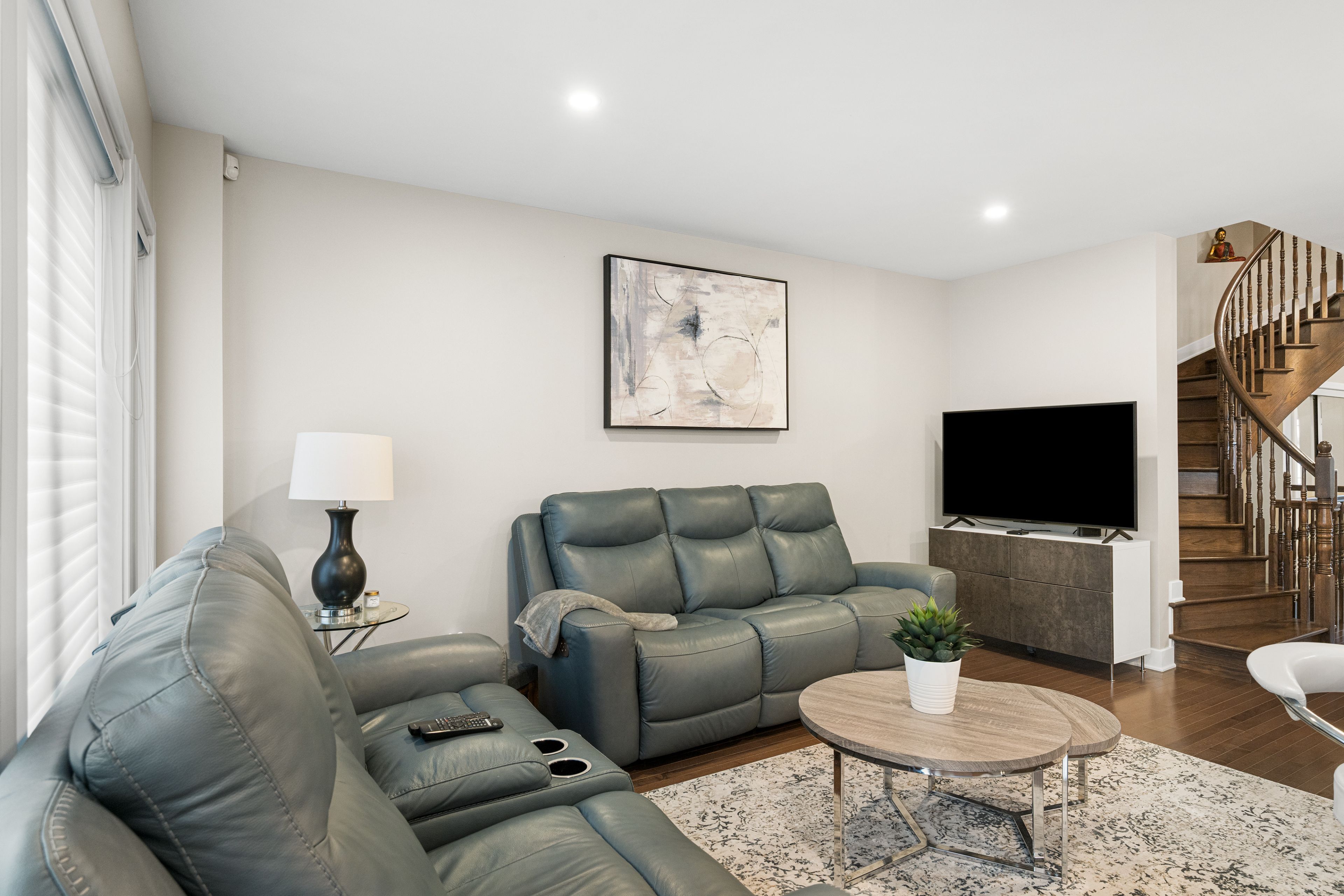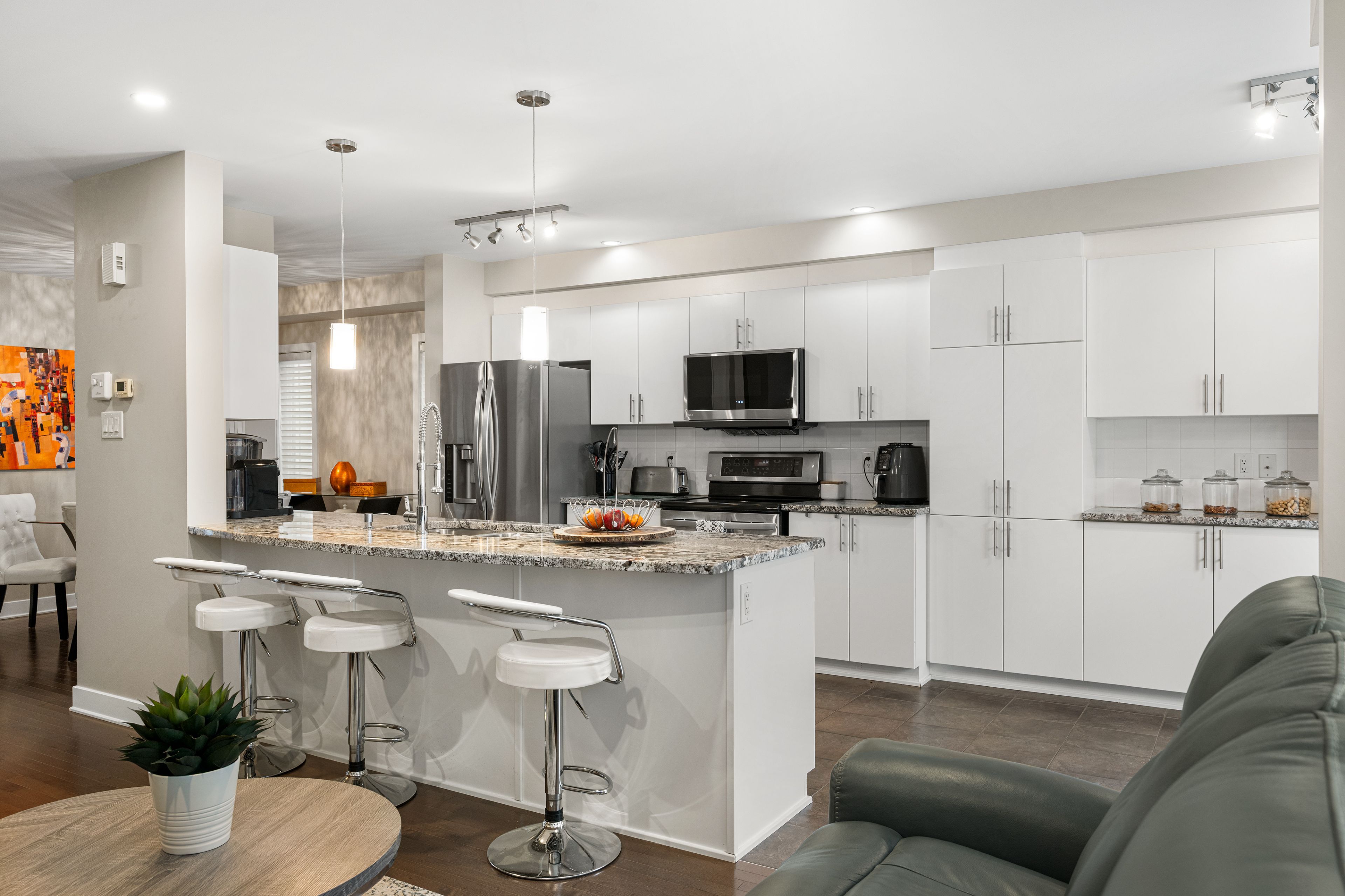 Welcome to this stunning end-unit freehold townhouse offering a perfect blend of comfort and style. This beautifully maintained home features three spacious bedrooms, including a luxurious master suite complete with a private ensuite bathroom. The main level boasts gleaming hardwood and elegant ceramic floors, while the upper-level bedrooms and finished basement are warmly carpeted for added comfort. The modern kitchen is a chef's delight with sleek granite countertops and ample cabinetry. Step outside to enjoy the professionally designed stamped concrete patio, ideal for entertaining or relaxing in your private outdoor space. This home combines functionality and sophistication, making it a perfect choice for families or professionals seeking a turnkey property in a desirable neighborhood. Next day notice for showings