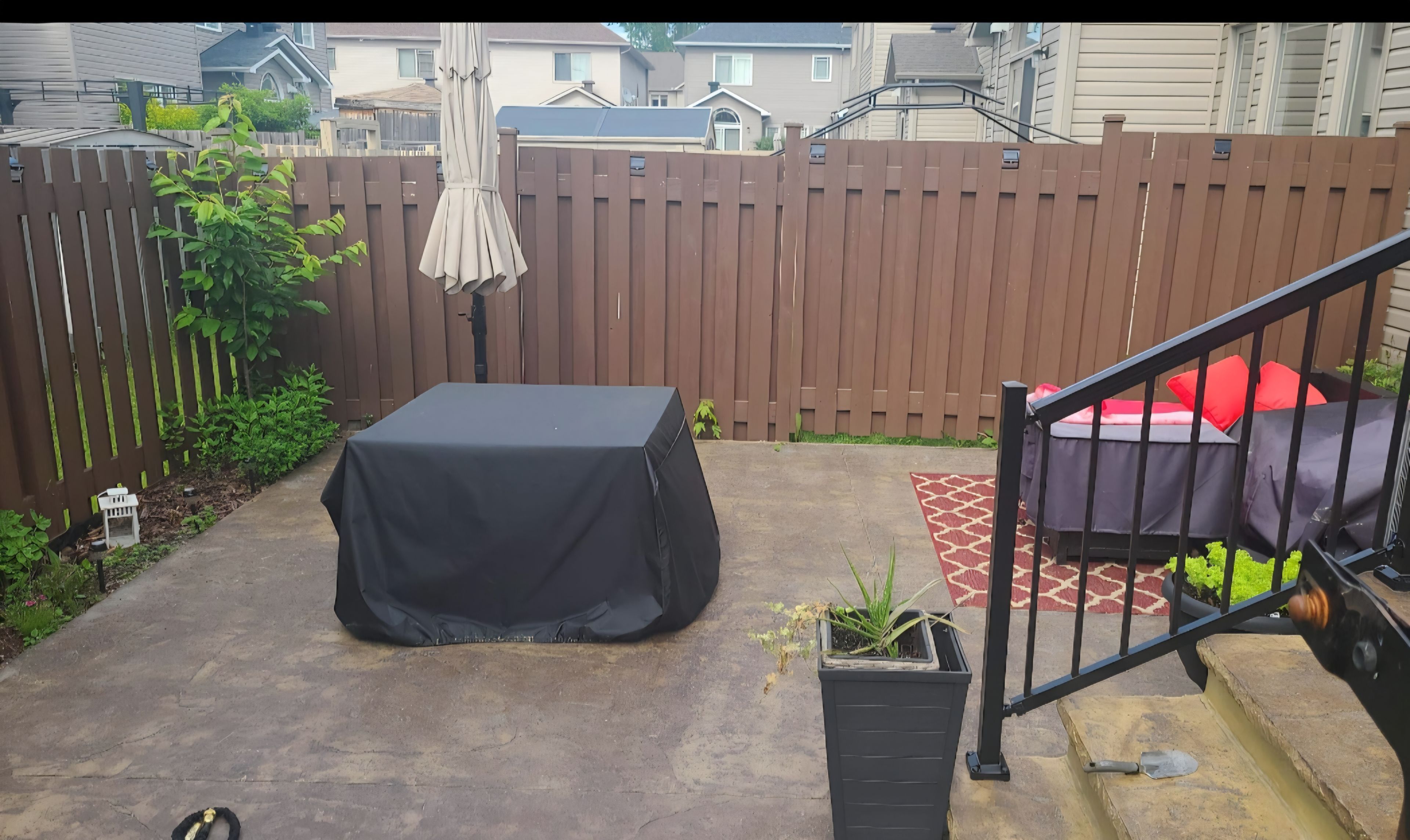 • Stamped concrete patio ideal for entertaining and relaxation.