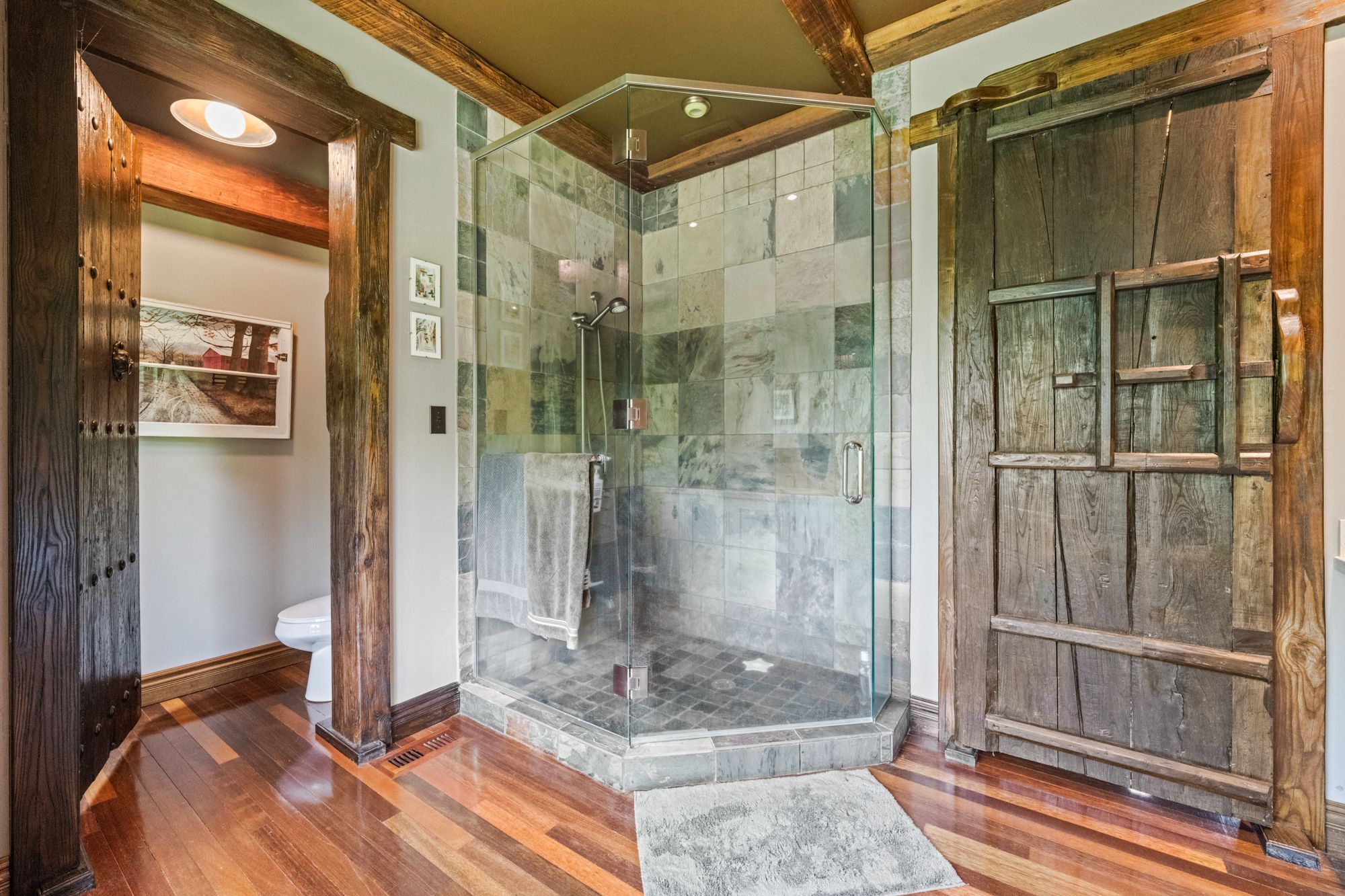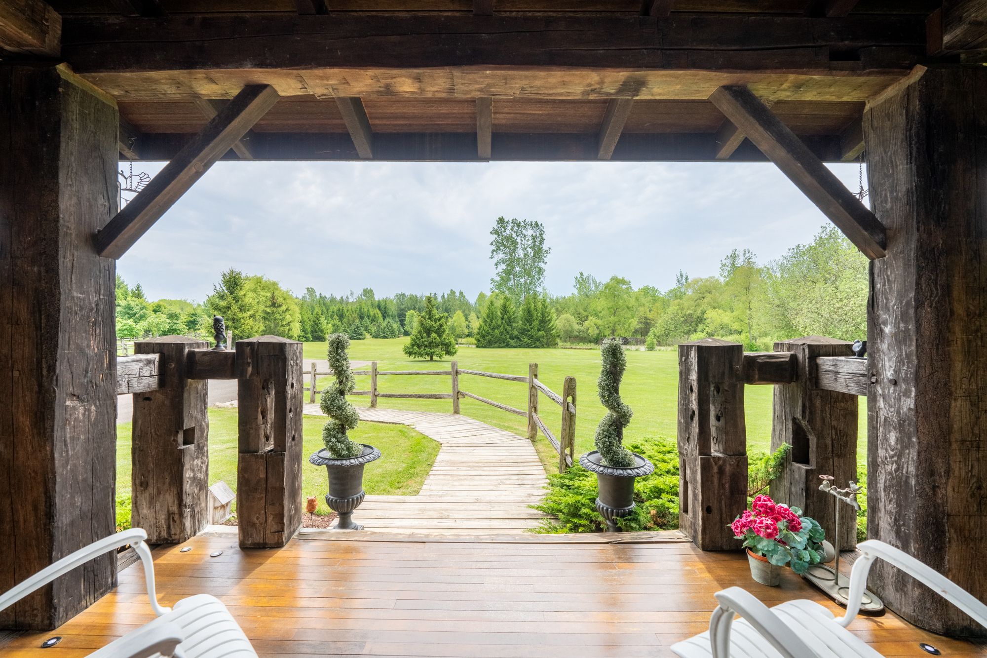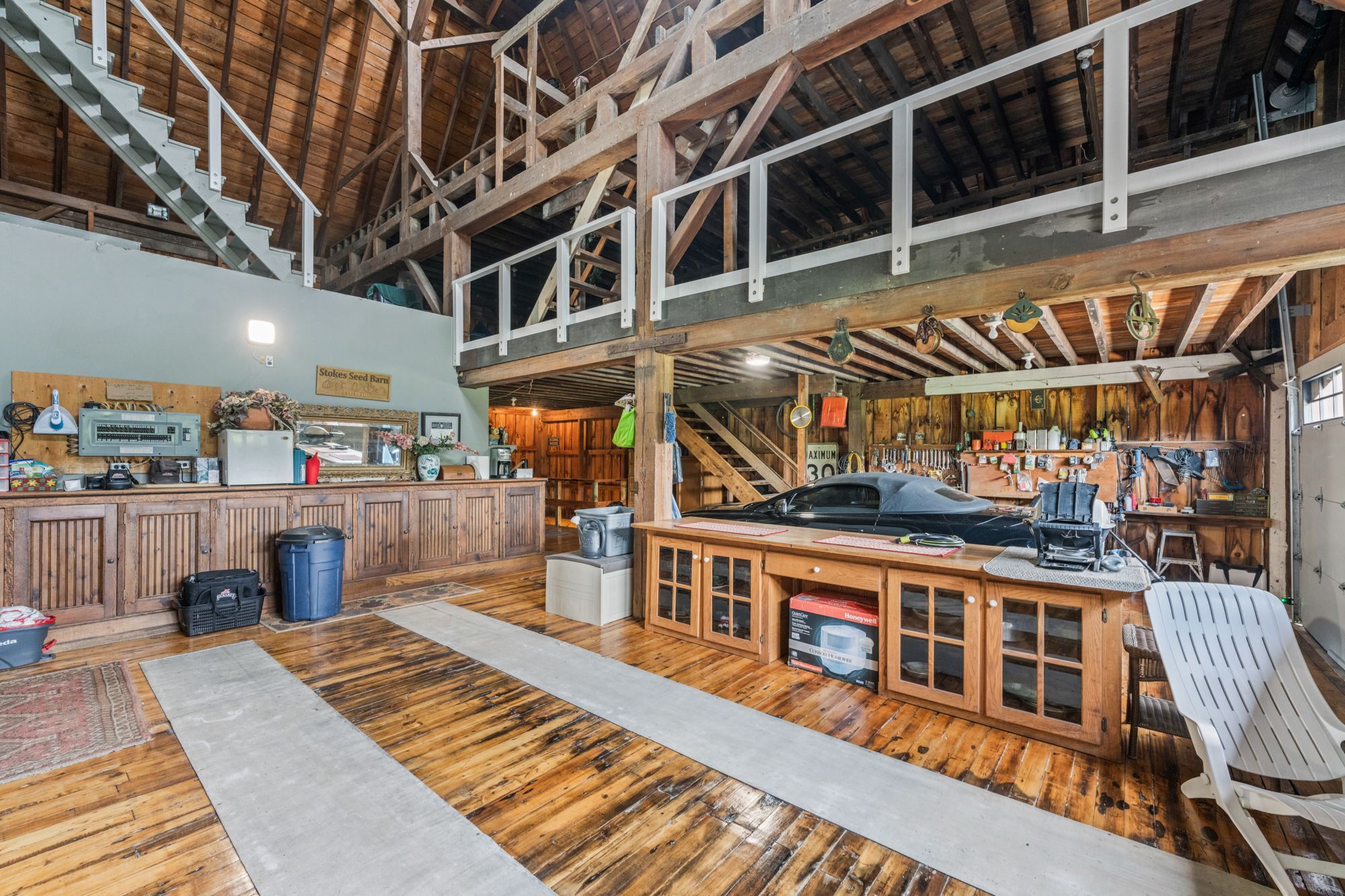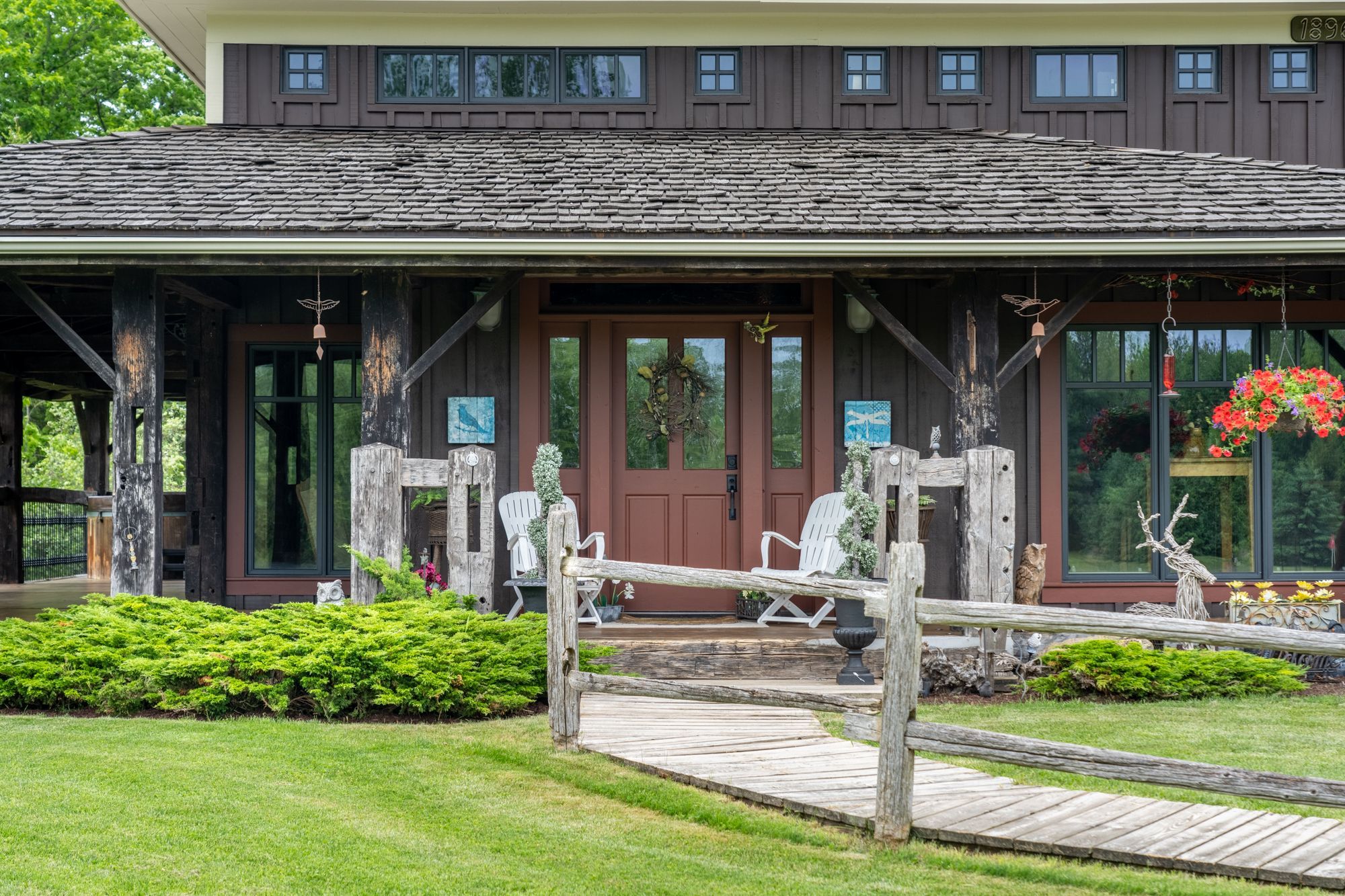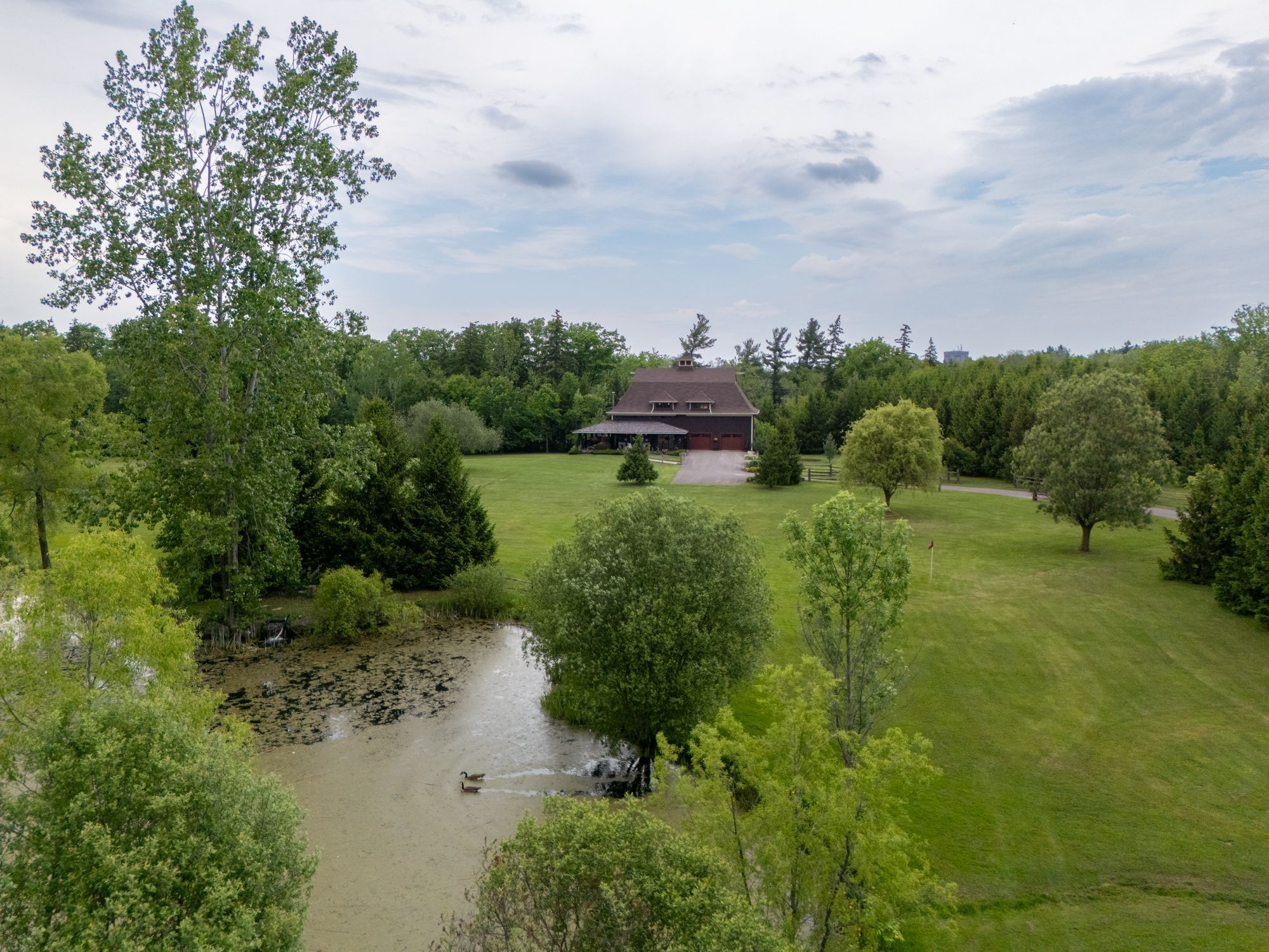 Welcome to 3111 faywell road situation in the quaint town of fonthill. Once known as the 1896 "old seedbarn" this country barn style home has been reclaimed and rebuilt on this 17 acres parcel of land that boasts walking trails, a private waterfront pond, a long winding driveway and a golfing green. With nearly 1200 feet of lake gibson waterfront, enjoy your coffee with morning waterfront views on your wraparound covered porch and veranda. Make your way inside, the main features a stunning open concept dinning, living and kitchen area with nearly 17 foot ceilings. Custom wainscotting and panels cover every inch of this character home. With exposed beam construction you are able to take in the detailed craftsmanship of this build. Primary bedroom, ensuite and custom walk in closet conveniently located on the main level. Make your way up the staircase to the loft entertainment area with a wet bar. Additionally you will find another bedroom and full bathroom. The home features nearly 10,000 sq/ft; 2550 sq/ft of finished living space, 2400 sq/ft drive in basement, three car garage and additional 4661 sq/ft of constructed spaces. The lower level features a workshop, entertainment area and plenty of space for the car enthusiast. Not to mention the three car attached garage with a second storey waiting for your finishing touches.