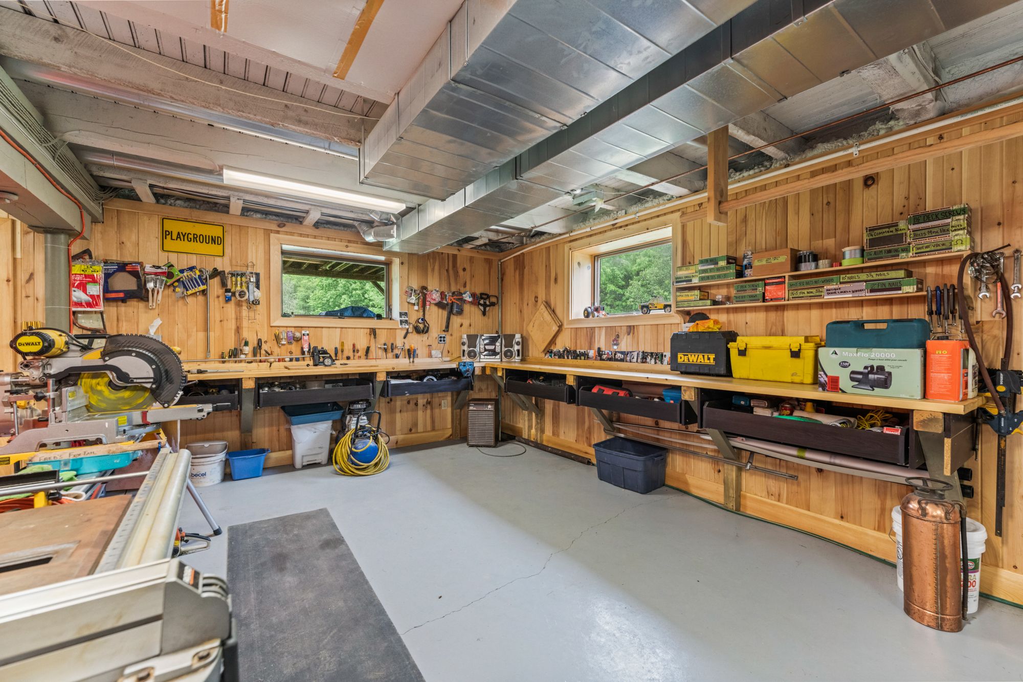 • Versatile lower level with workshop, entertainment space, and three-car garage.