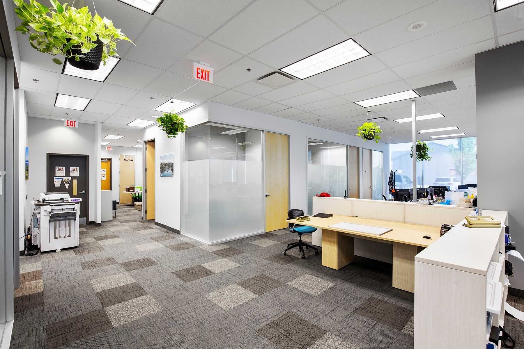 • Built-out office space with private offices and collaborative areas.