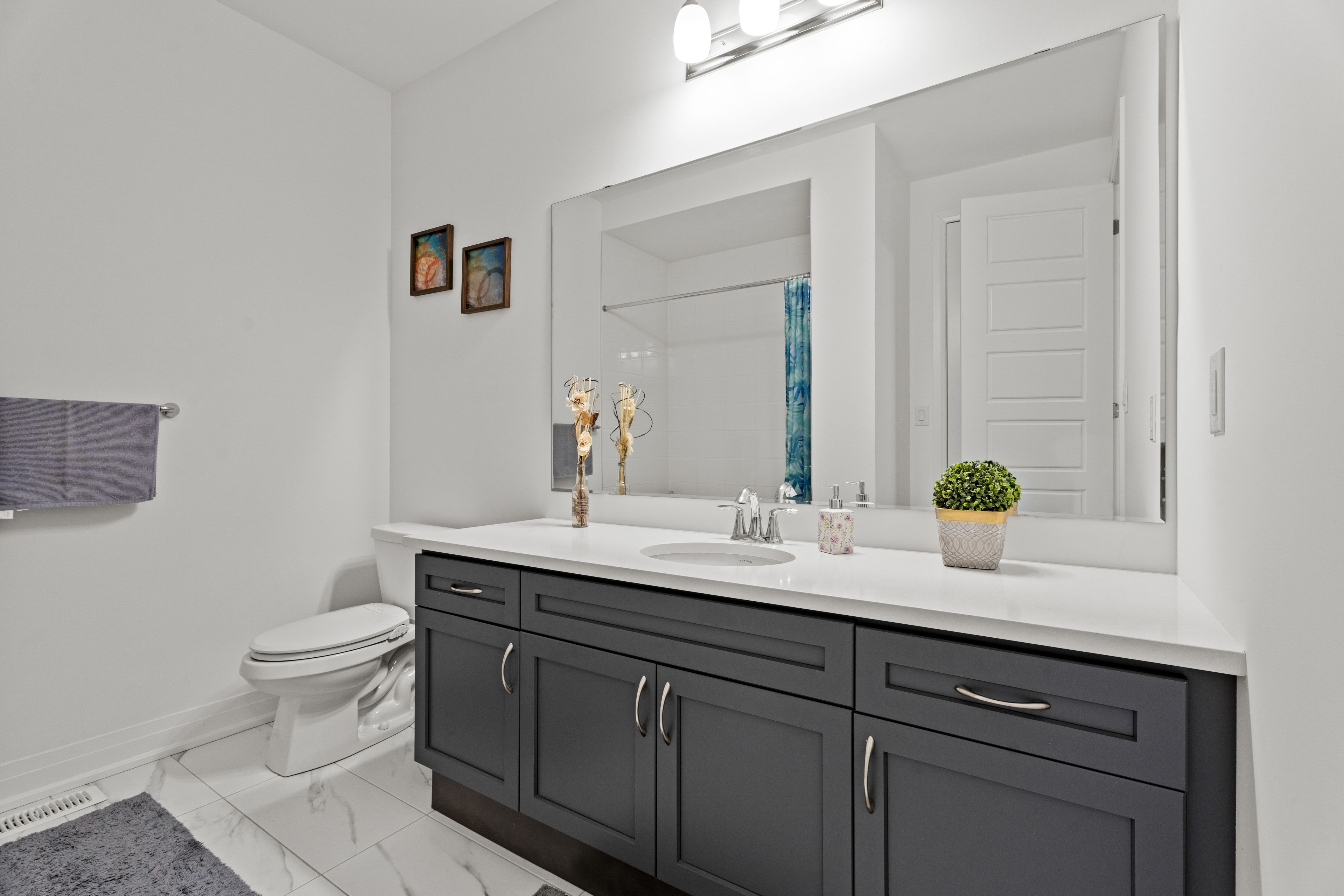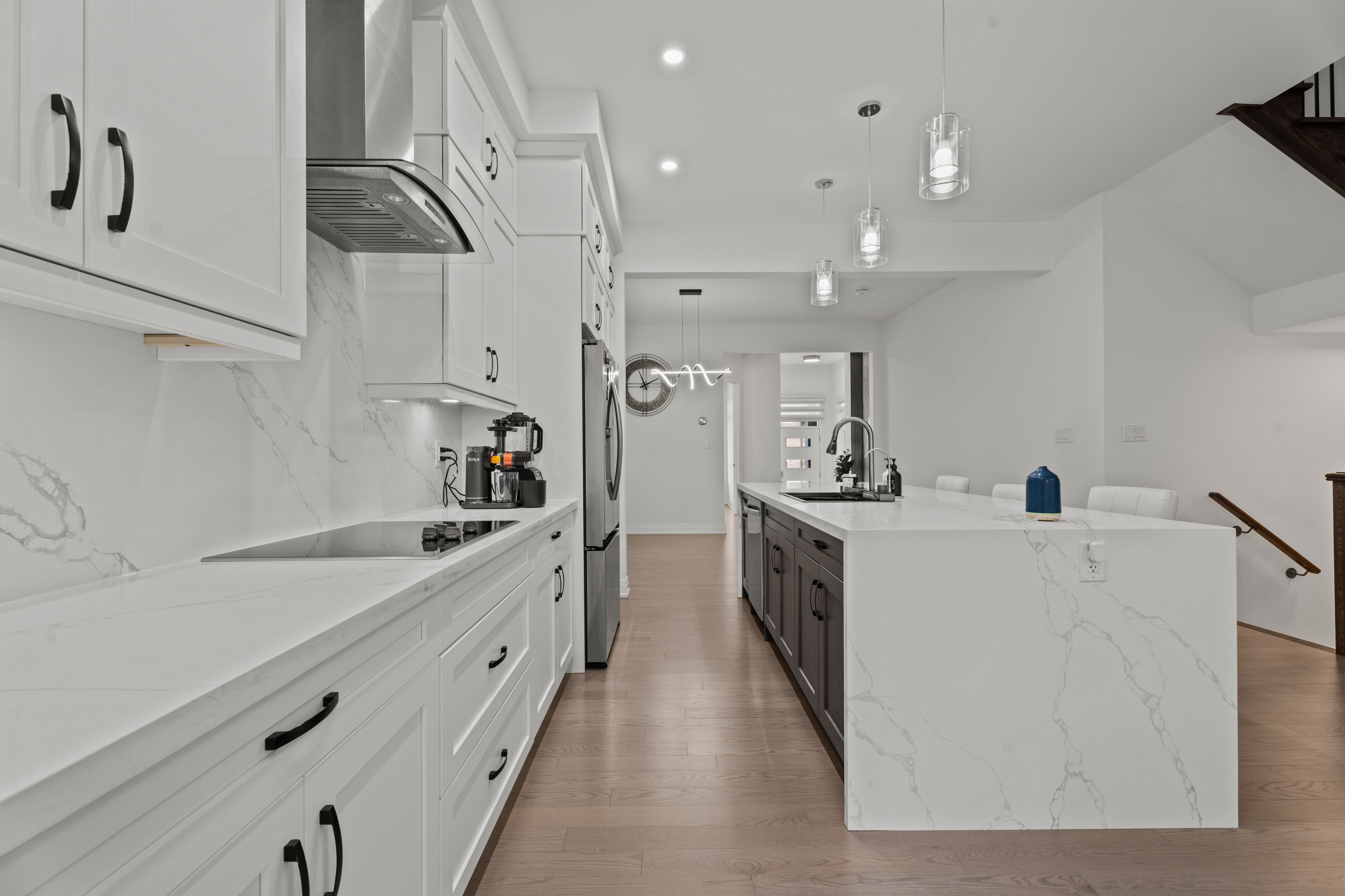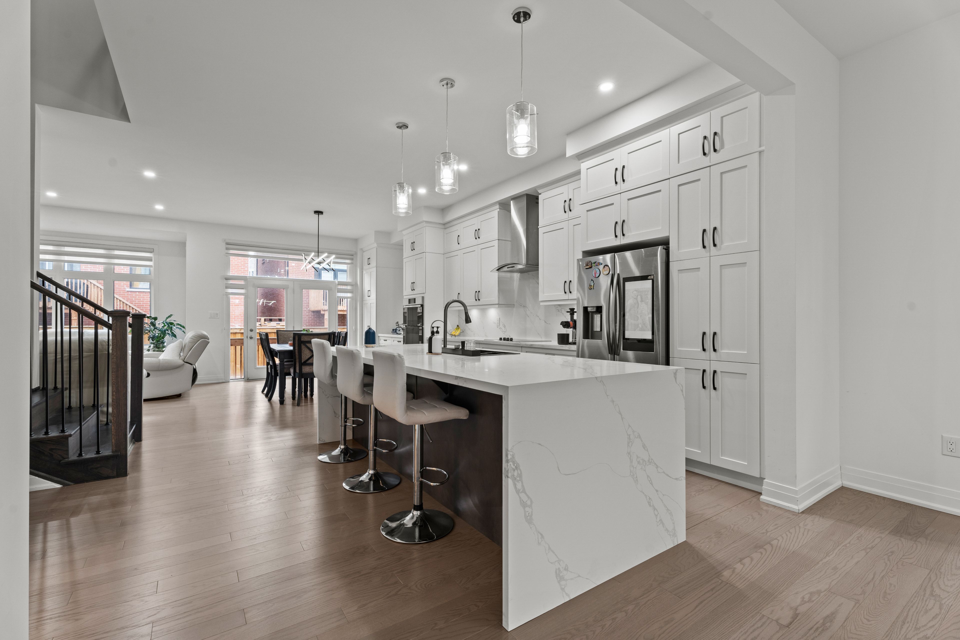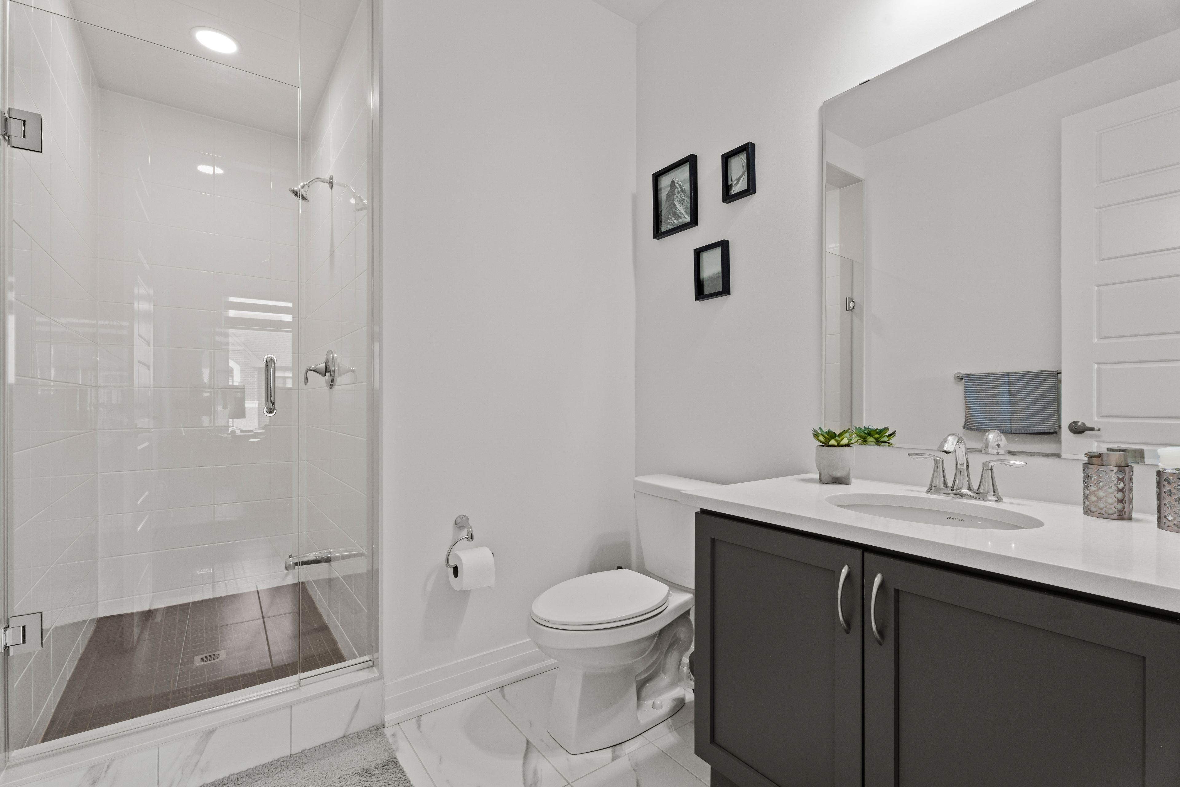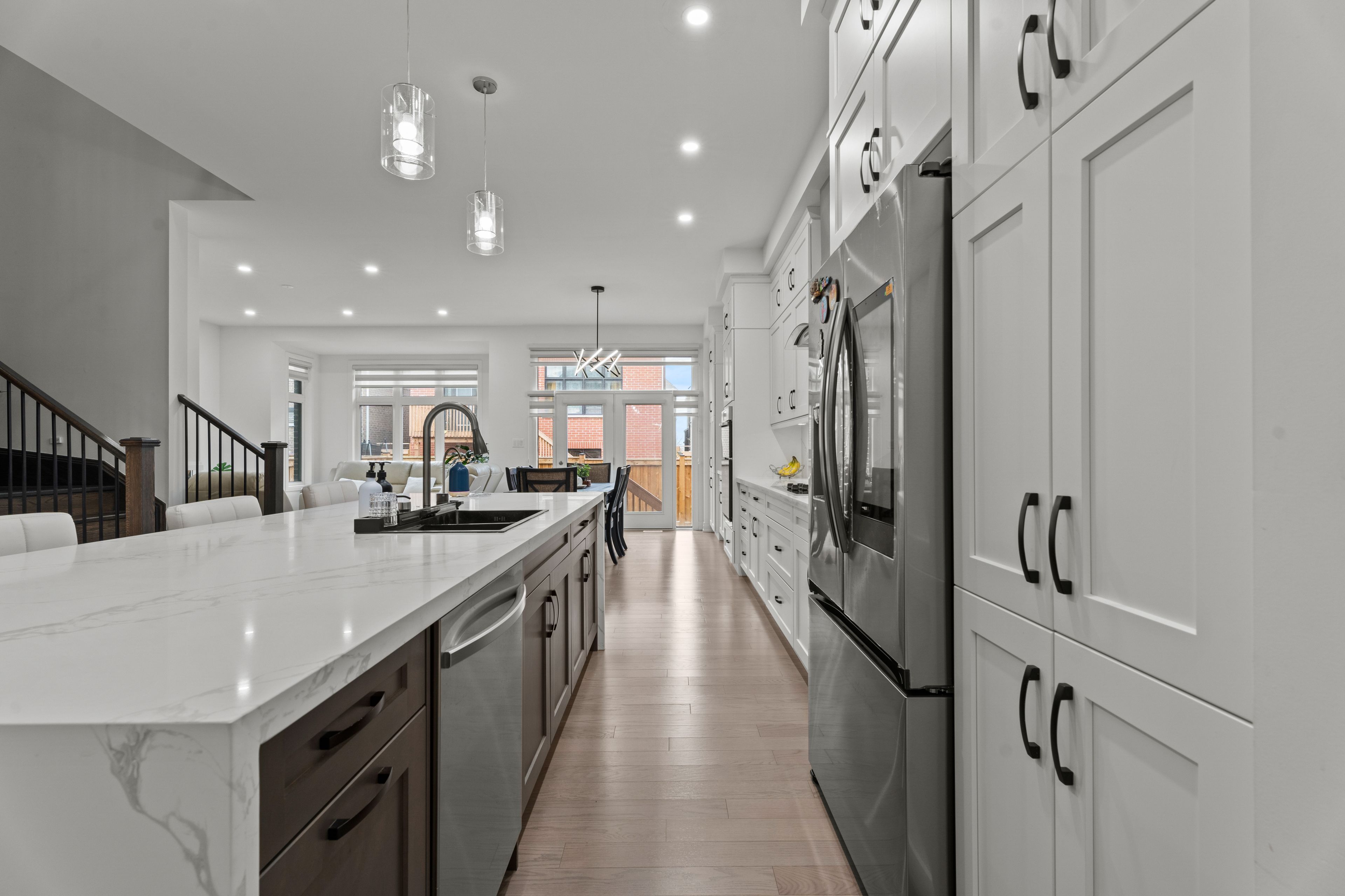 • Upgraded chef's kitchen features quartz countertops and dual-tone cabinetry.