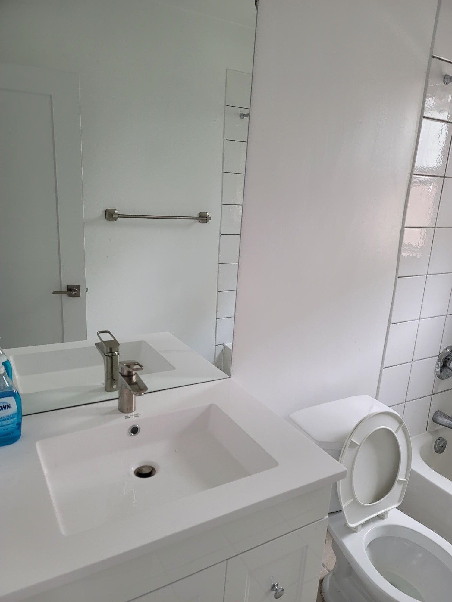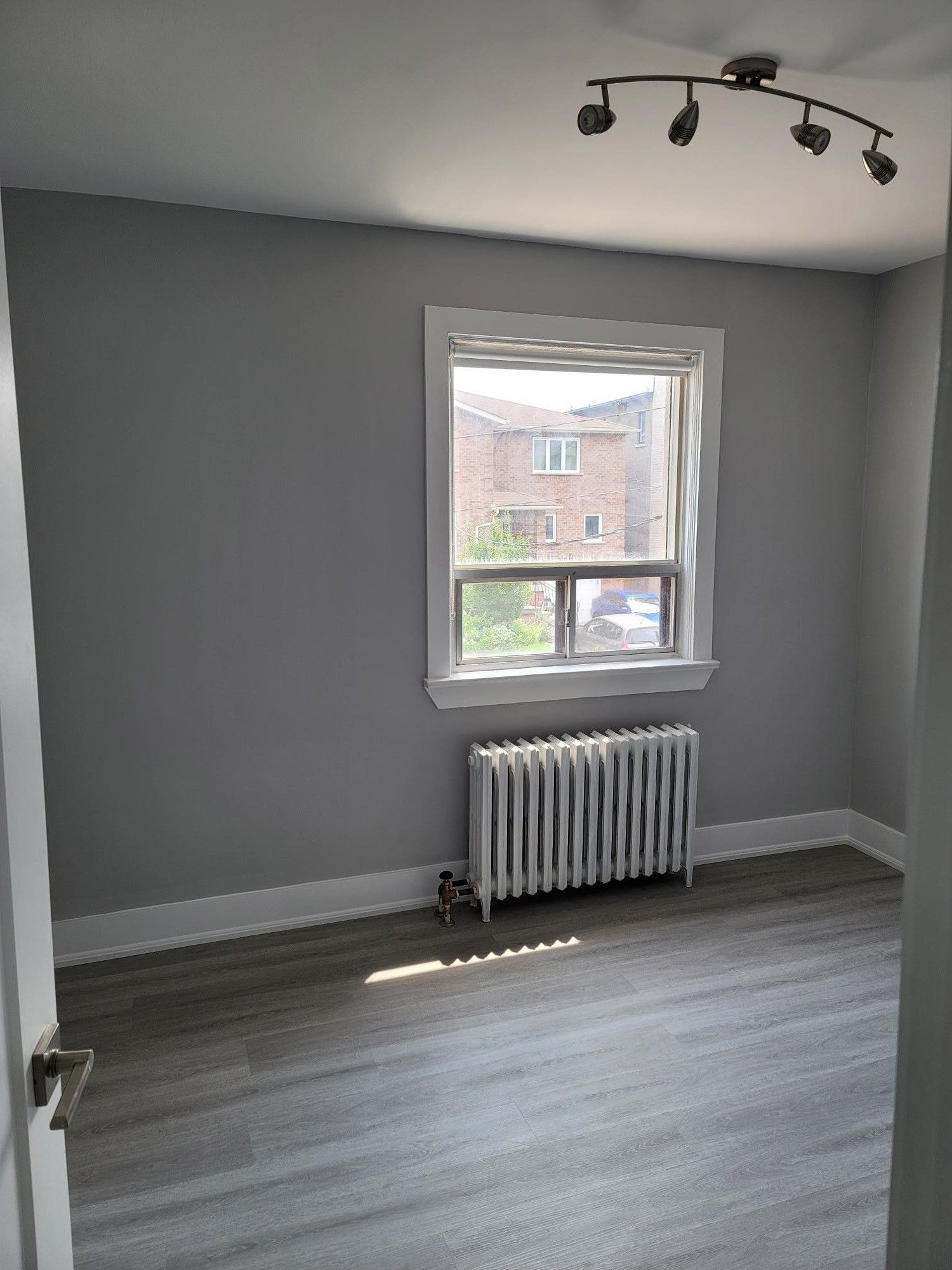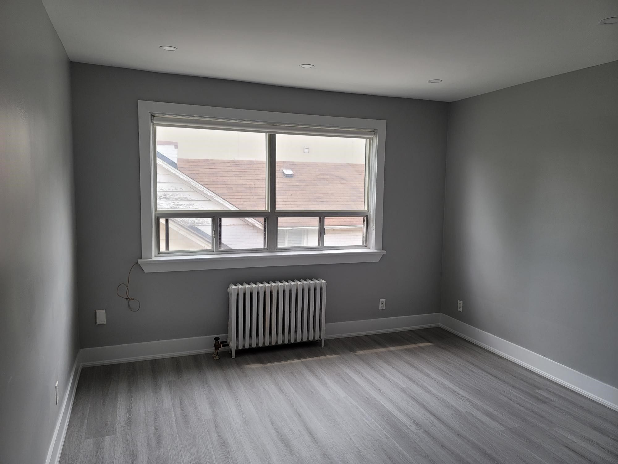 • Renovated unit with high ceilings and wood floors for a modern feel.