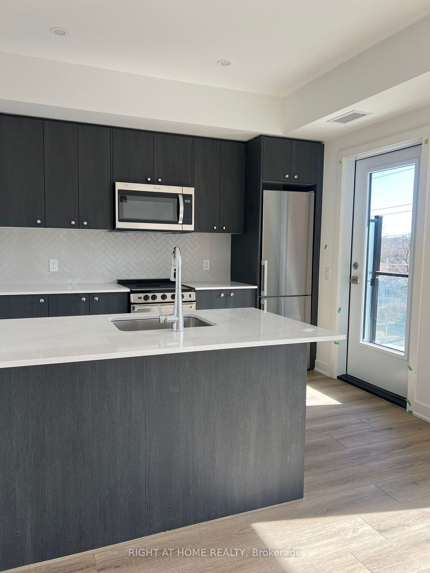 • Modern eat-in kitchen with island breakfast bar for casual dining.