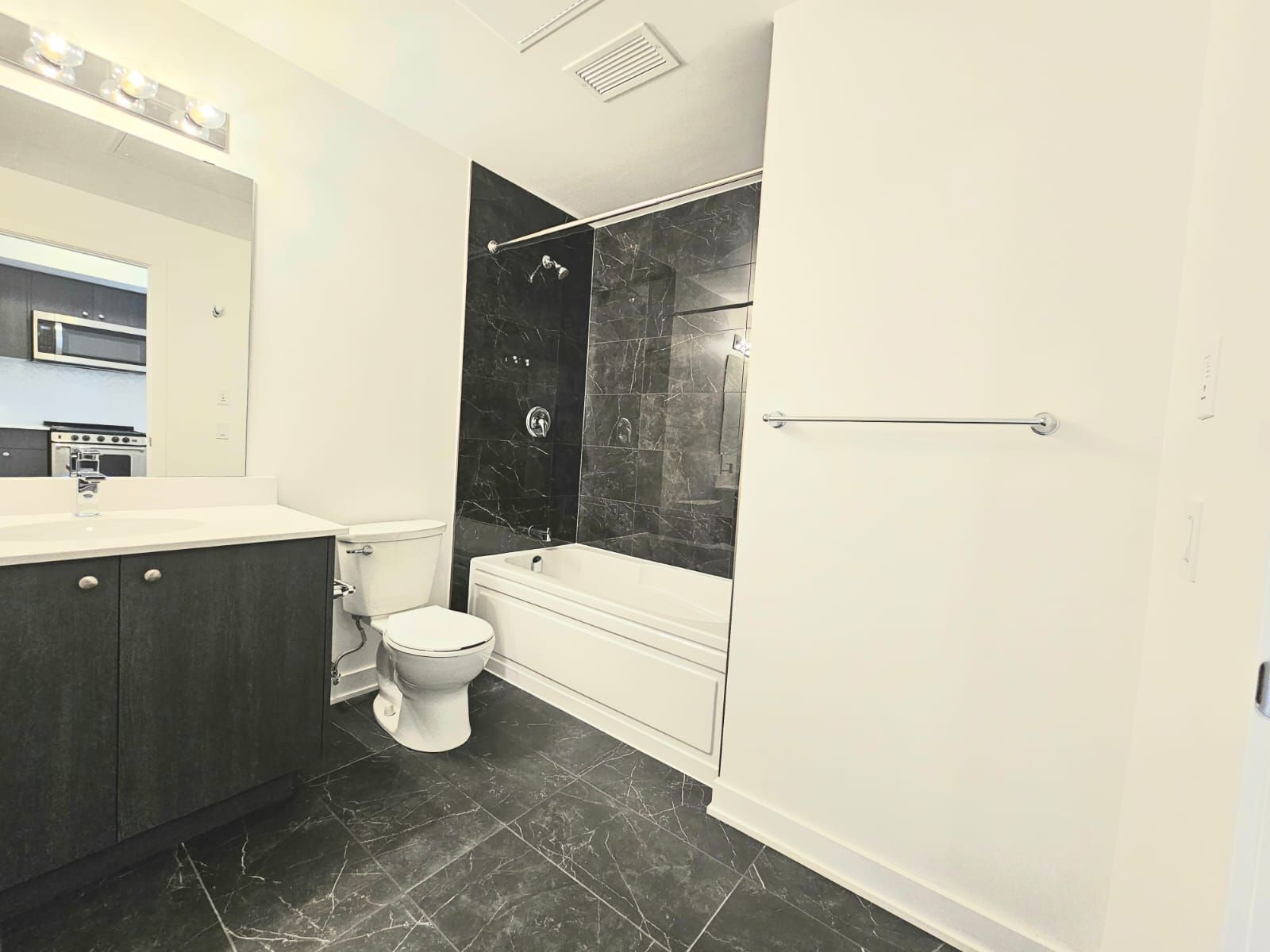 • Modern 1-bedroom condo with an open-concept layout and private balcony.