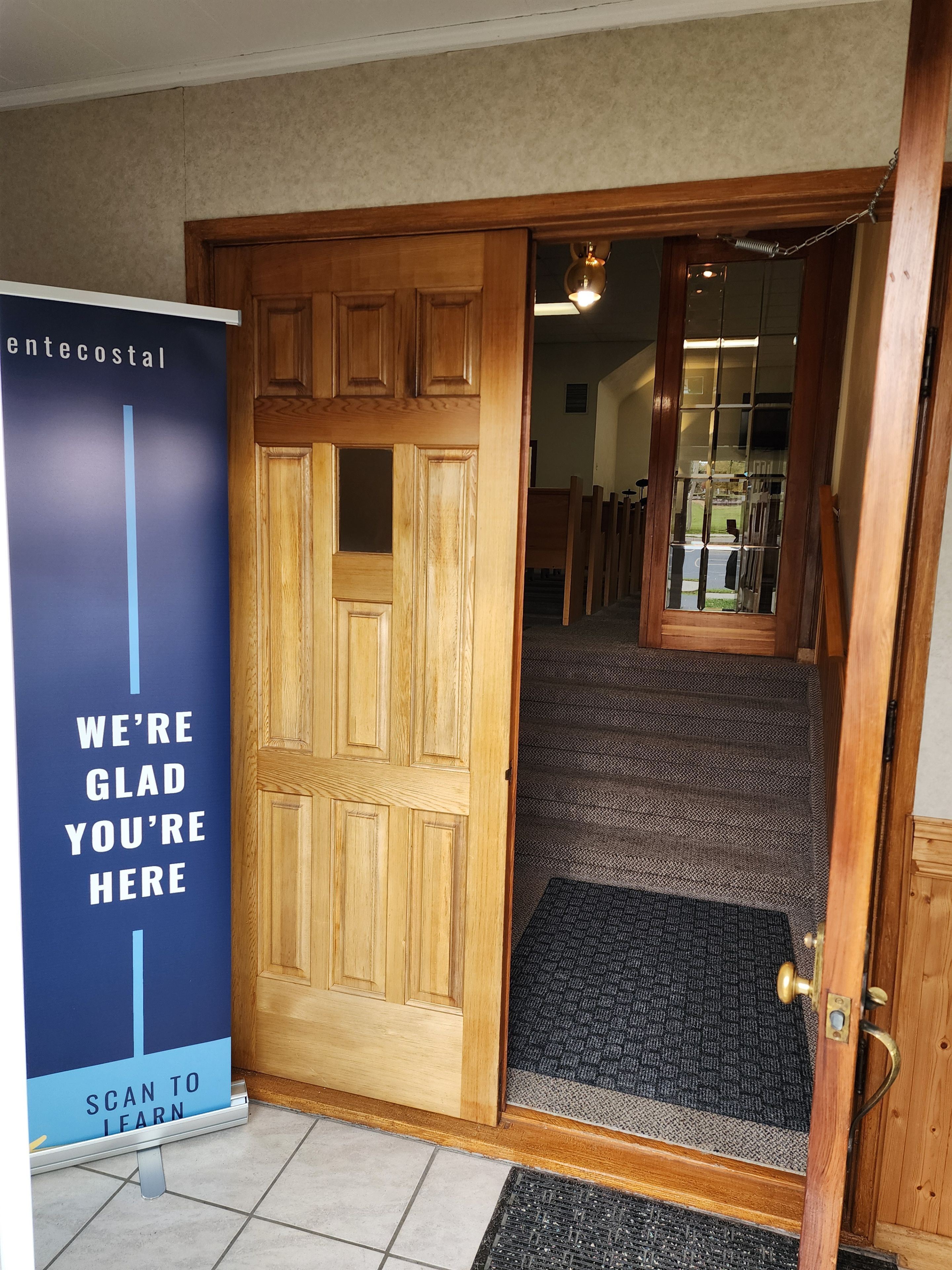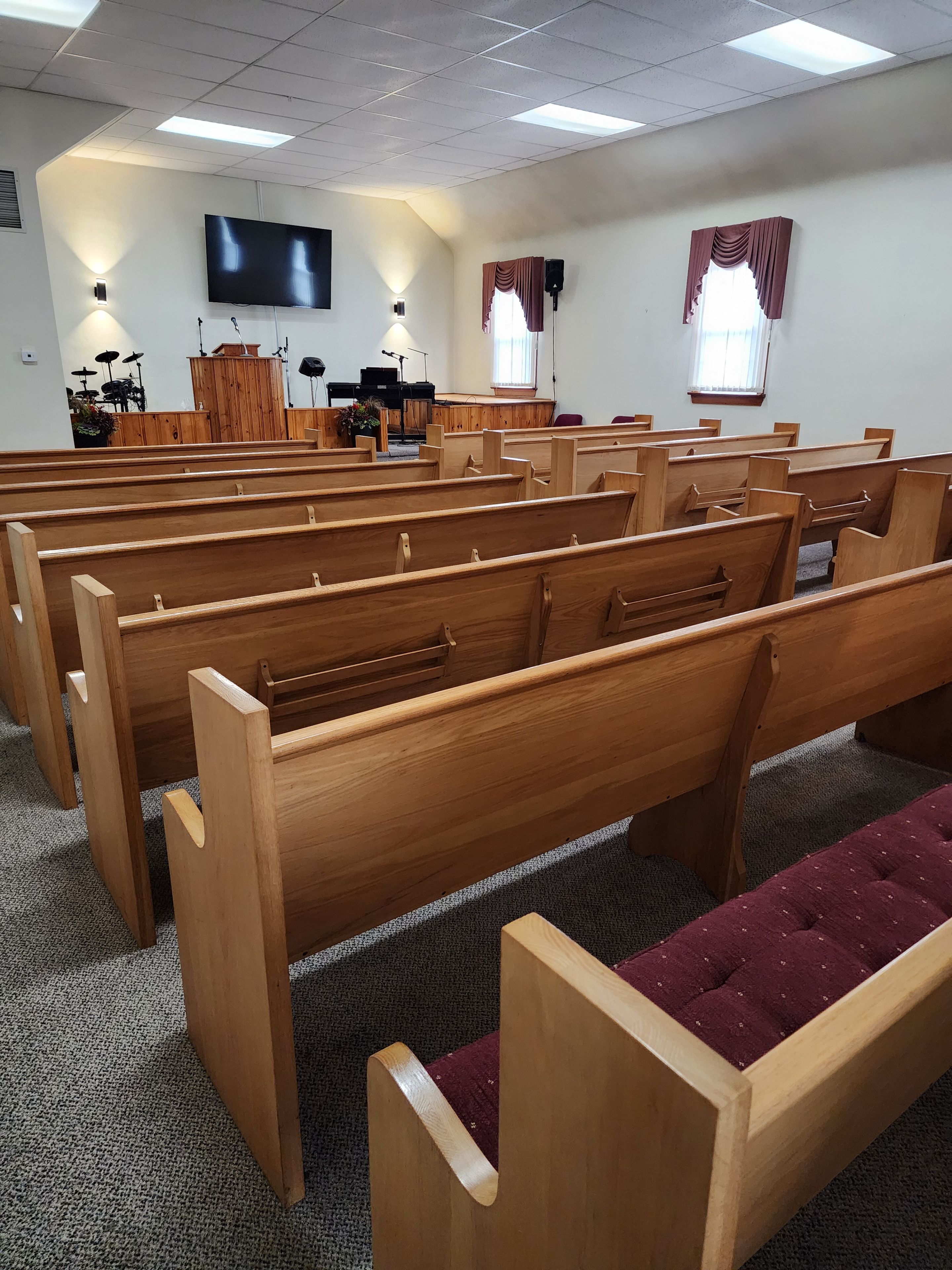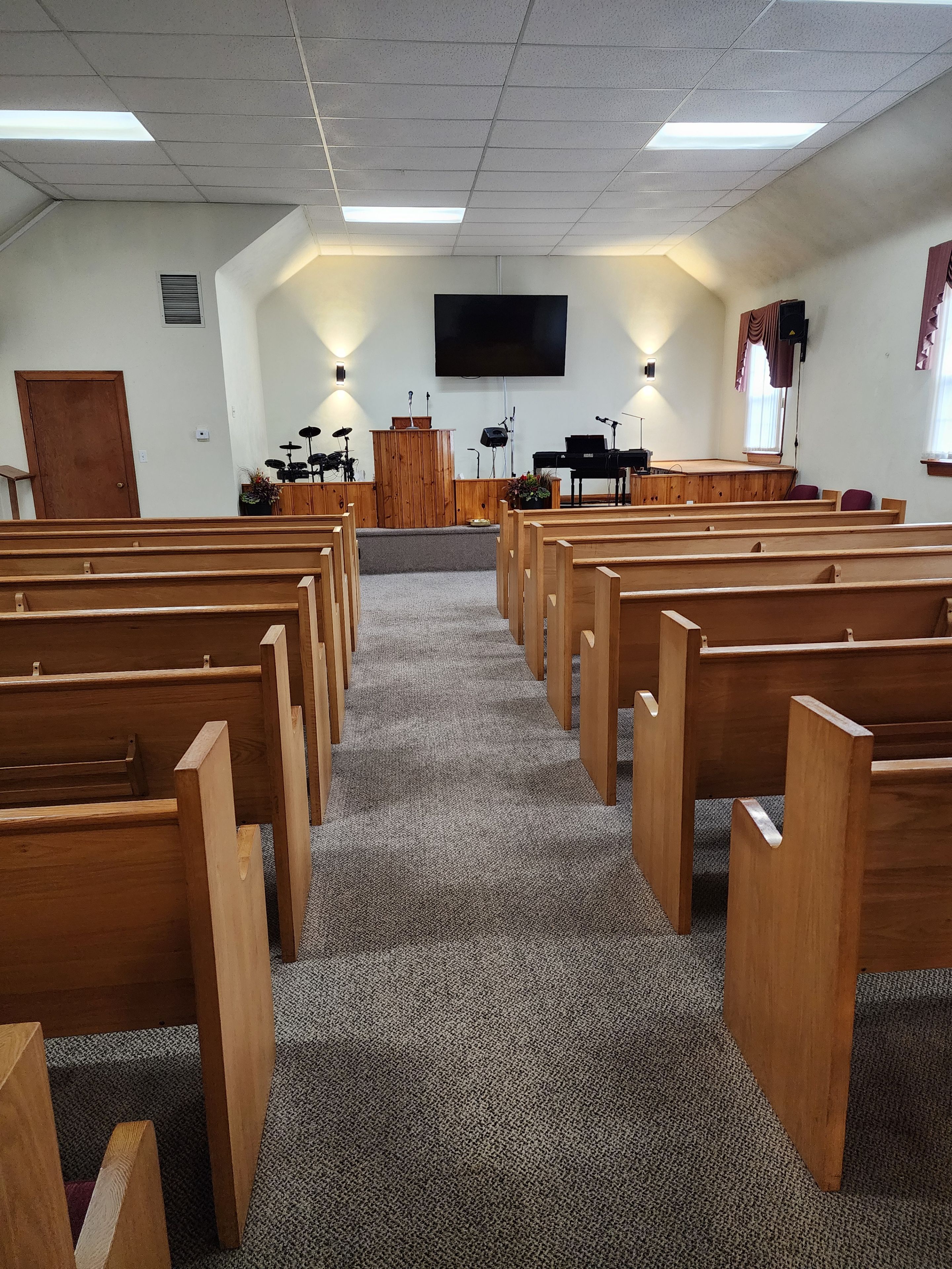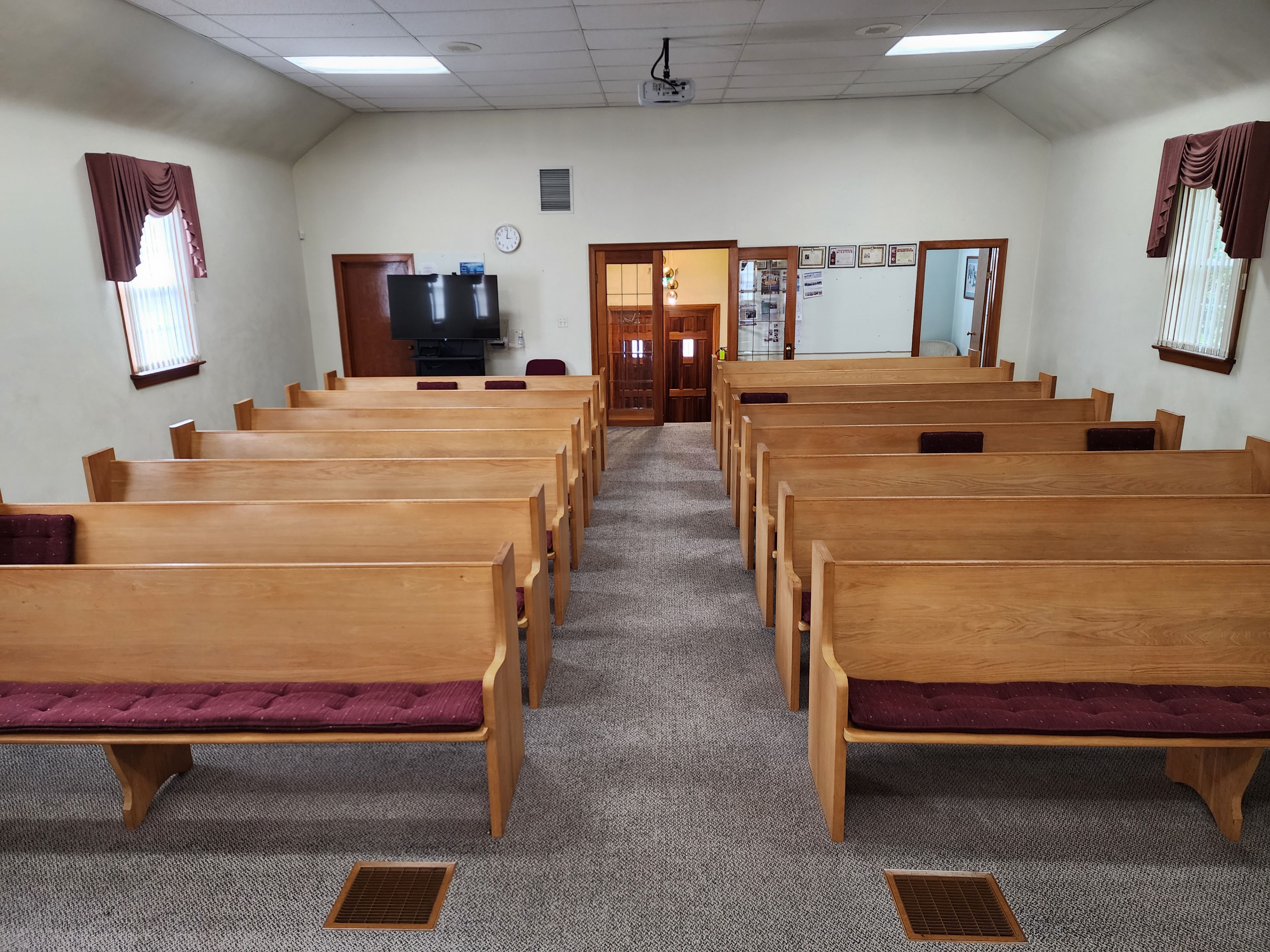 • Main floor sanctuary seats around 100, with a nursery and office.
