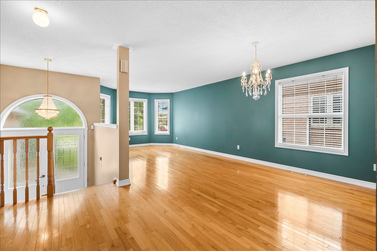 • Open concept living/dining area with a bright bay window.