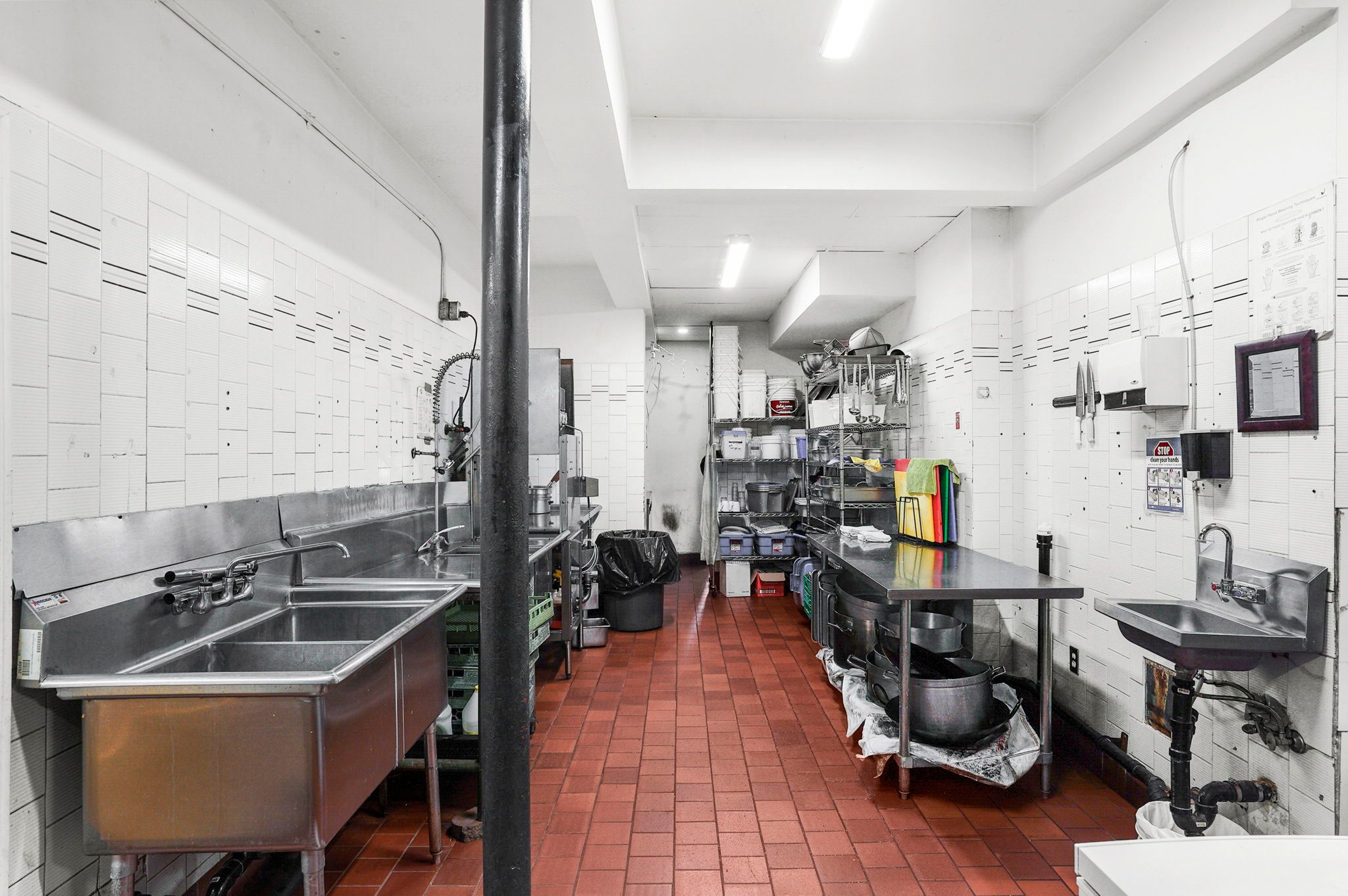 • Fully equipped commercial kitchen with ample storage and prep space.
