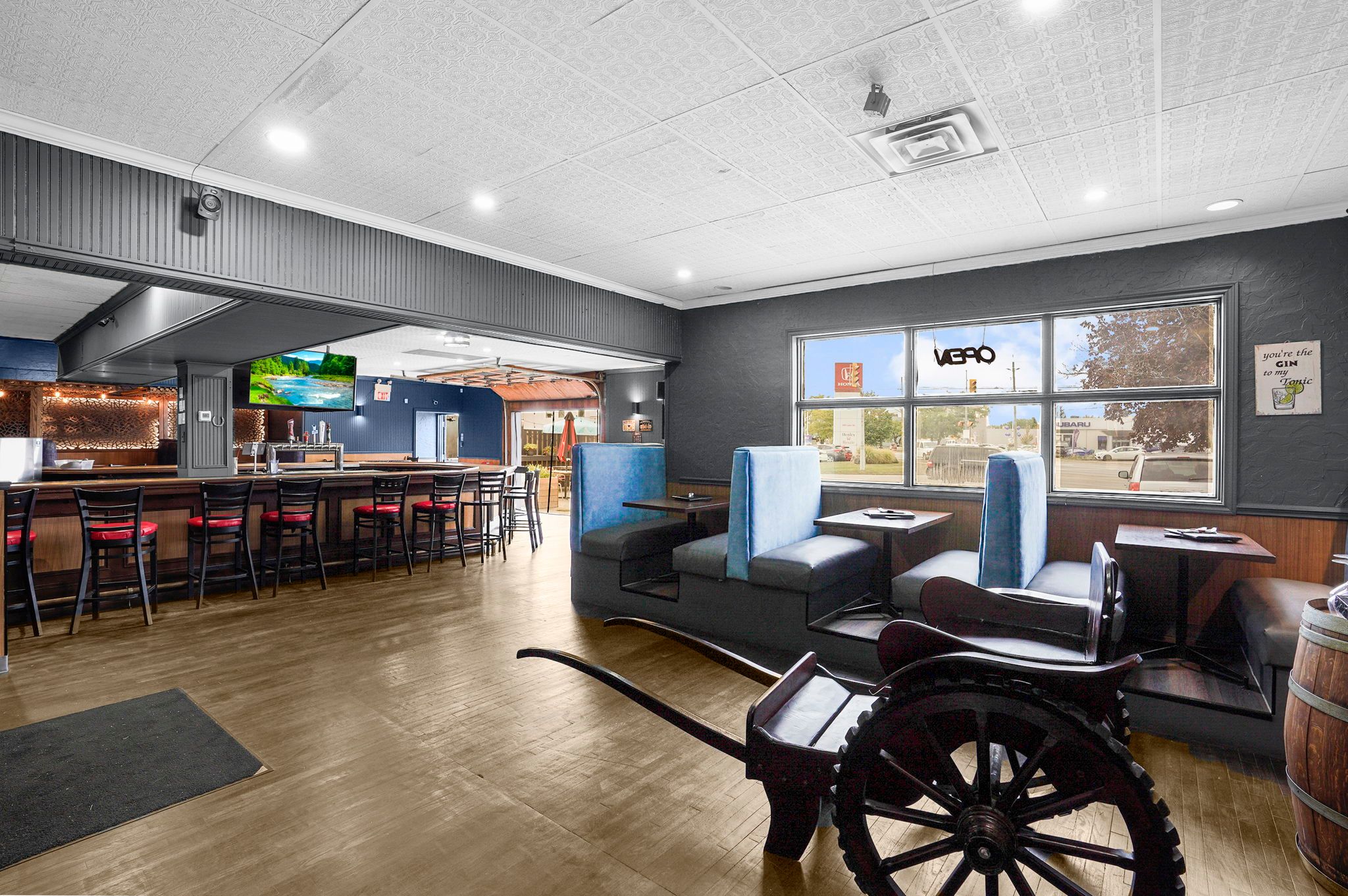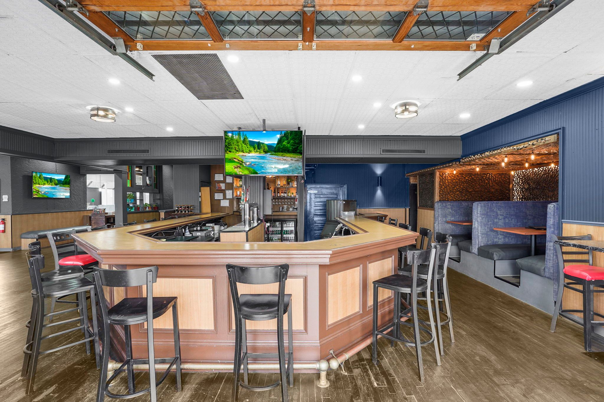 • Spacious 4,500 sq. ft. layout includes dining area, sports bar, and patio.