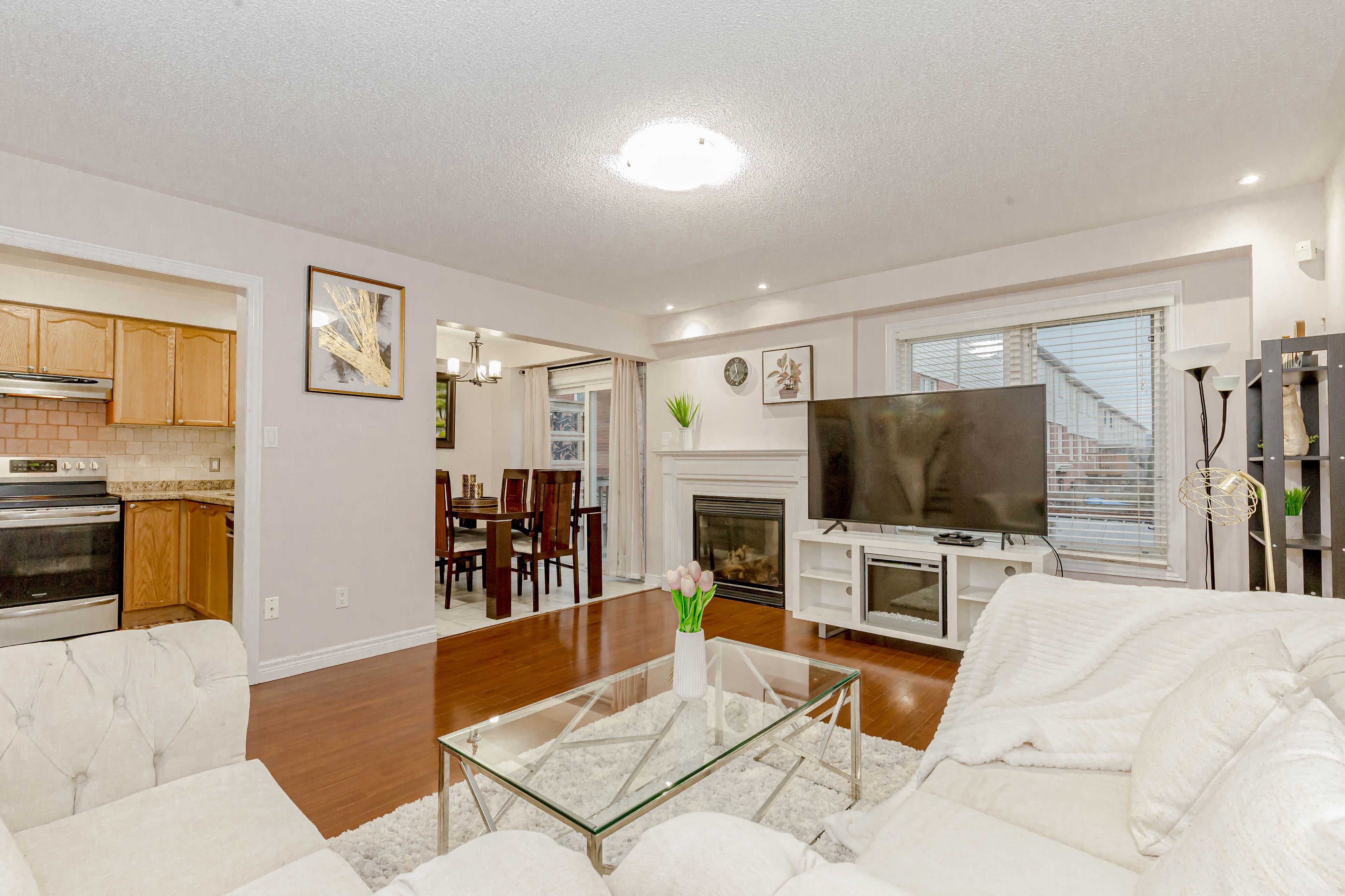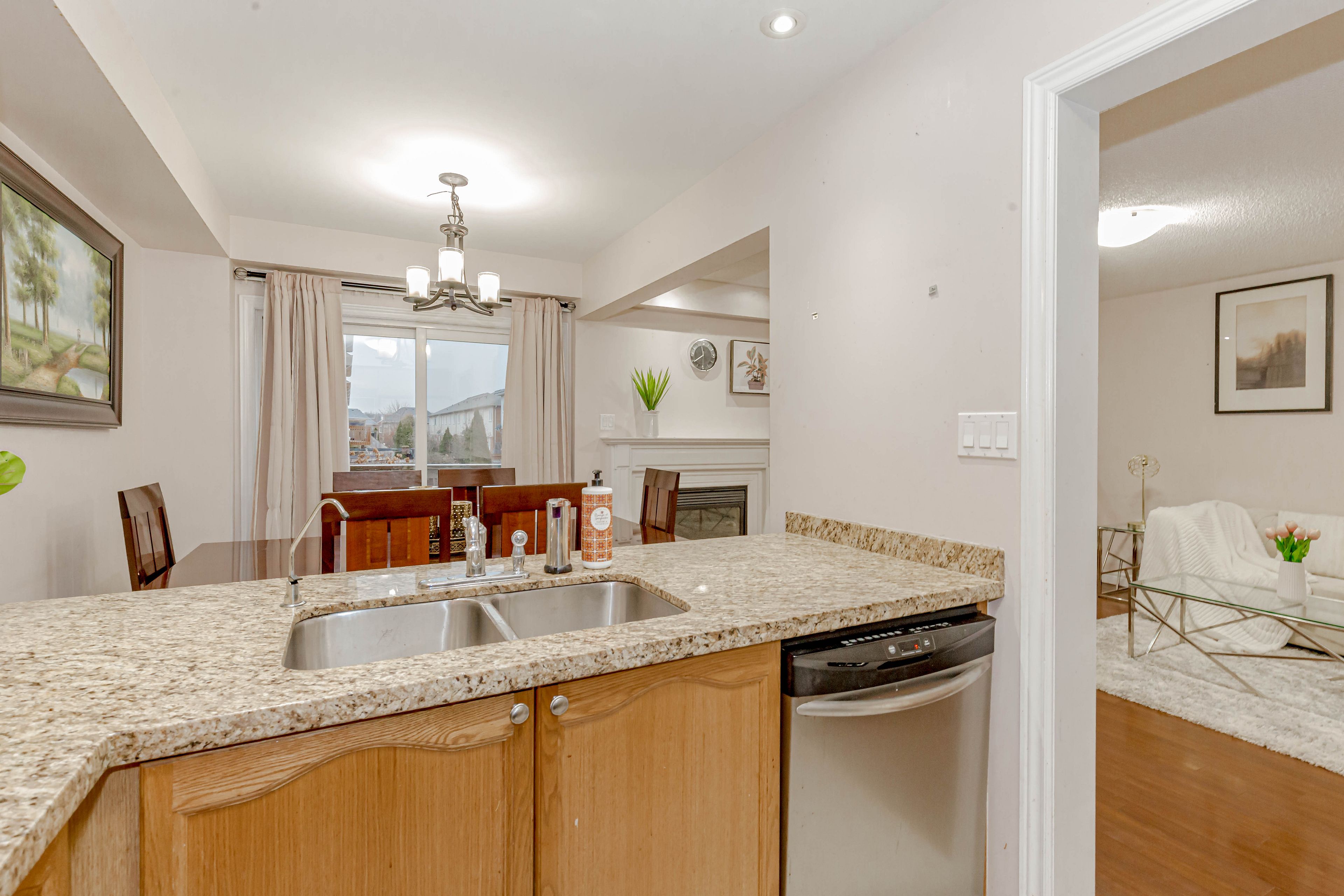 Impressive freehold townhome ( no potl fee ) in the highly sought-after bronte creek community of oakville. This move-in ready home features 3 bedrooms, 3 bathrooms and a finished basement. Spacious open concept living, dining and family room. Freshly painted with new light fixtures and pot lights throughout. Upgraded family-sized eat-in kitchen with breakfast area. Large windows provide abundant natural light. Primary bedroom offers 4-piece ensuite and walk-in closet. Two additional bedrooms and full bath on second floor. Tastefully upgraded bathrooms. Extended driveway accommodates up to 5 parking spaces including garage. Close to top-rated schools, parks, shopping, grocery, places of worship and major highways. A fantastic opportunity in a desirable family-friendly neighborhood.