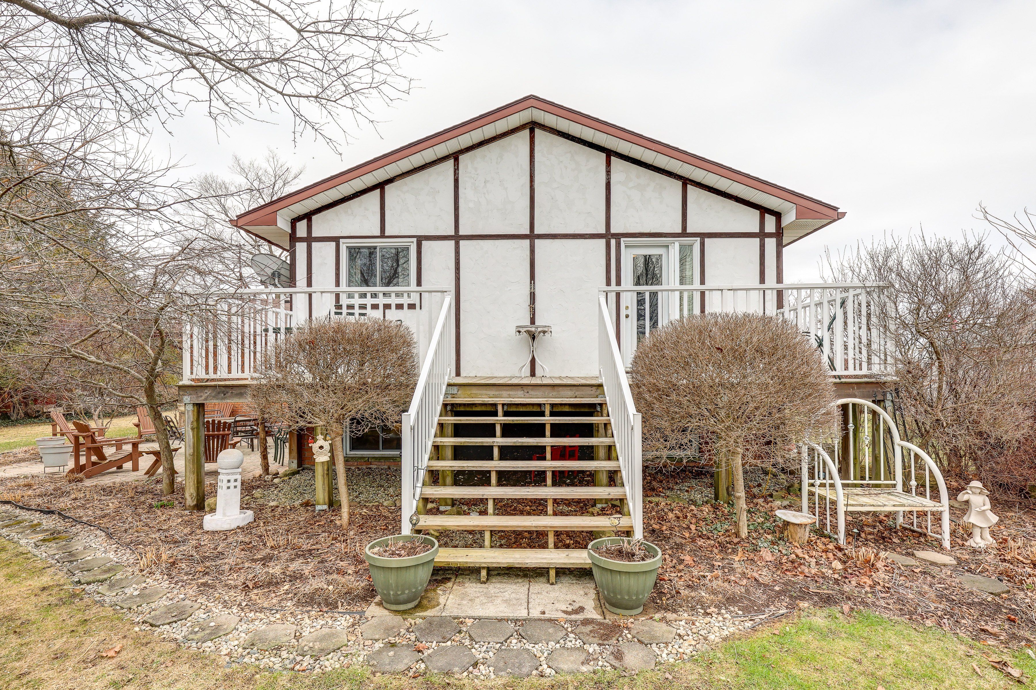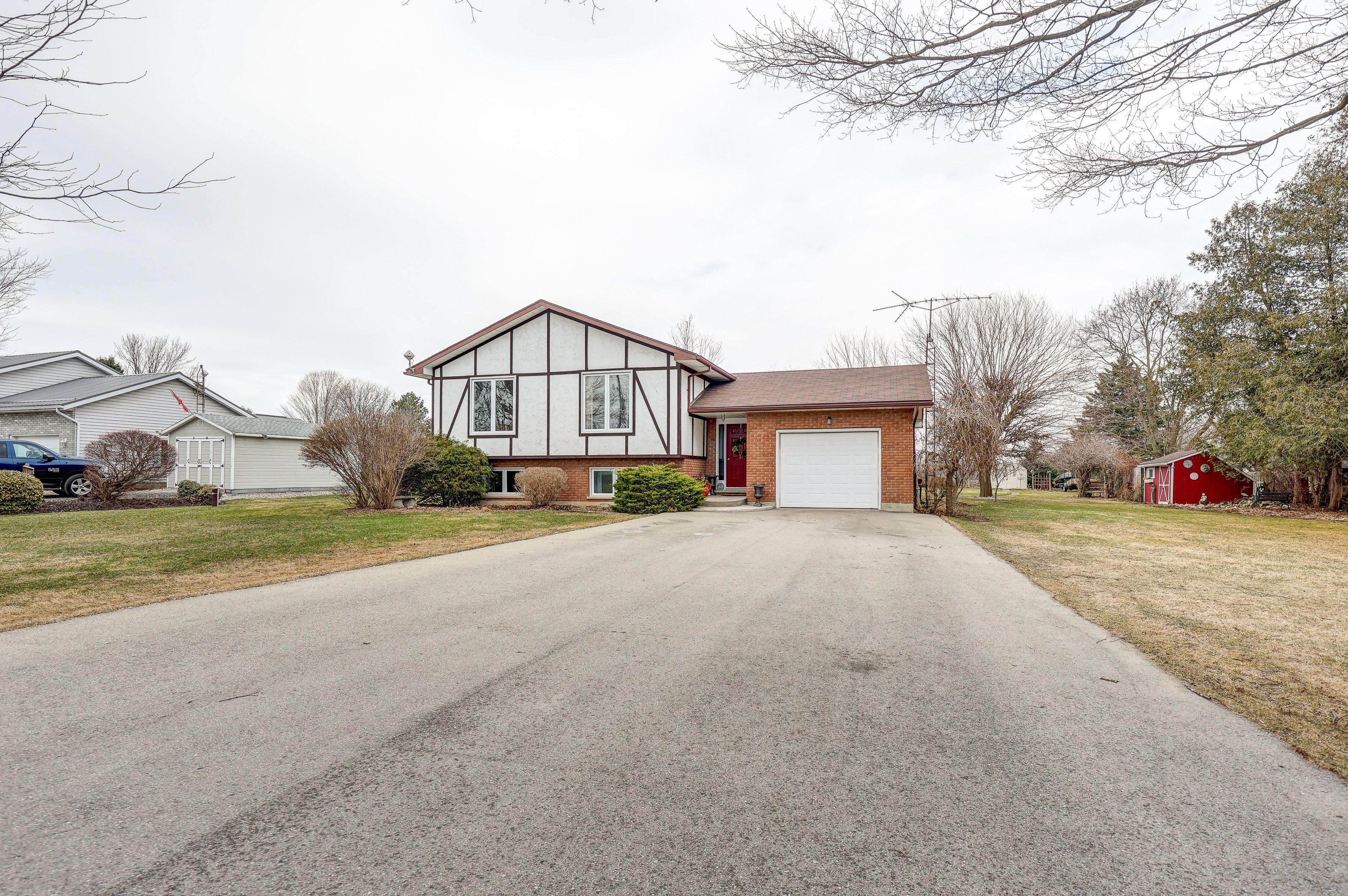 Nestled in the charming hamlet of delmer, and only a hop and skip from the vibrant community of tillsonburg, discover this well cared for raised ranch, perfectly poised on a sprawling, nearly 3/4 acre treed lot. It's more than a home; it's a lifestyle waiting to be lived. Step inside the main level where natural light floods the welcoming living room, creating an airy and bright space for relaxation. The dining room flows seamlessly into an updated, chef-ready kitchen, making entertaining a breeze. Retreat to your spacious primary bedroom, complete with a luxurious 4-piece en-suite, your personal sanctuary. Two additional generously sized bedrooms and another spacious 4-piece bath ensure comfort and convenience for family and guests alike. The lower level is an entertainer's dream, offering an expansive family room and a versatile rec room, perfect for movie nights, game days, or a home gym. You'll also find two more cozy bedrooms and a 3-piece bath, with lots of storage to keep everything organized. Outside, the freshly paved asphalt driveway provides ample parking for your vehicles and for visitors. But the real showstopper is the immense, private yard for family barbecues, and quiet evenings under the stars. With mature trees offering plenty of shade, this is where memories are made. This isn't just a house; it's the home you've been dreaming of. Come experience the tranquility and spaciousness for yourself! Some updates include: windows, ac, deck, main floor bath. (2009), hardwood flooring (2012), lower level bath. (2017), north side of roof (2018), paved drive (2019) and furnace (2020).