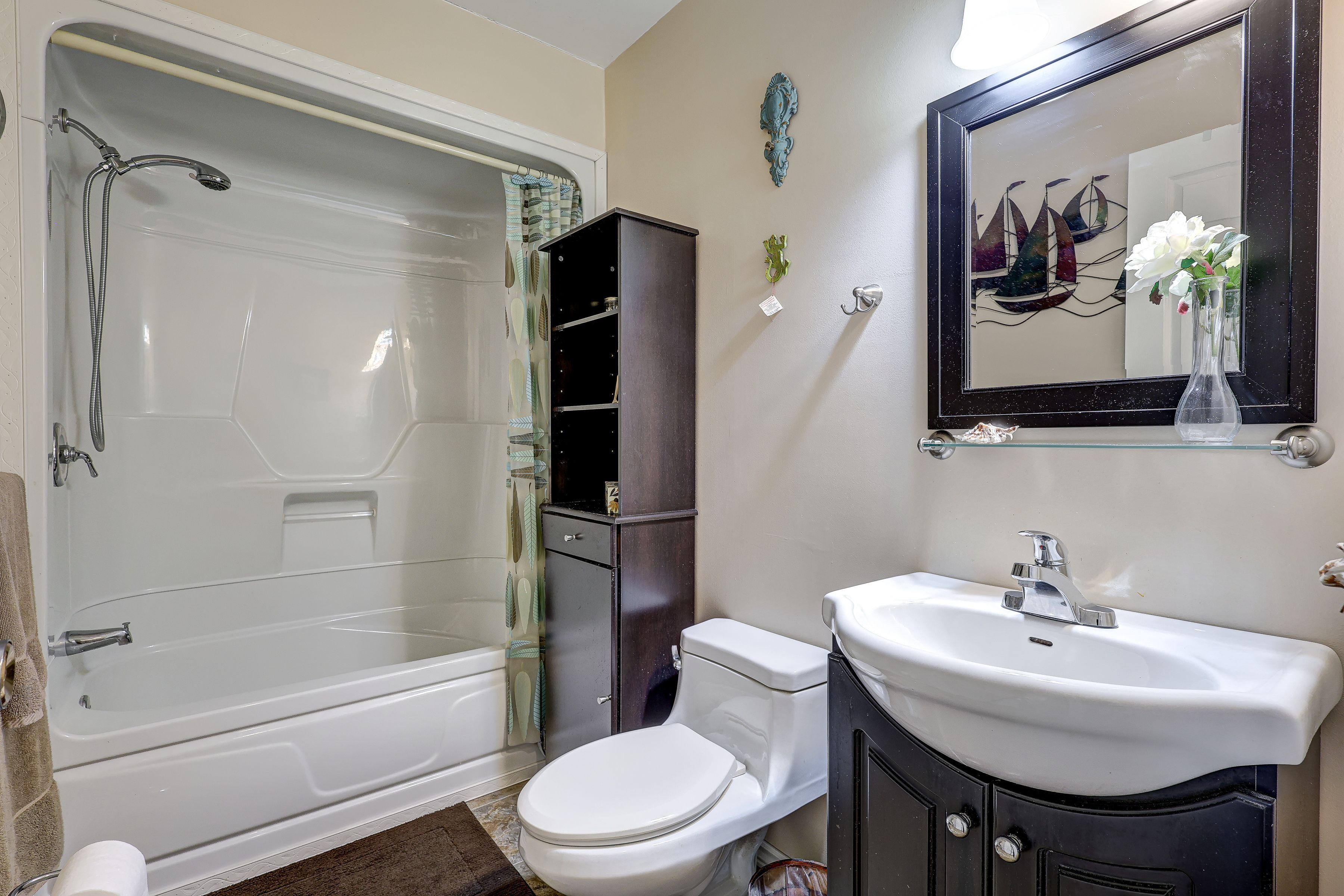 • Private yard with mature trees, great for barbecues and family evenings.