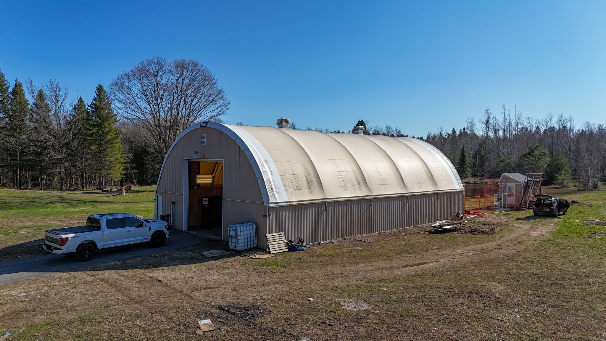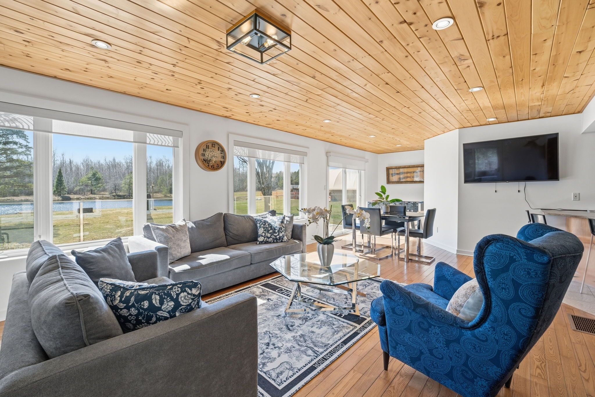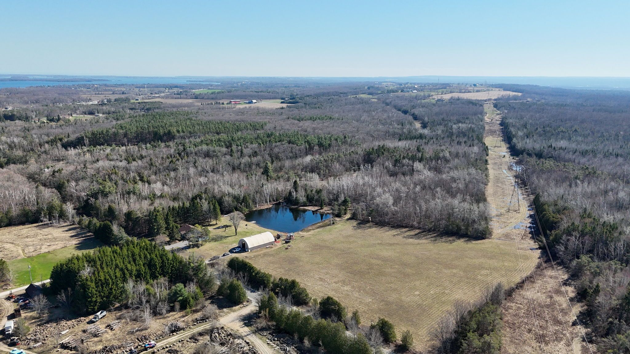 Discover your own private escape with this exceptional 59-acre estate, where nature, privacy, and lifestyle come together seamlessly. This charming bungalow offers 3 spacious bedrooms on the main level with an additional bedroom in the finished basement, providing flexibility for families, guests, or extended living. Inside, the home has been thoughtfully updated with a modern kitchen, rich hardwood flooring, custom cedar wood finishes, and elegant crown moulding. Large windows flood the space with natural light while showcasing breathtaking views of the surrounding landscape. A stunning glass sunroom adds the perfect year round retreat to relax and take in the peaceful setting. Step outside and experience everything this property has to offer. Enjoy quiet mornings step outside and experience everything this property has to offer. Enjoy quiet mornings overlooking a serene pond, entertain around the custom interlock firepit, or explore your own private trail system through a beautiful mix of hardwood and softwood forest. The property private trail system through a beautiful mix of hardwood and softwood forest. The property also features a garage, a massive 40 by 70 outbuilding, and a separate paved driveway ideal for boats, equipment, or recreational vehicles. Over $150,000 has been invested into upgrades and improvements, including a full camera security system for both the home and barn, as well as a brand new 200 amp electrical panel. For outdoor enthusiasts and hunters, the property is equipped with 7 custom built hunting stands and is home to abundant wildlife including deer and turkey, with photo evidence showcasing the land's potential. Conveniently located just 1 minute from a main highway, 5 minutes from weber's charcoal grilled burgers, minutes to local schools, and approximately 1 hour from toronto, this property offers the perfect balance of privacy and accessibility. The tractor currently stored in the barn is available for purchase separately.