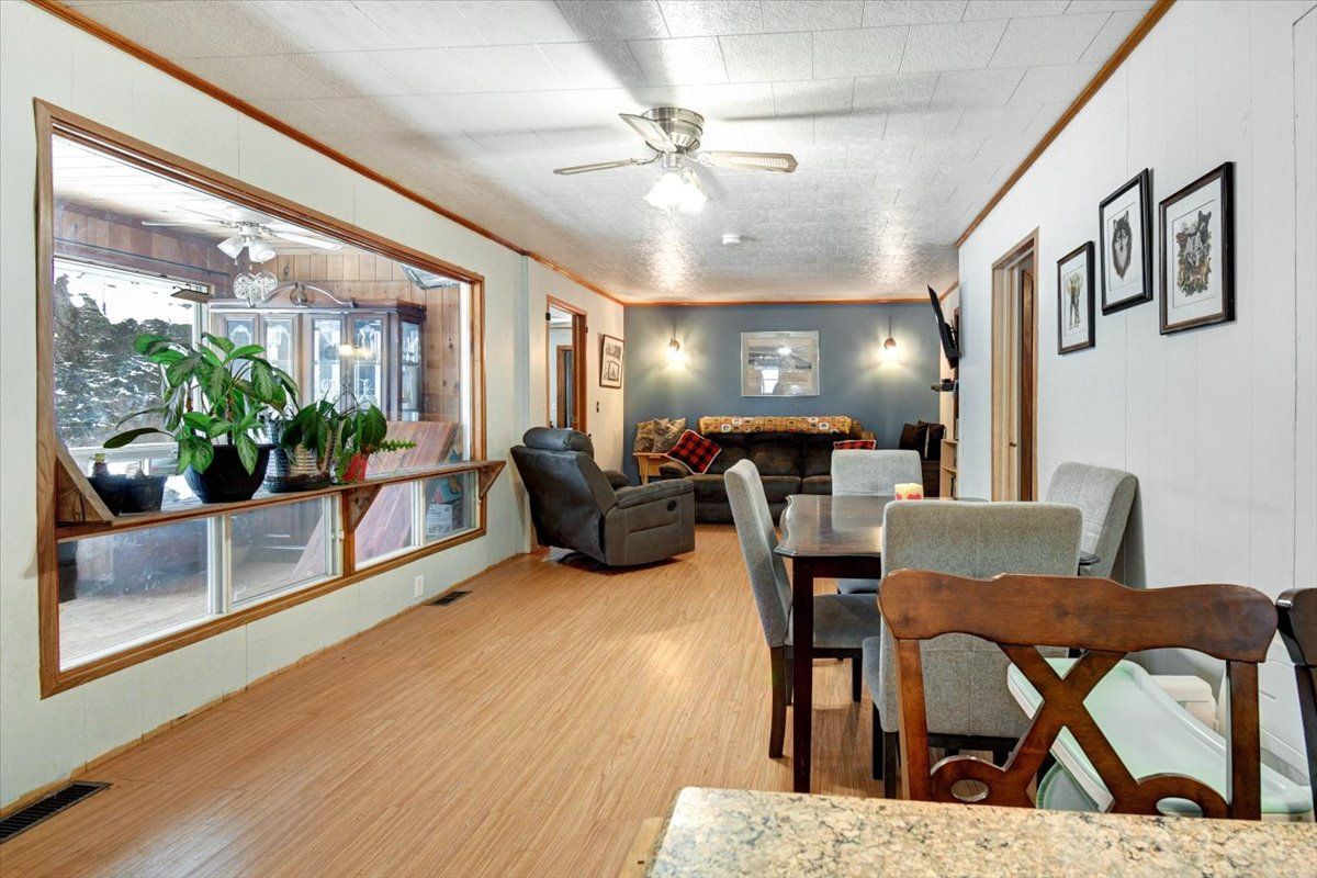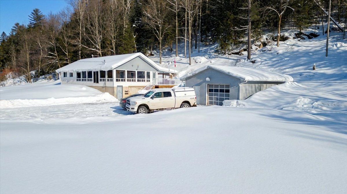 This should tick some boxes! Three bedroom home with a nice master suite and ensuite, two more main floor bedrooms and another 4 pc bathroom, and main floor laundry room. Open concept kitchen, dining and living area, over 60 feet of wrap around four season sunroom, a walkout unfinished basement, all on 2. 5 acres, 5 minutes east of bancroft. It has a heated shop and another large driveshed which holds the outdoor wood furnace and all your wood. The home has had recent improvement such as the main floor bathroom, new decks and covered porch and some cosmetics. Overall condition is very good and ready to move into. This is a great spot at a great price.