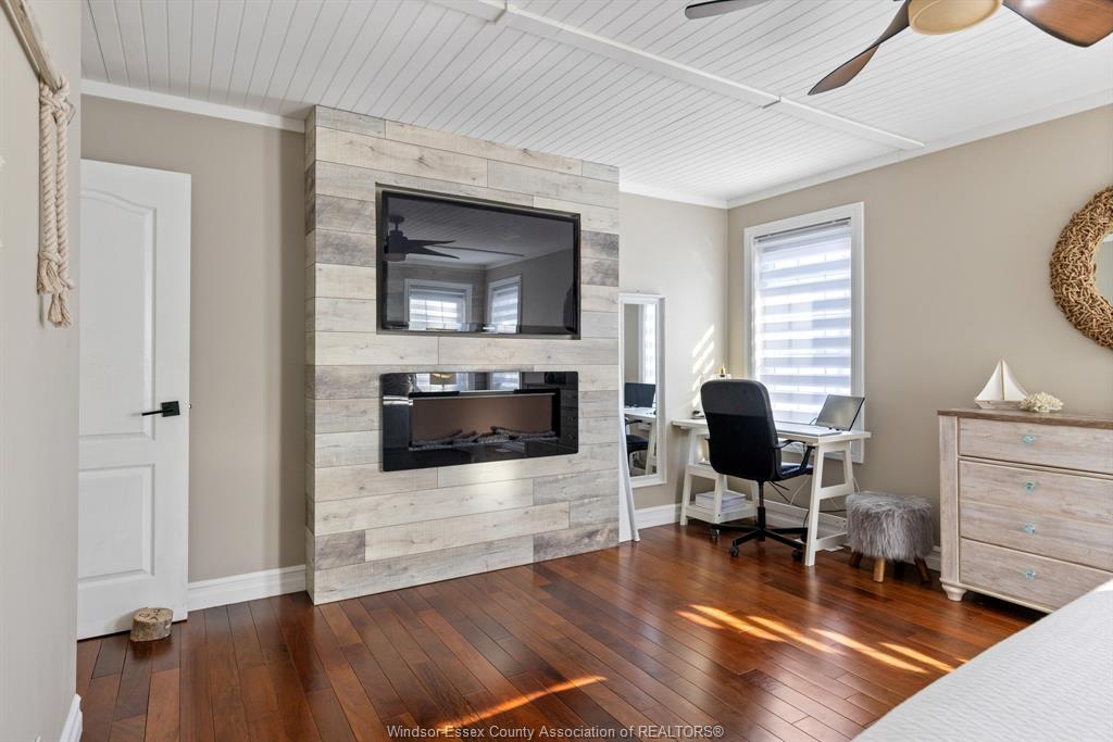 Located on crystal bay drive on historic boblo island, this well-appointed two-storey home offers a blend of modern finishes and island lifestyle living just minutes from amherstburg. The property features 5 bedrooms and 4 bathrooms, including a main-floor primary suite. The open-concept main level is designed for everyday living and entertaining, highlighted by a custom kitchen island crafted from reclaimed wood sourced from the former boblo island bumper car building - a unique architectural feature that reflects the island's history. The fully finished lower level provides additional living space, including a large recreation/great room, bedroom, bathroom, and flexible-use areas suitable for guests, fitness, or family living. Outdoor spaces offer opportunities for entertaining and relaxation in a waterfront island setting. Residents of boblo island enjoy access to ferry transportation, walking trails, and golf cart- friendly community living. A distinctive opportunity to own a spacious home in one of windsor-essex county's most unique waterfront communities.