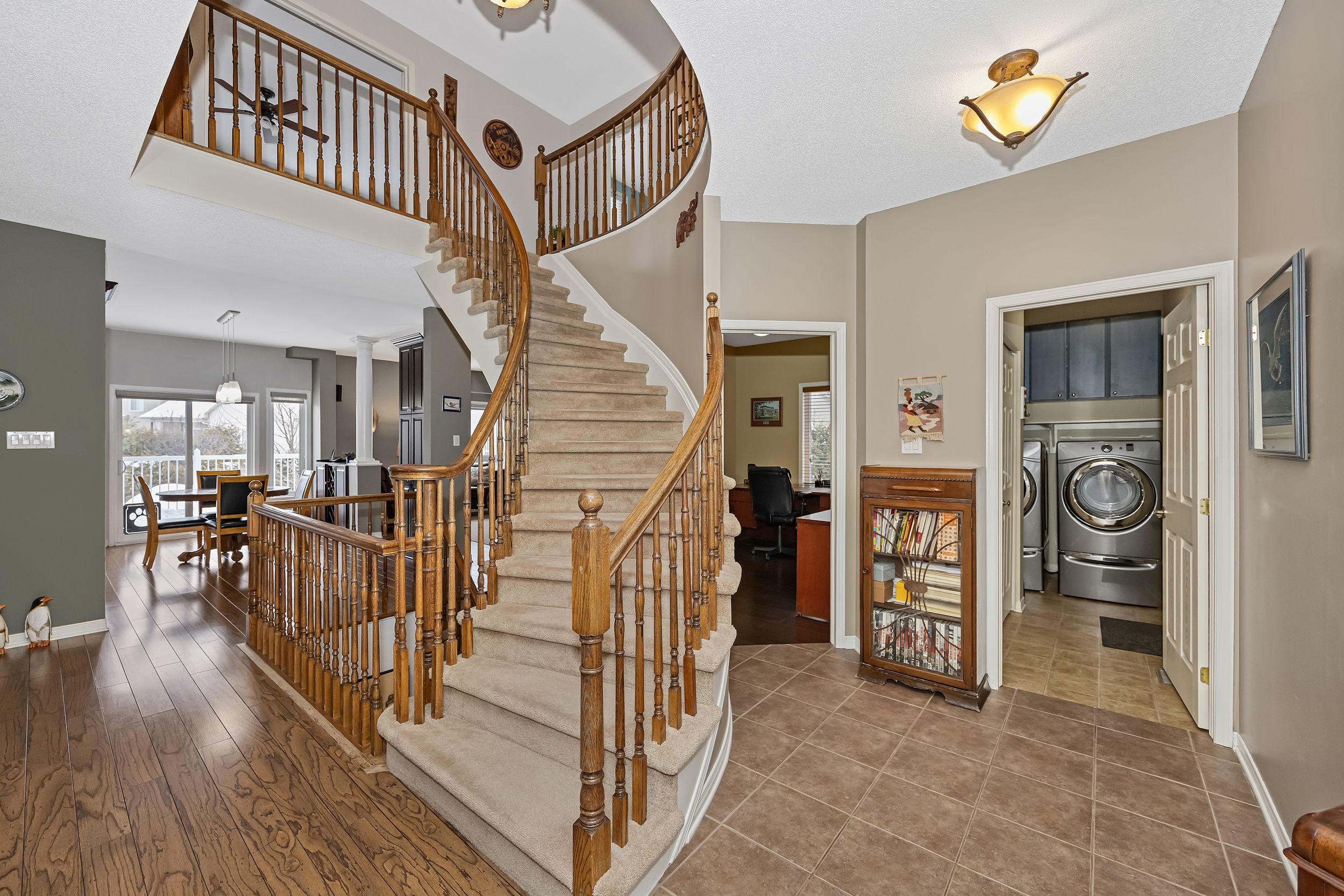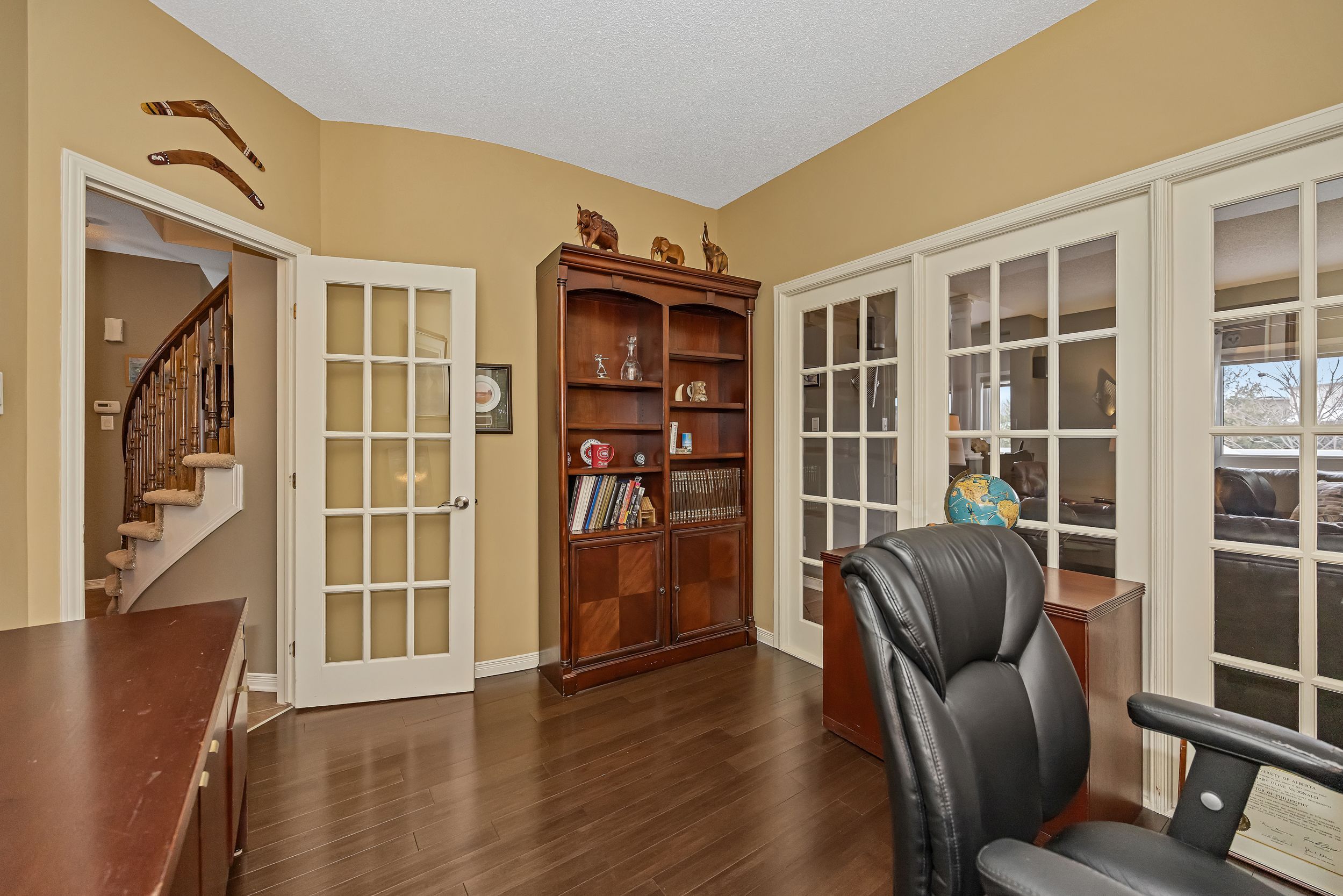 Welcome to 313 quartz avenue in morris village. Spacious and beautifully maintained true four-bedroom family home set on an oversized lot with a walk-out basement. The thoughtfully designed main floor features a welcoming foyer, formal living and dining rooms, a bright eat-in kitchen with access to balcony, a comfortable family room, private office, mudroom, and convenient main-floor laundry. A striking circular staircase adds architectural charm and leads to the second level. Upstairs you'll find four generously sized bedrooms. The primary suite includes a walk-in closet and beautifully renovated ensuite. Two additional bedrooms also offer walk-in closets, and the main bath has been tastefully renovated. The expansive walk-out basement offers tremendous opportunity to create something truly special. Whether you envision a large family retreat, games room, fitness studio, hobby space, or additional living quarters for a busy household, the possibilities here are endless. Enjoy the three-season porch off the kitchen with stairs leading to the spacious backyard with shed. The oversized lot provides room to play, entertain, or design your dream outdoor space. Complete with a double garage, this home offers space, flexibility, and long-term value for growing families. New front & back railings, furnace 2024, hwt 2019 ***open house sunday feb 22nd, 2-4pm. 24 hours irrevocable on all offers. Taxes need to be verified.