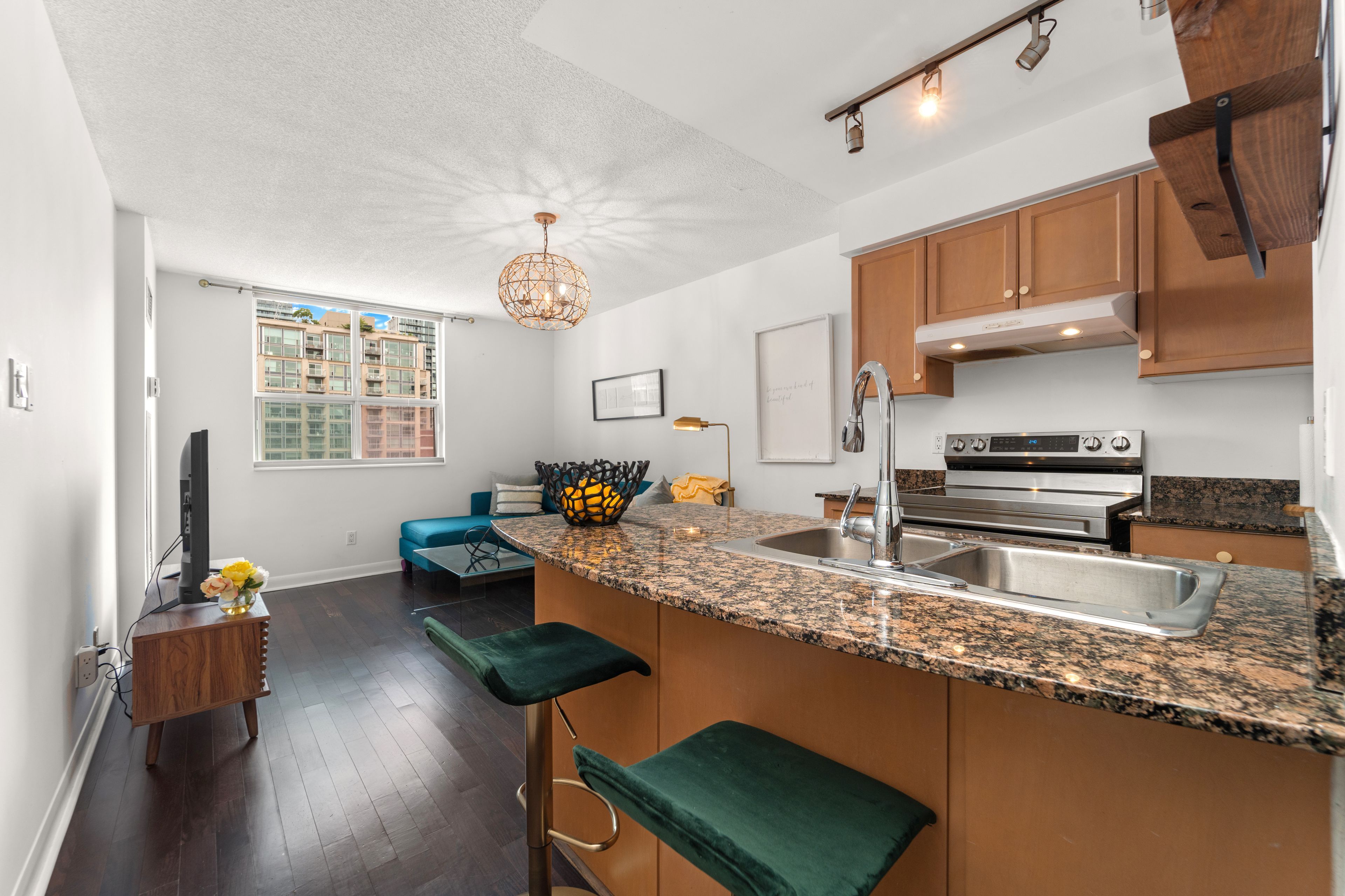 Experience downtown living at its absolute finest! This exquisite 1 bed + den south-facing suite is situated in "the richmond," built by tridel and perfectly nestled within the vibrant st. Lawrence market neighborhood and king east design district. Enjoy the perk of **all inclusive utilities ** & living in the one of the best managed condos in the city. Step into this thoughtfully designed south-facing suite with lots of natural light & a functional floor plan. The kitchen boasts elegant granite countertops and a breakfast bar. The primary bedroom features a generous closet and floor-to-ceiling windows with walkout to rare open balcony, creating a serene and airy retreat. The versatile den offers the perfect space for a home office or a cozy reading nook. This extensively renovated building itself is a testament to luxury living, offering an array of exceptional amenities including a 2-level gym, an expansive rooftop terrace with bbqs (one of the best in the city), a hot tub, 24-hour concierge service, a library, basketball court, billiards room, and a sauna. Indulge in the convenience of urban living with everything you desire just a short stroll away parks, bars, restaurants, the renowned st. Lawrence market, the historic distillery district, financial district, the scenic waterfront, boutique shops, and theatres. Walk/transit/bike score: 99/100/98.