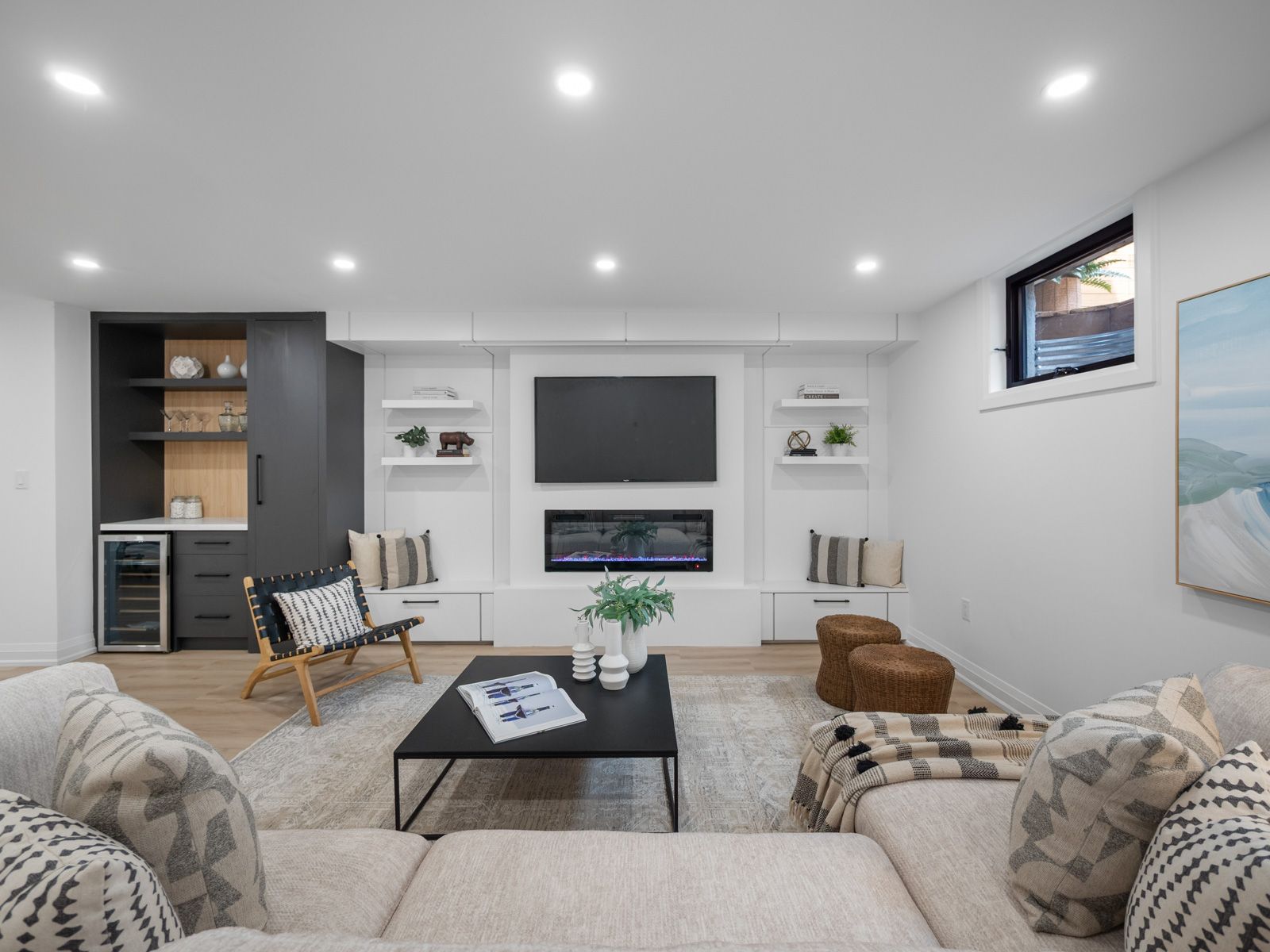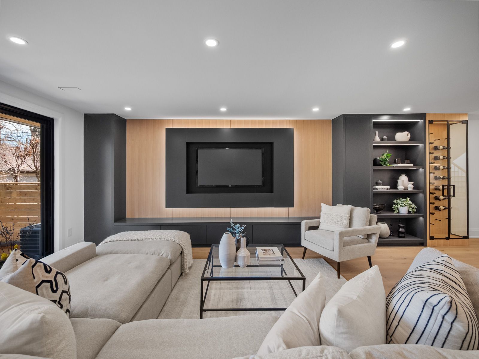 Welcome to 313 willard avenue, an exceptional custom residence in a prime bloor west village location, just steps to the boutiques, cafés, and amenities along bloor street west. Situated on the first block north of bloor, this home sits on a coveted 156 ft deep lot, offering rare space, privacy, and a true backyard experience in the heart of the west end. Completely reimagined, extended, and underpinned, this home offers nearly 3,700 sq ft of refined living space where thoughtful design and exceptional craftsmanship are evident throughout. From the new parking pad, front porch and curated landscaping to the private rear garden and finished bunkie, every detail of this family home has been carefully considered. The open concept main floor is both expansive and inviting, featuring wide plank oak flooring, custom millwork, and a striking light filled staircase. The kitchen is a true centrepiece with a 10ft island, sleek cabinetry, premium appliances, and seamless flow into the dining area and rear family room. Custom built-ins, bar, and wine display create an ideal setting for entertaining. Floor to ceiling glass doors open to an expansive deck and beautifully landscaped yard, extending the family living space outdoors. Upstairs, four generously sized bedrooms offer large windows and custom built-in closets. The primary suite features a five piece ensuite with custom cabinetry, dressing table, and freestanding tub, along with a spacious walk-in closet. A large family bathroom and coveted second floor laundry add everyday convenience. The fully underpinned lower level offers approximately 1,100 sq ft of living space, including a recreation area with built-in bar, shelving, storage, motorized projection screen, guest bedroom, and bathroom. With all new systems, windows, finishes, and meticulous attention to detail throughout, this is a rare turnkey opportunity in one of toronto's most sought-after neighbourhoods with runnymede jnr/snr, st pius & humberside ci catchment.