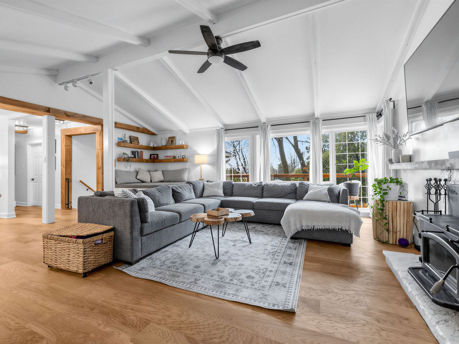 Welcome to 313 winnifred dr in keswick, a beautifully renovated 4-bedroom oversized bungalow set on a gigantic lot on a quiet private cul-de-sac, just a 5-minute walk to lake simcoe. Offering exceptional privacy, electric entrance gates, and a charming farmhouse/french cottage aesthetic, this move-in ready home blends modern upgrades with timeless character. Inside, engineered hardwood flooring runs throughout, creating a warm and cohesive feel. The fully renovated kitchen features new appliances and a gas line for a gas stove, while the updated bathrooms offer clean, modern finishes designed for everyday comfort. New appliances throughout. The spacious living room is anchored by a cozy wood-burning fireplace, adding warmth and character to the main living space. The lower level features a spacious 1-bedroom, complete with a full kitchen, bathroom, living room and laundry offering excellent potential for rental income, in-law accommodation, or extended family living. Outside, major improvements provide peace of mind, including culvert installation and professional grading to direct water away from the home. The backyard is designed for relaxing and entertaining with a newly built deck and gazebo area surrounded by the privacy of the expansive lot. An oversized attached garage offers ample room for parking, storage, or a workshop and includes its own furnace to keep the space heated during winter months.
