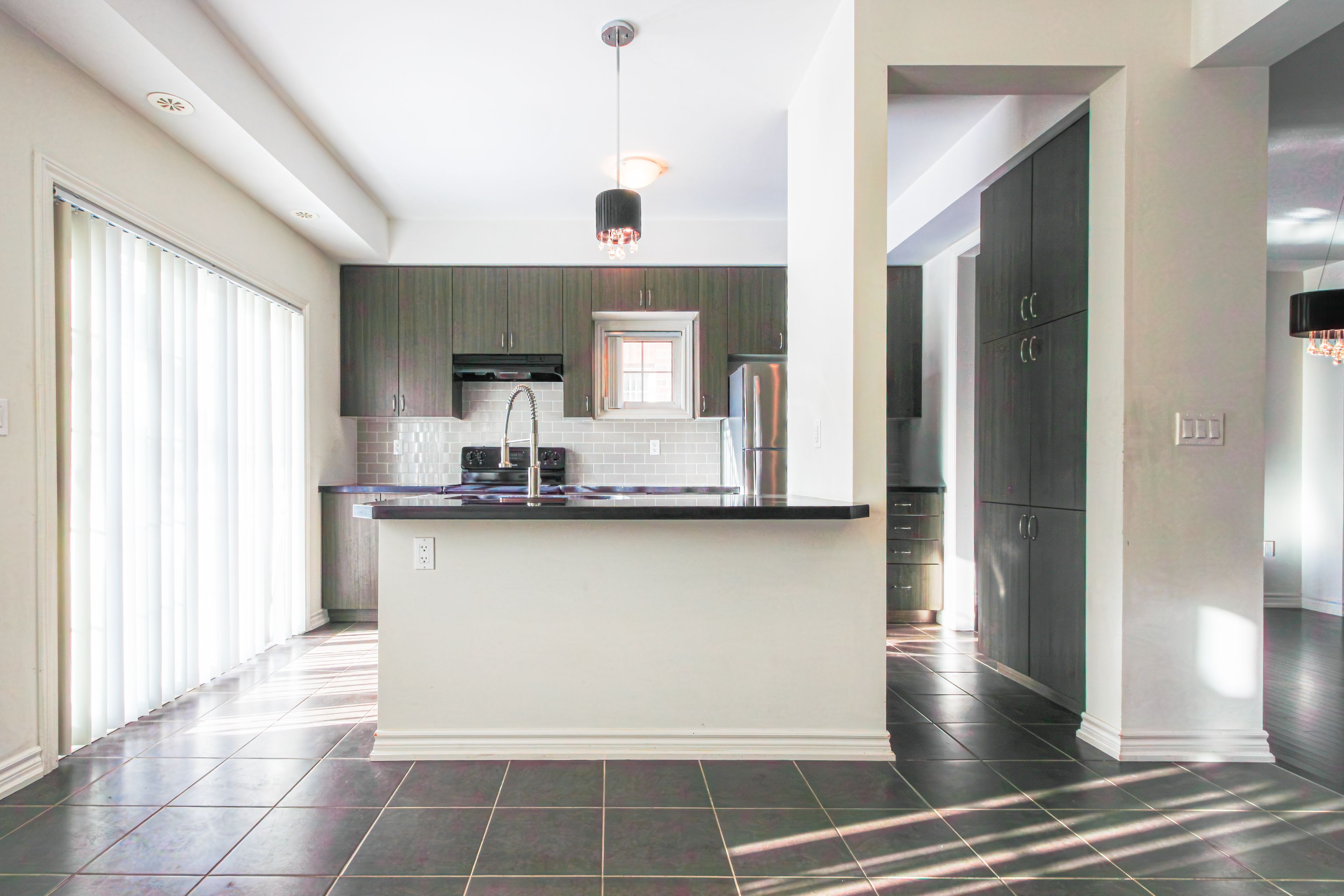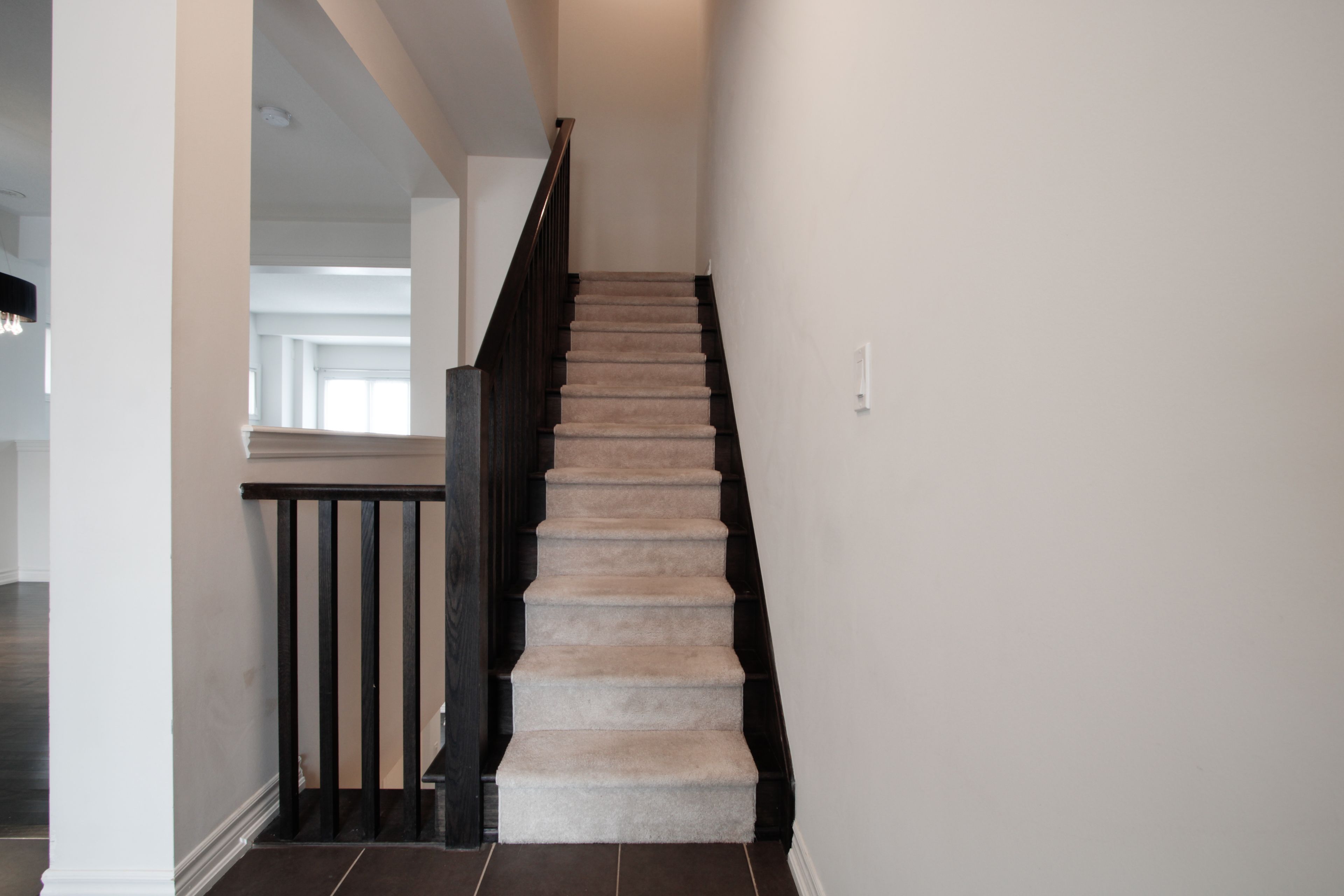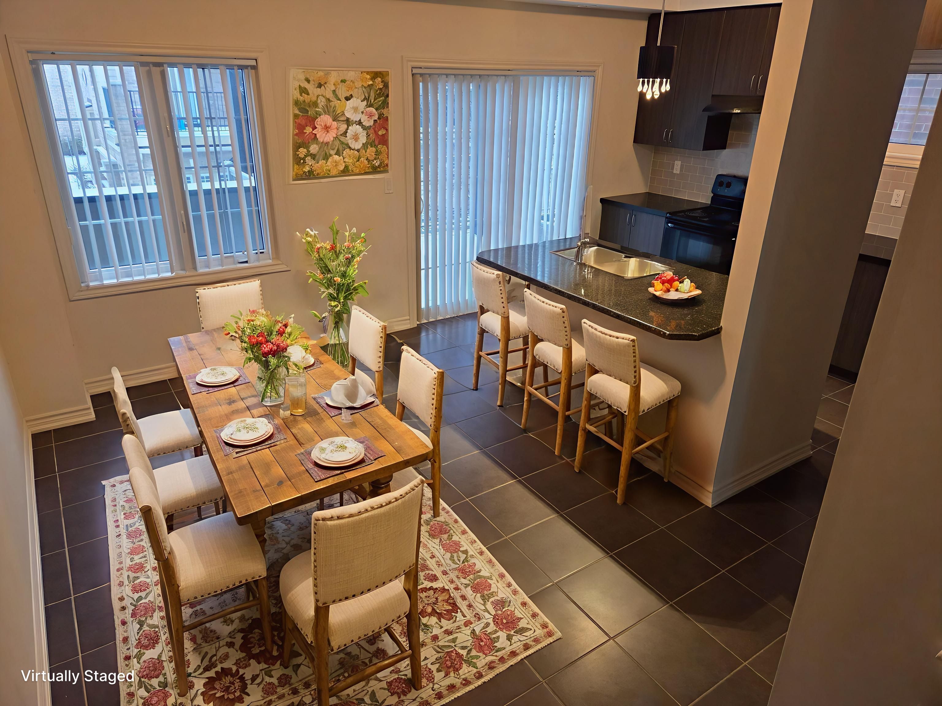 This beautiful and large 1,996 sq. Ft. (above grade), 9 year-old daniels end unit townhome offers refined living spaces and modern amenities. 3 bedrooms on the 3rd floor and a versatile 4th bedroom or den on the main floor complemented by a two-piece ensuite and provides a separate rear entrance with direct access to winston churchill boulevard. Features include elegant dark stained hardwood floors, dark oak staircases with runners from the main to the second floor, and from the second to the third floor. The second floor boasts soaring 9-foot ceilings, granite countertops, and a ceramic backsplash in the kitchen. Recently (december 2025) installed upscale vinyl flooring enhances the second floor. Primary bedroom includes a large 5 piece ensuite plus his & hers closets (one is a large walk-in, probably "hers"!) the unfinished basement includes a roughed in washroom and bright oversized windows. Perfect for a 5th bedroom or comfy rec room! Additional highlights include a spacious deck off the kitchen, proximity to shopping, convenient transit access at your doorstep, and easy connection to highway 403. Pics with furniture are virtually staged.