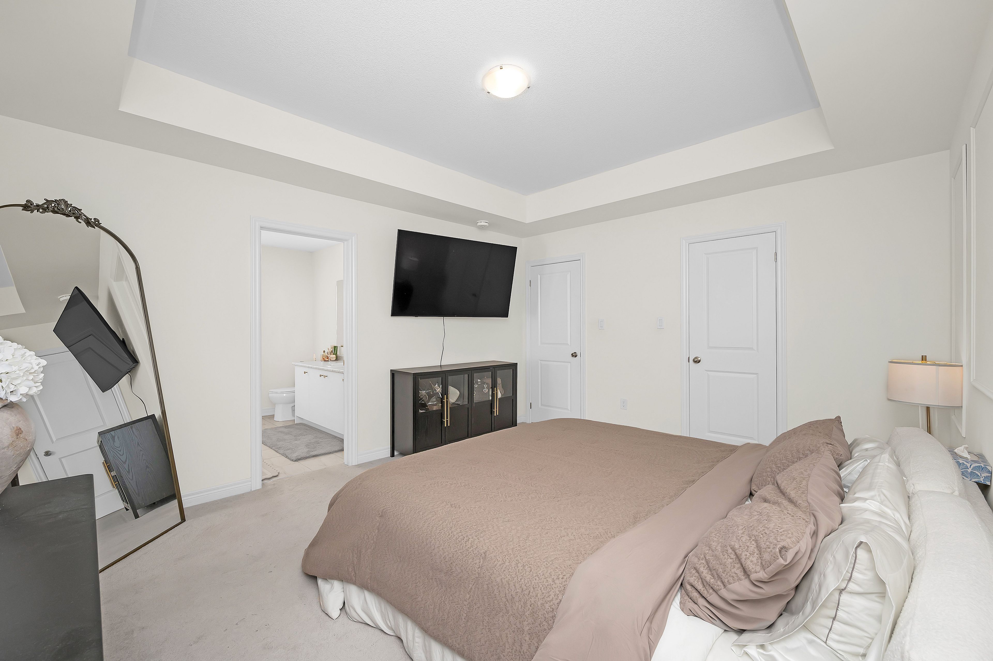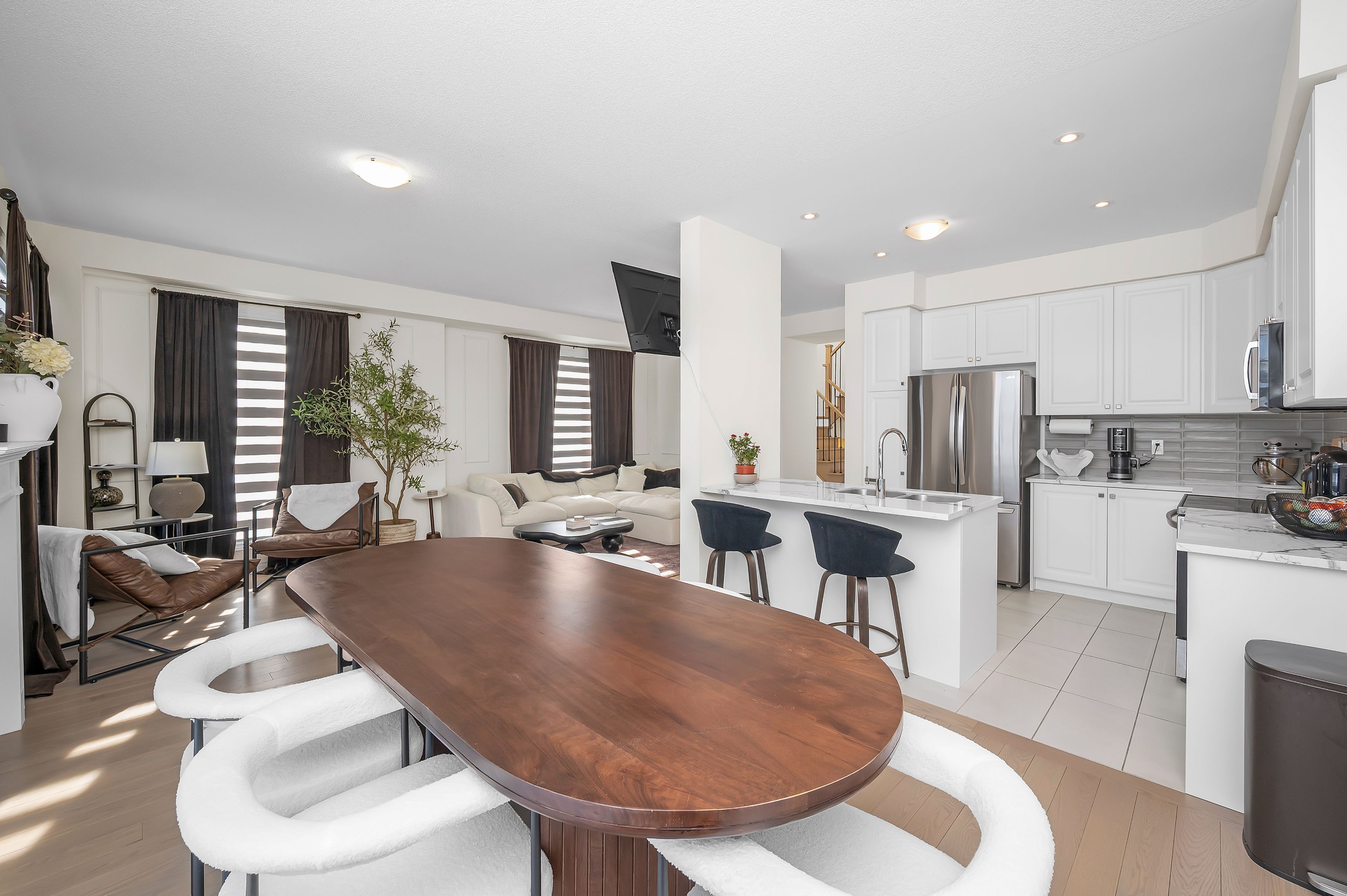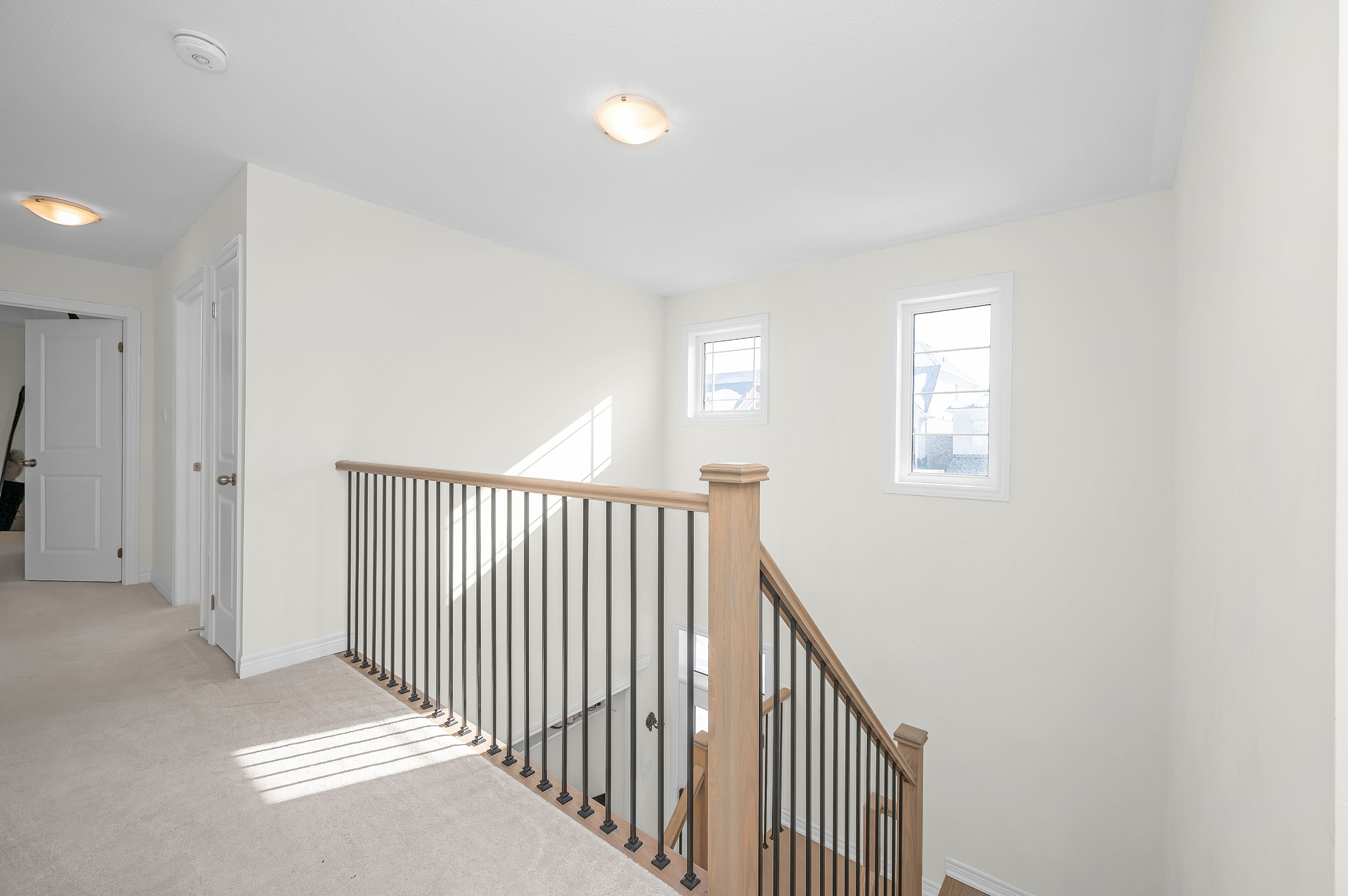 Sunshine streams through this beautiful home owing to its terrific location - a corner lot, backing onto a large park that includes a playground and dog run. There are no neighbouring homes to shadow it on the east, south and west sides. Even on cloudy days this home is a cheerful spot. Large windows take advantage of its location. A main floor bonus room could be home office or playroom. The basement is beautifully finished and has a four piece washroom. The sunny second floor is well laid out: there's a large laundry room, the primary suite overlooks the park. Alton village is a lovely family friendly community offering easy access to highways and transit. This is an outstanding value for a place you'll be happy to call home.