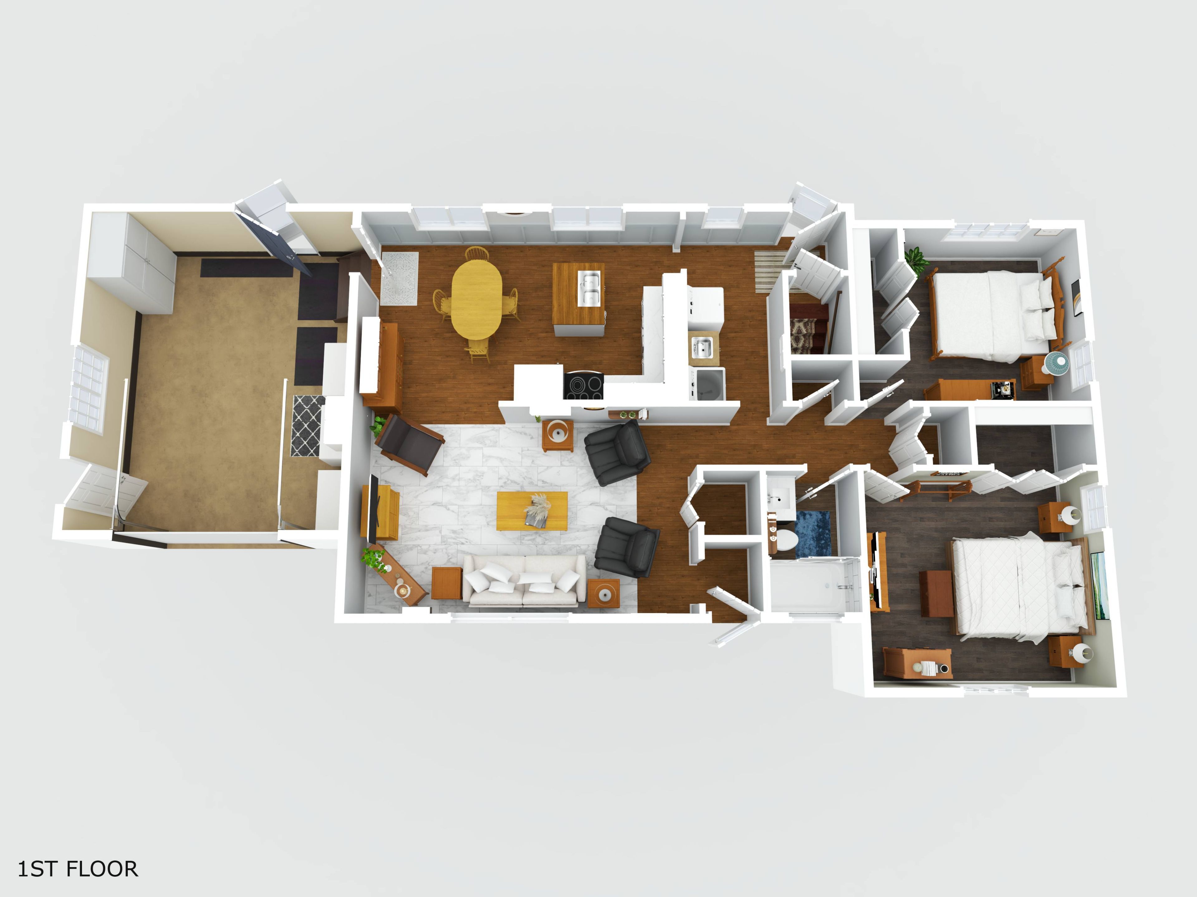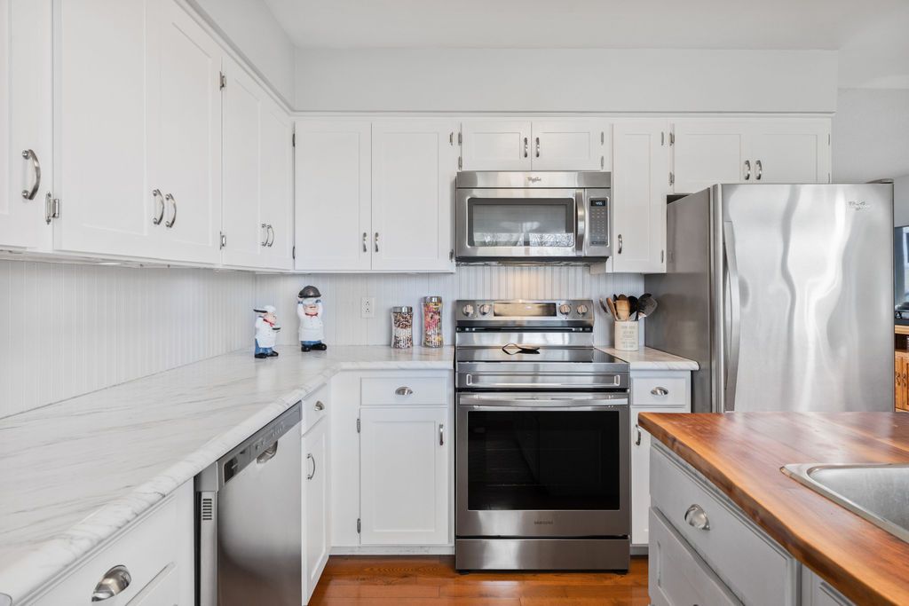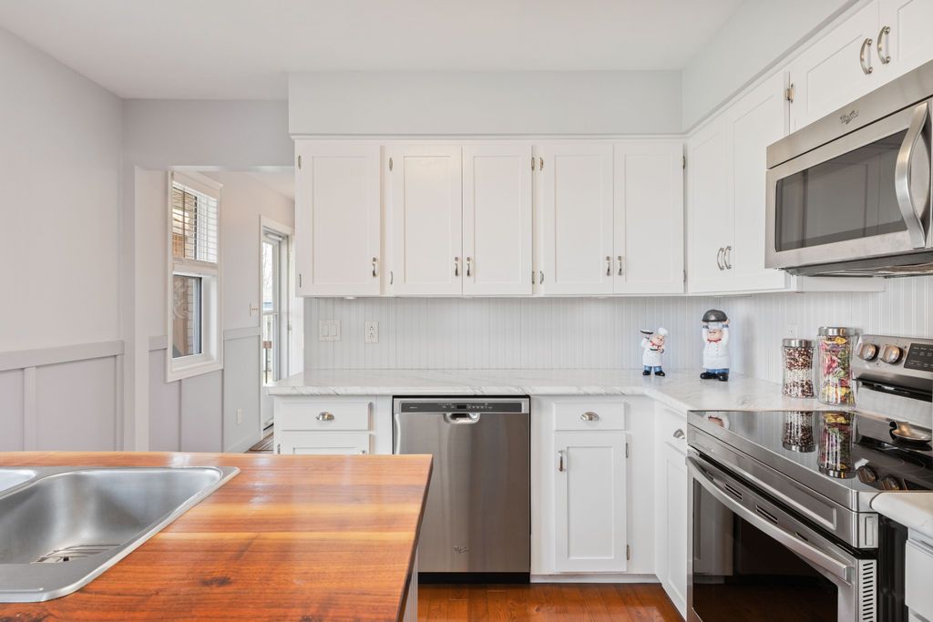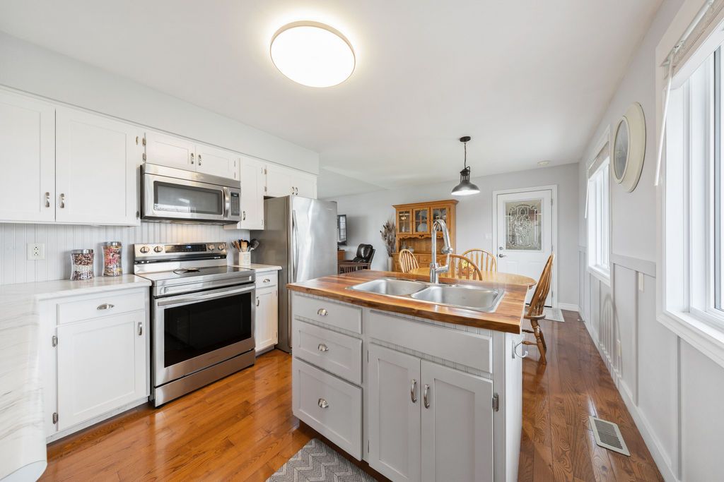 • Spacious living room and kitchen with a butcher block island for entertaining.