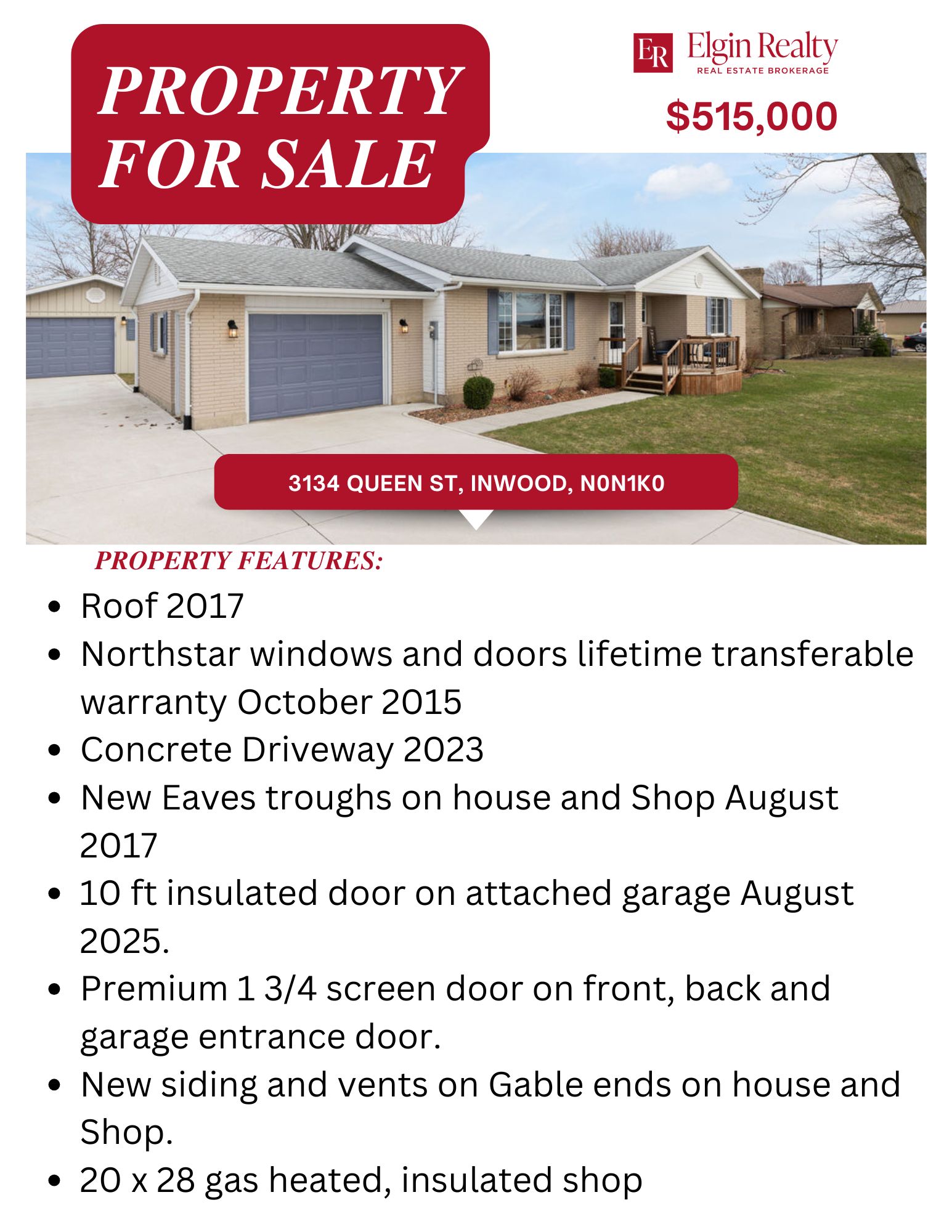 For Sale - 3134 Queen Street, Brooke-Alvinston, Ontario