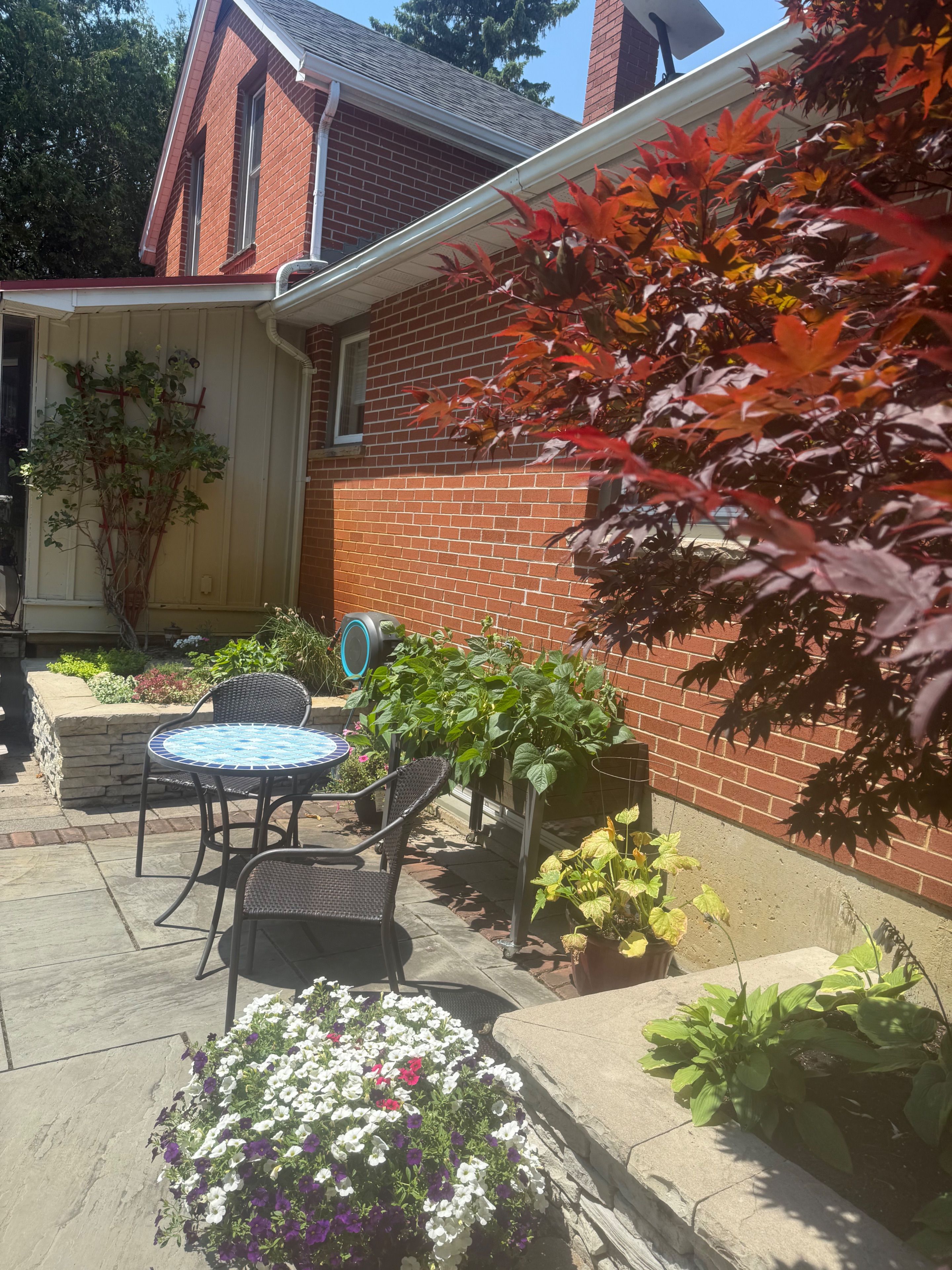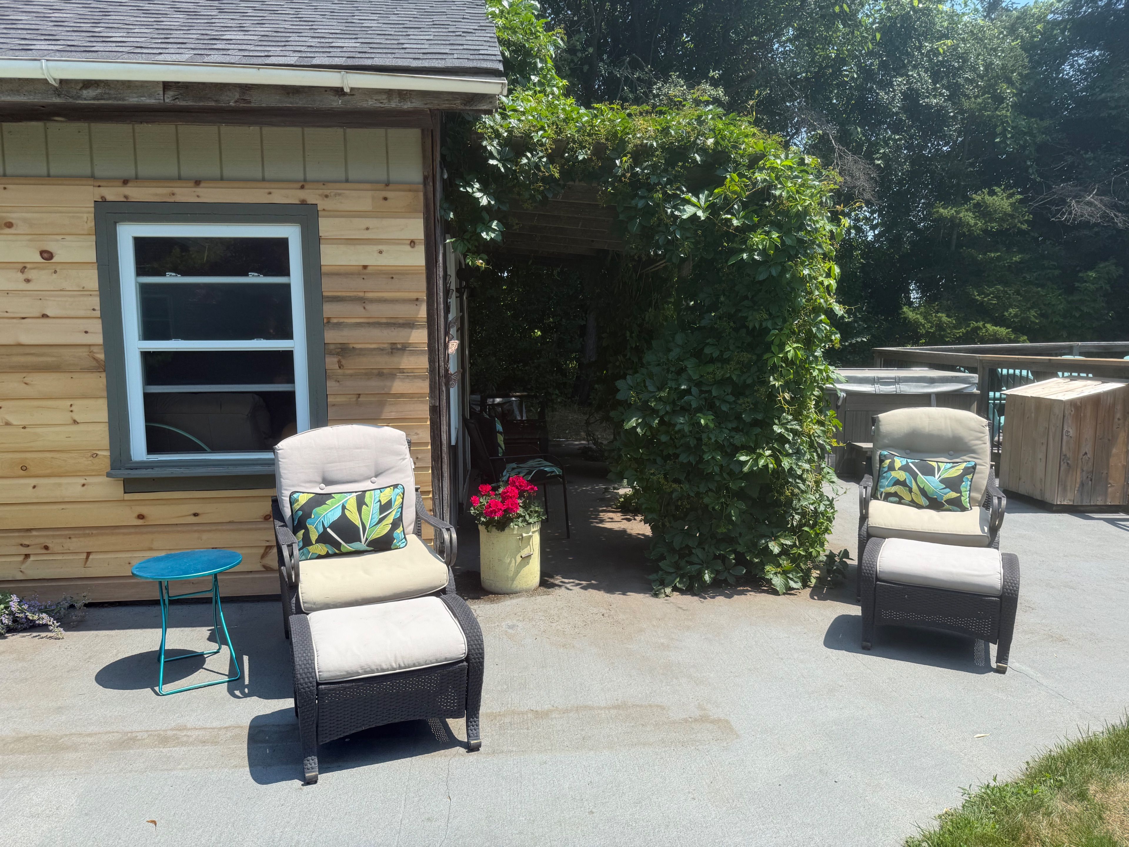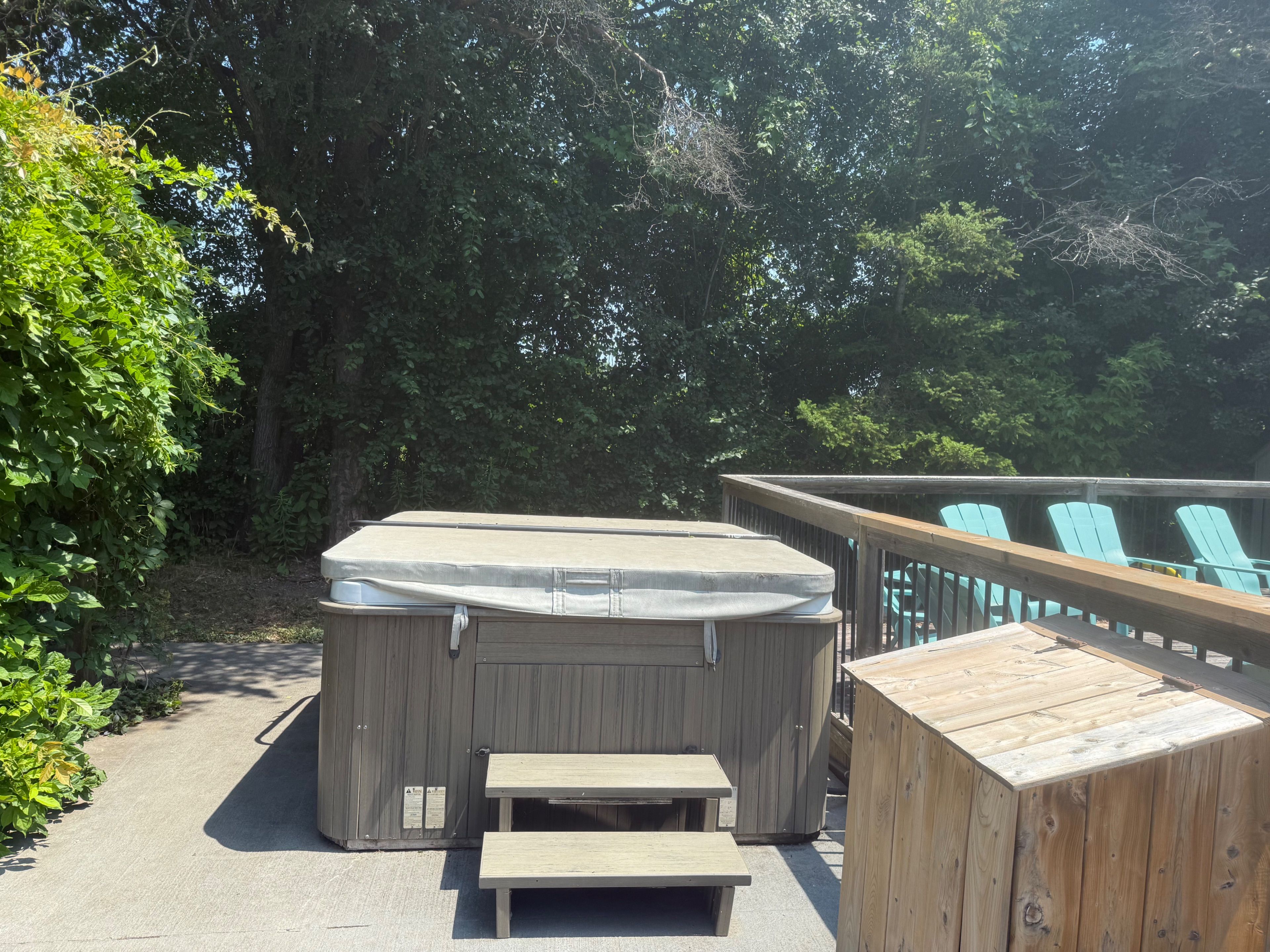 • Private fenced yard with mature trees, gardens, and a hot tub.