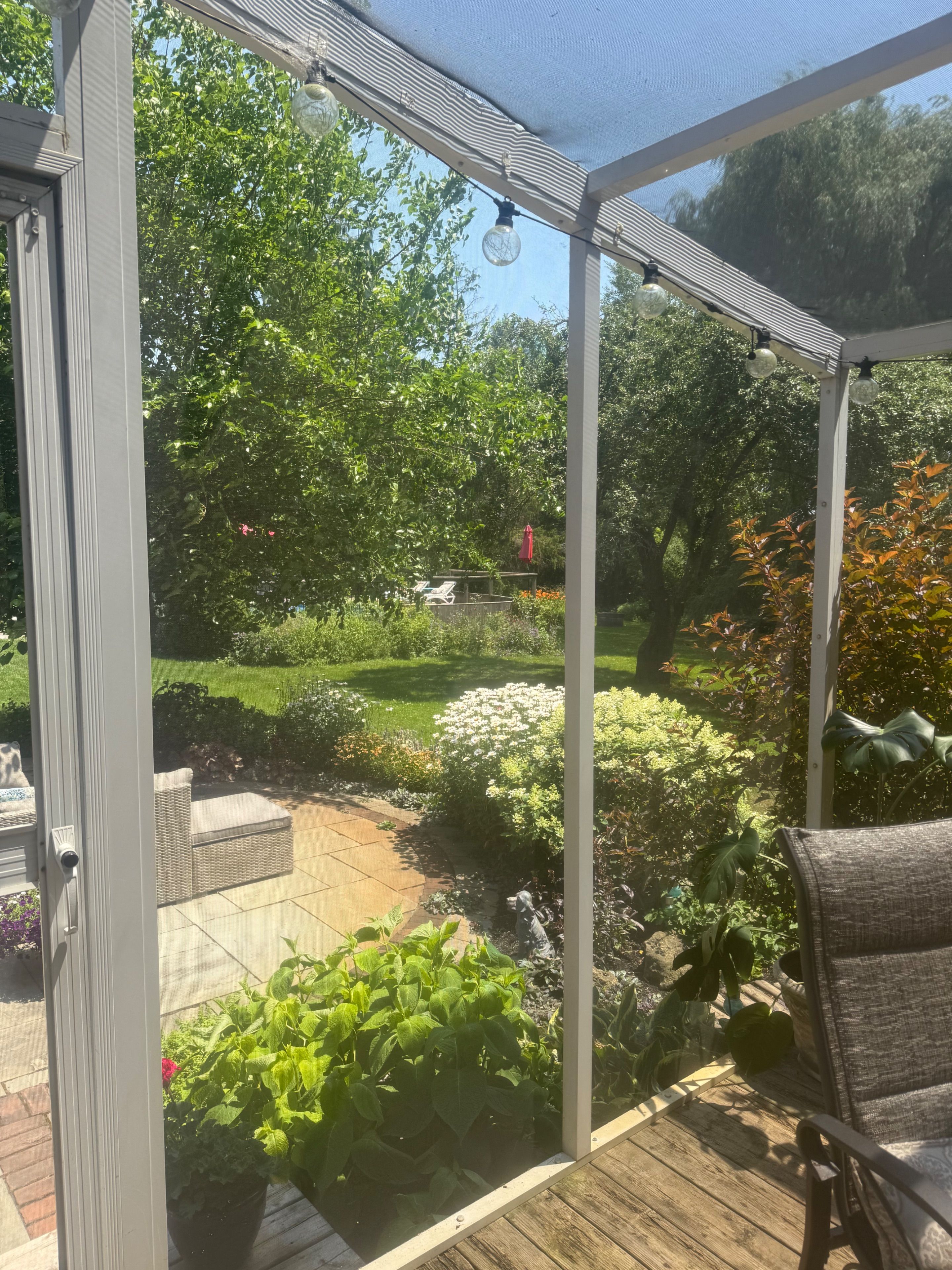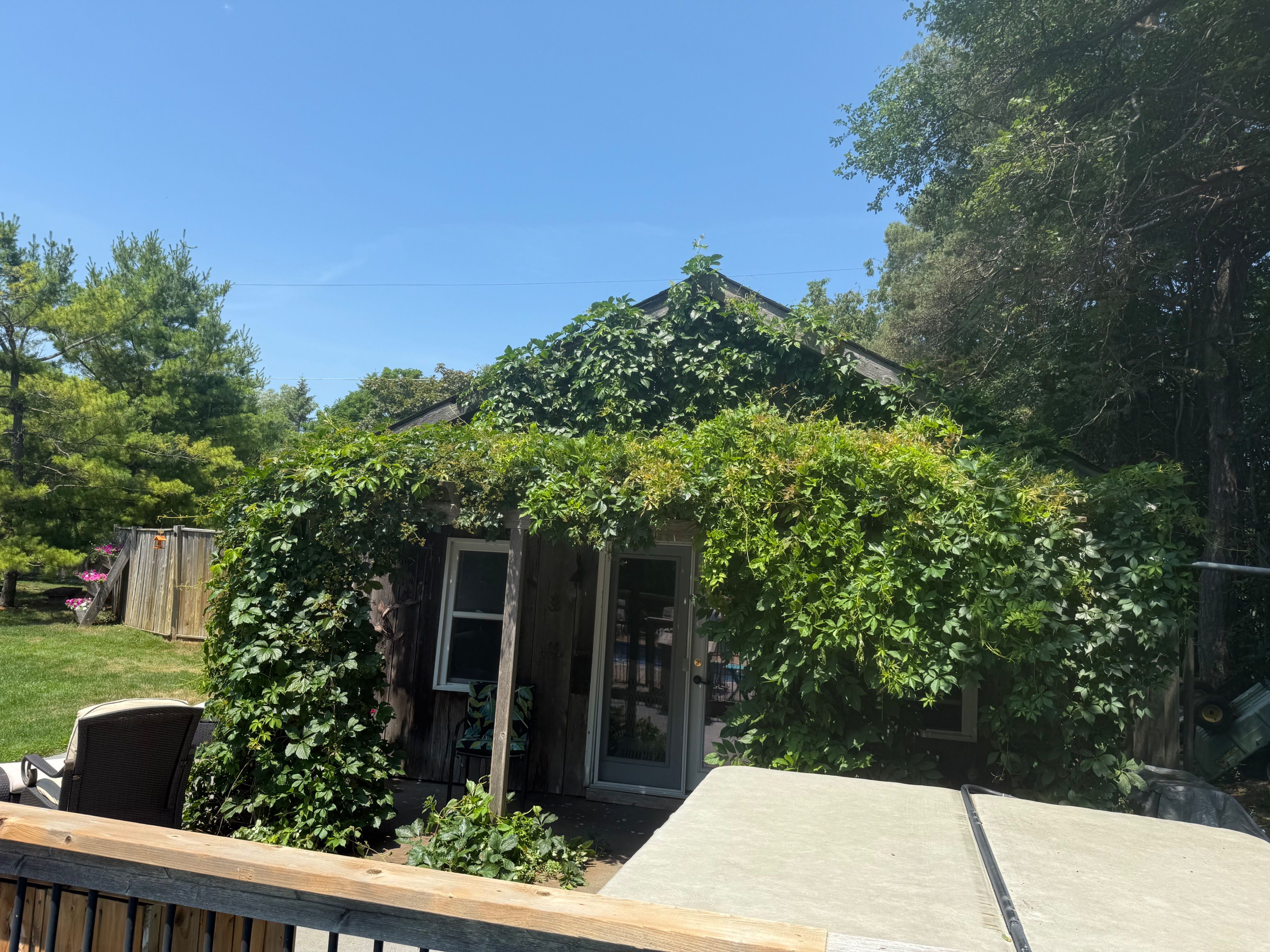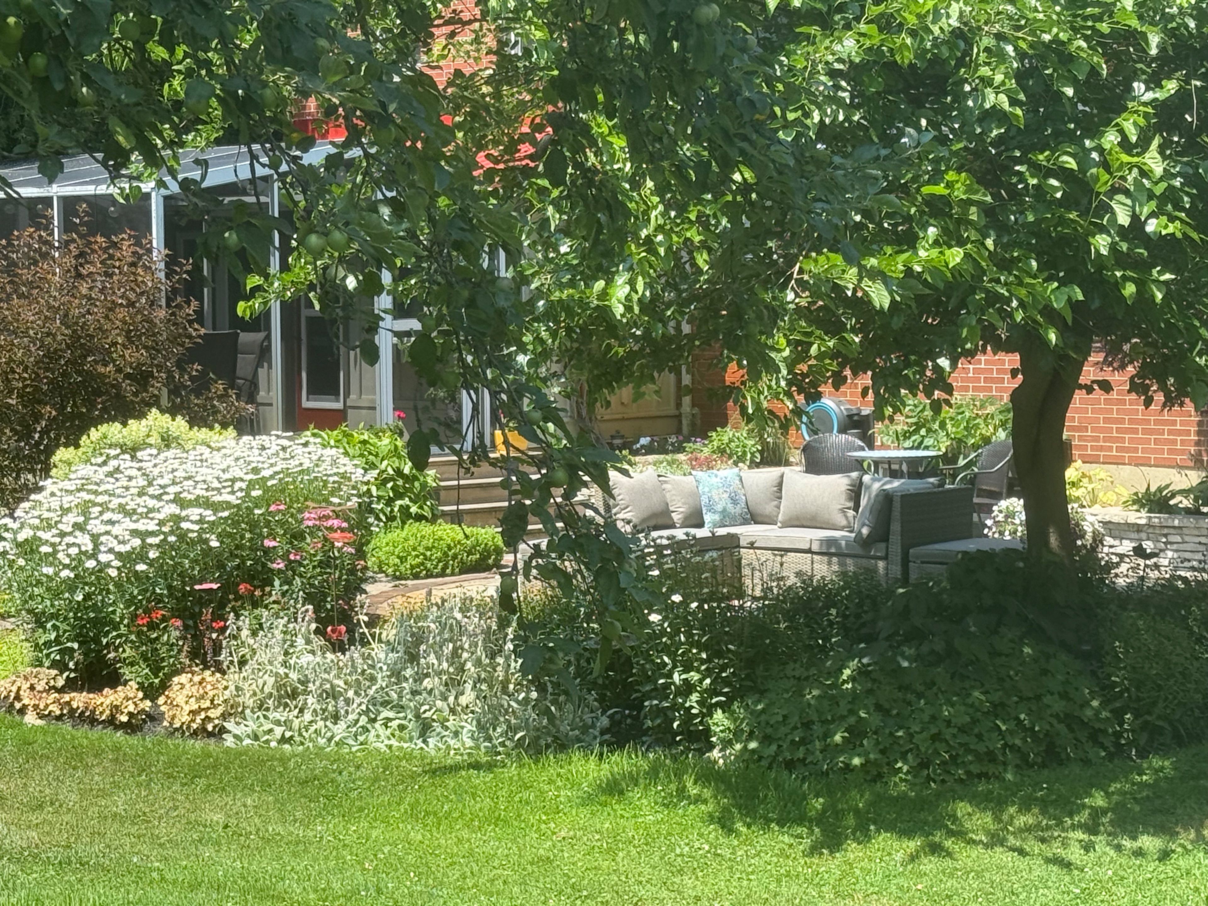 • Private fenced yard with mature trees, gardens, and a hot tub.
