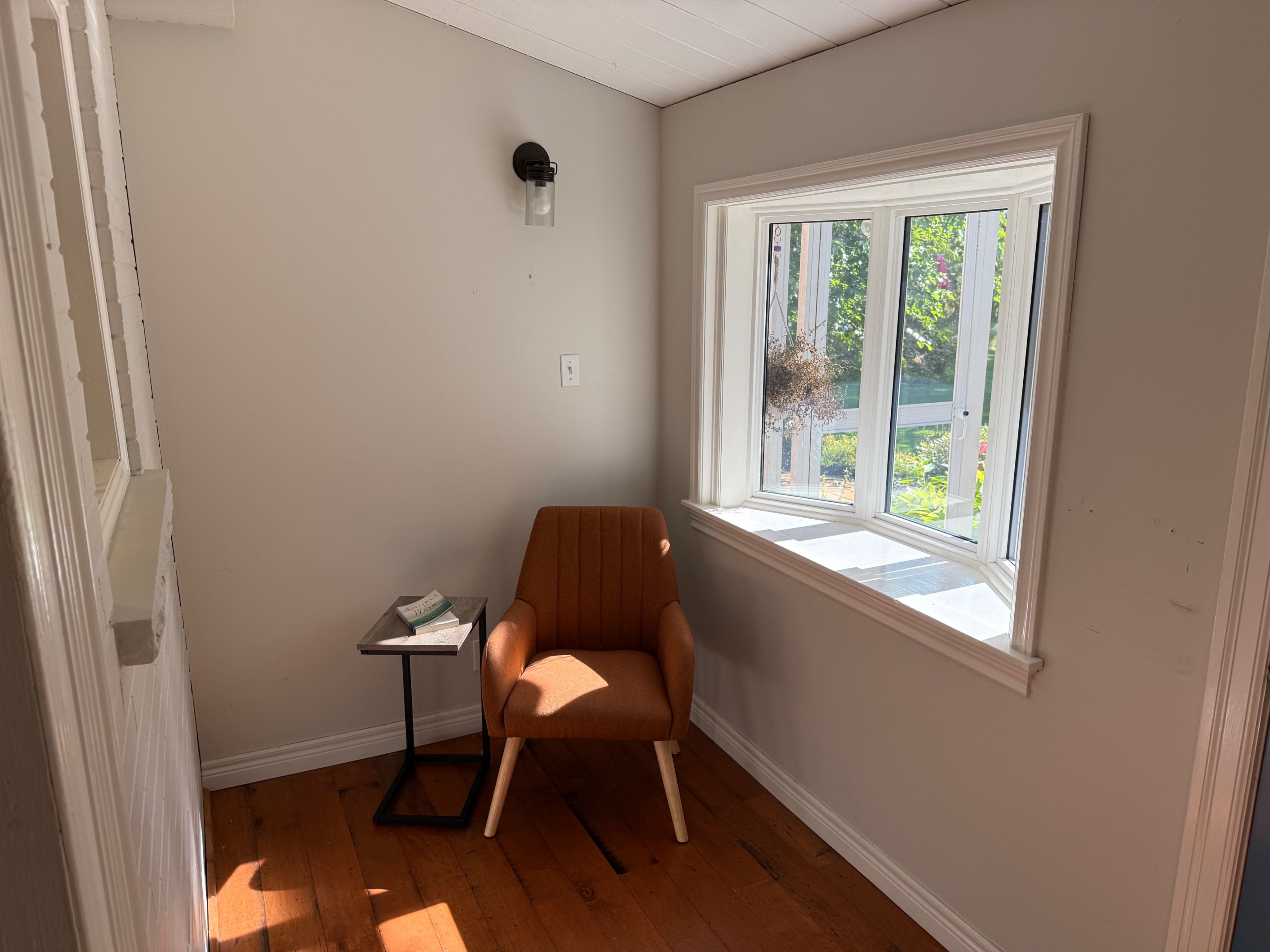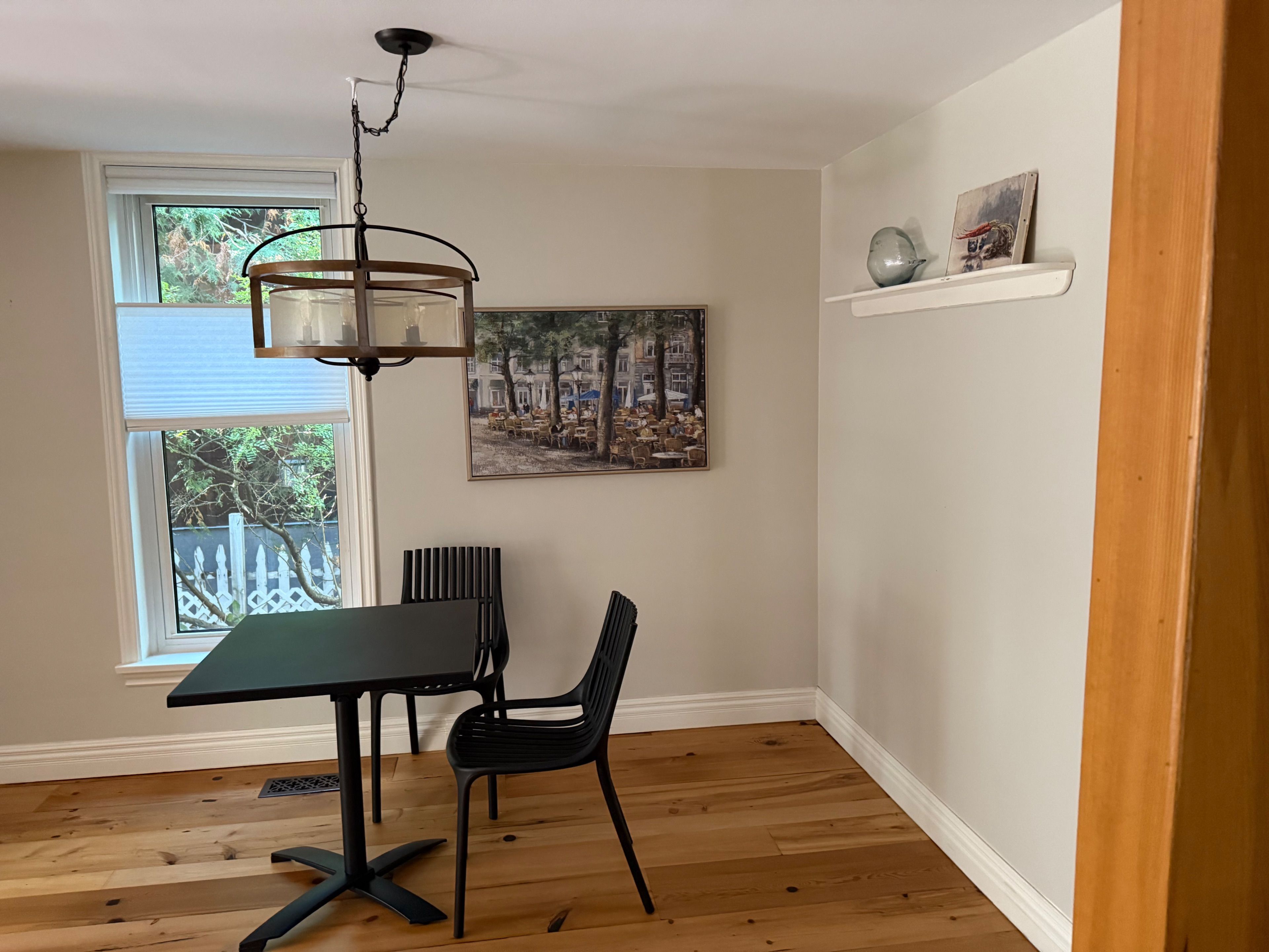• Well-equipped eat-in kitchen and cozy sitting room with a gas fireplace.