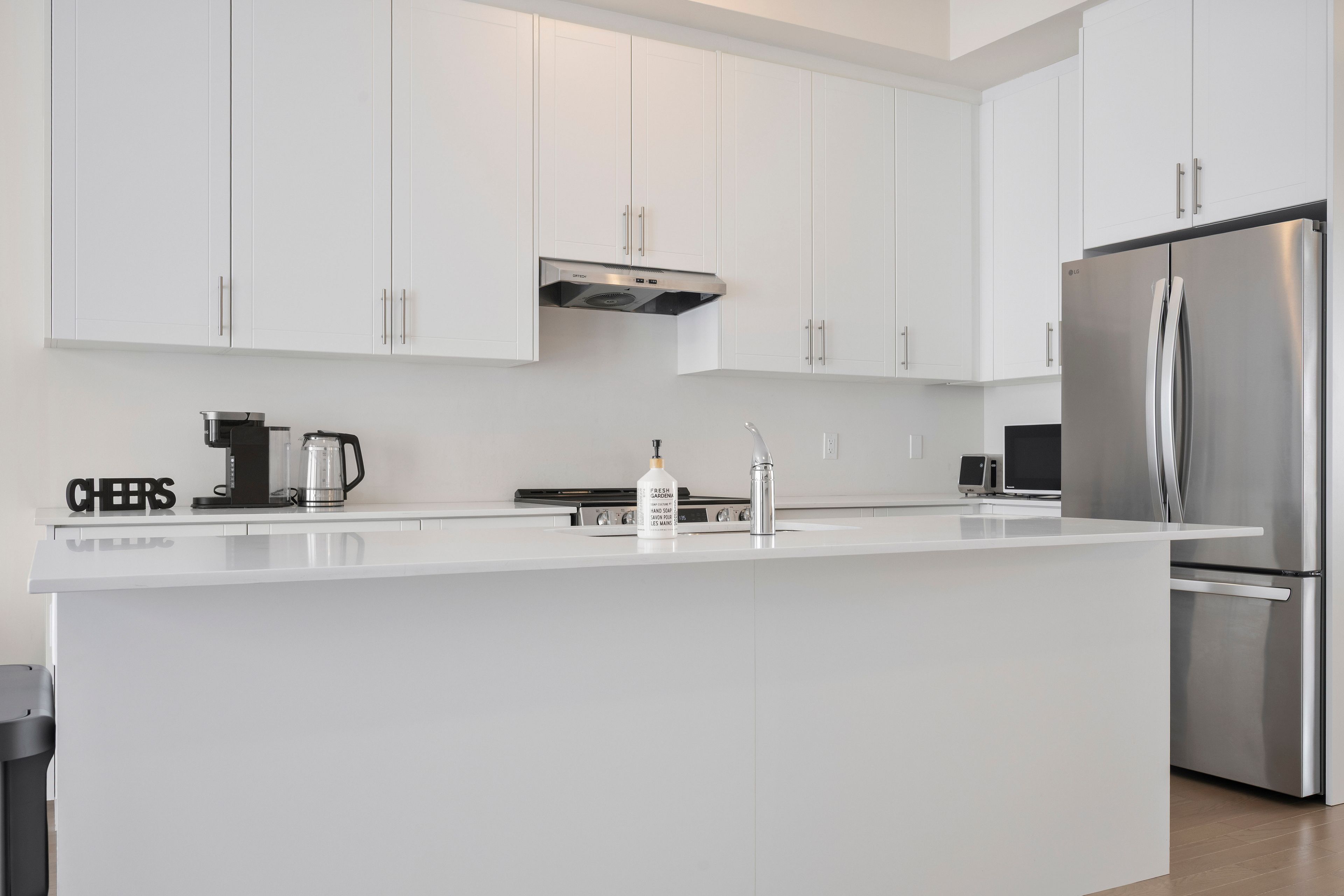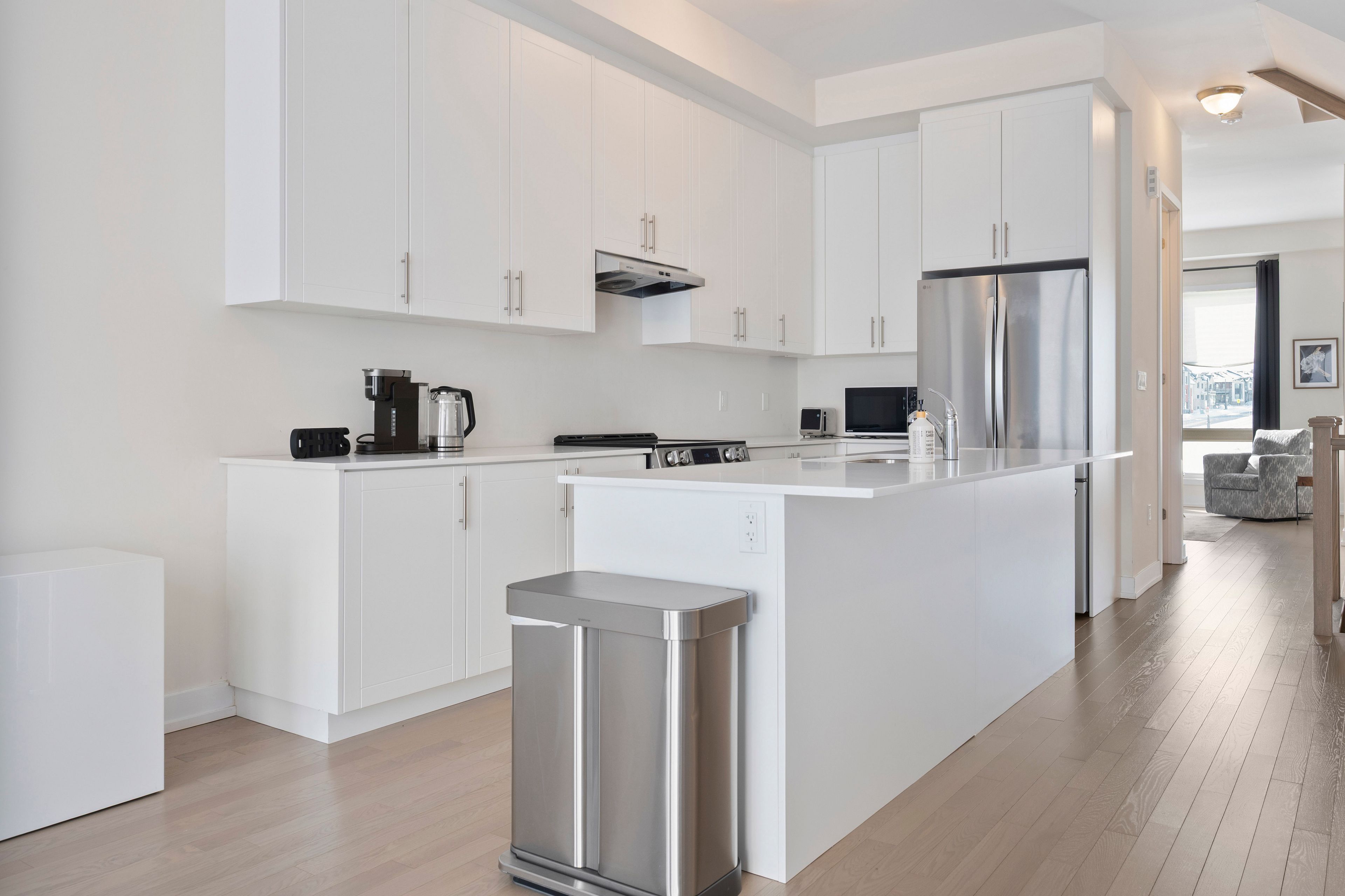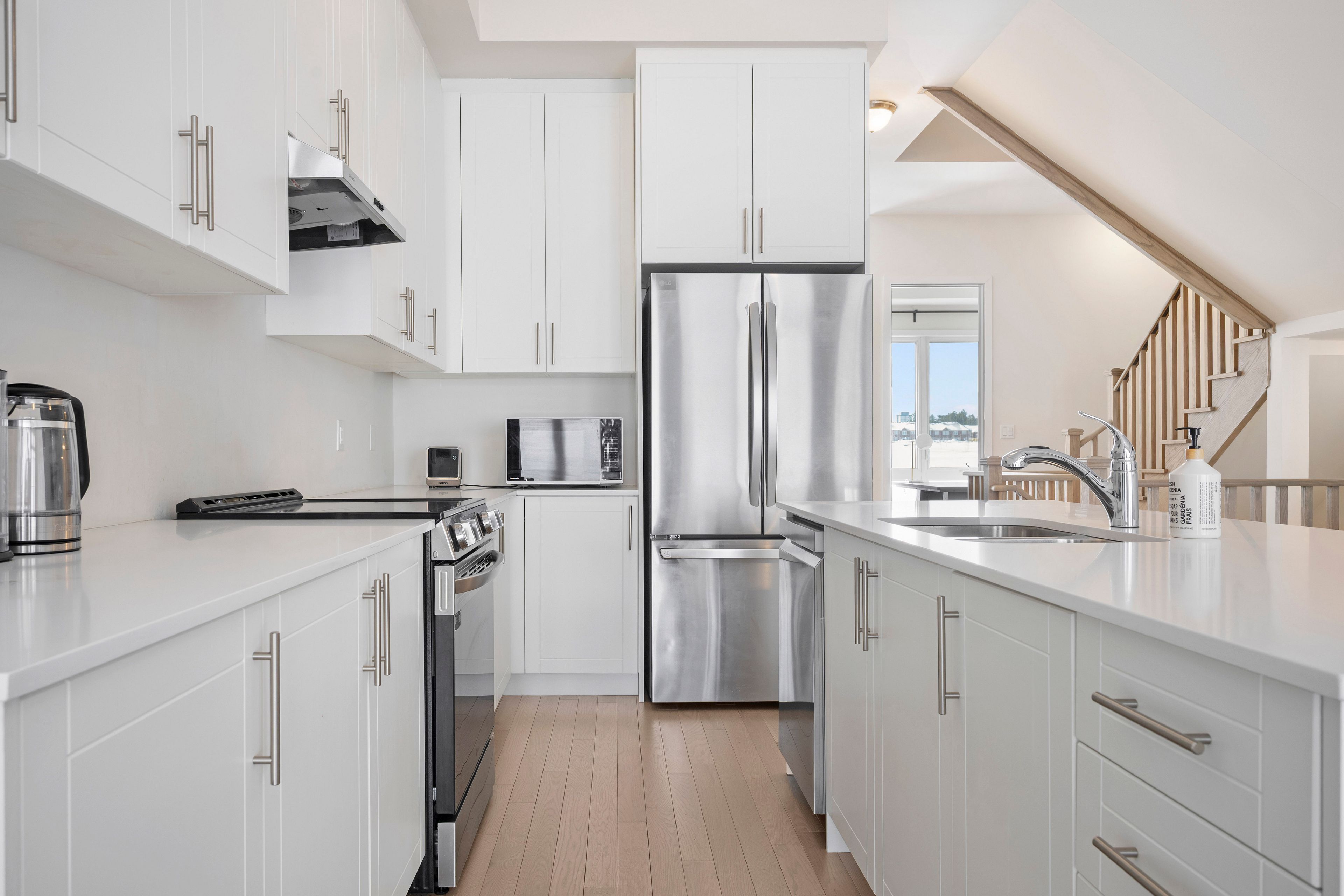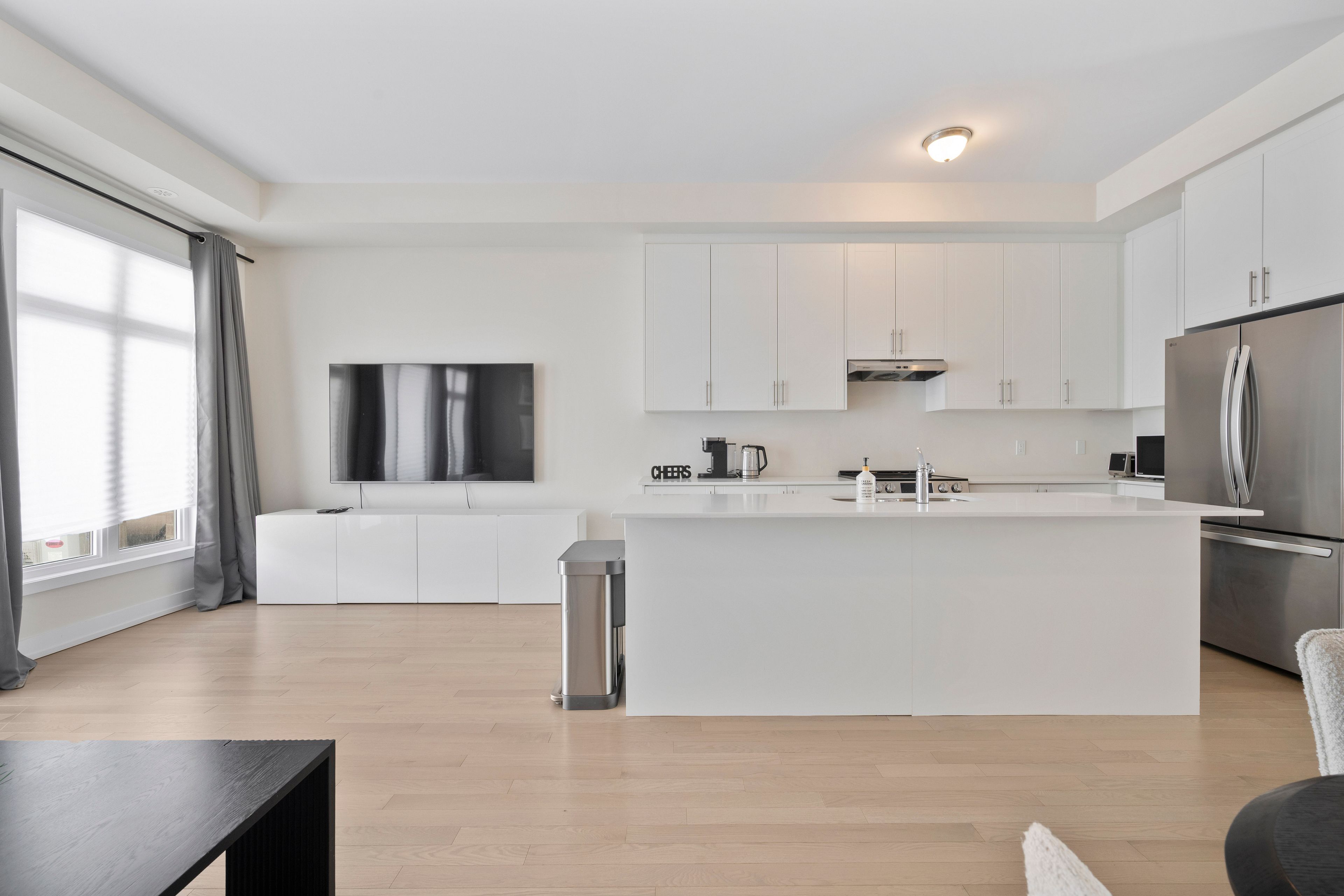 • Modern kitchen features stainless steel appliances and breakfast bar.