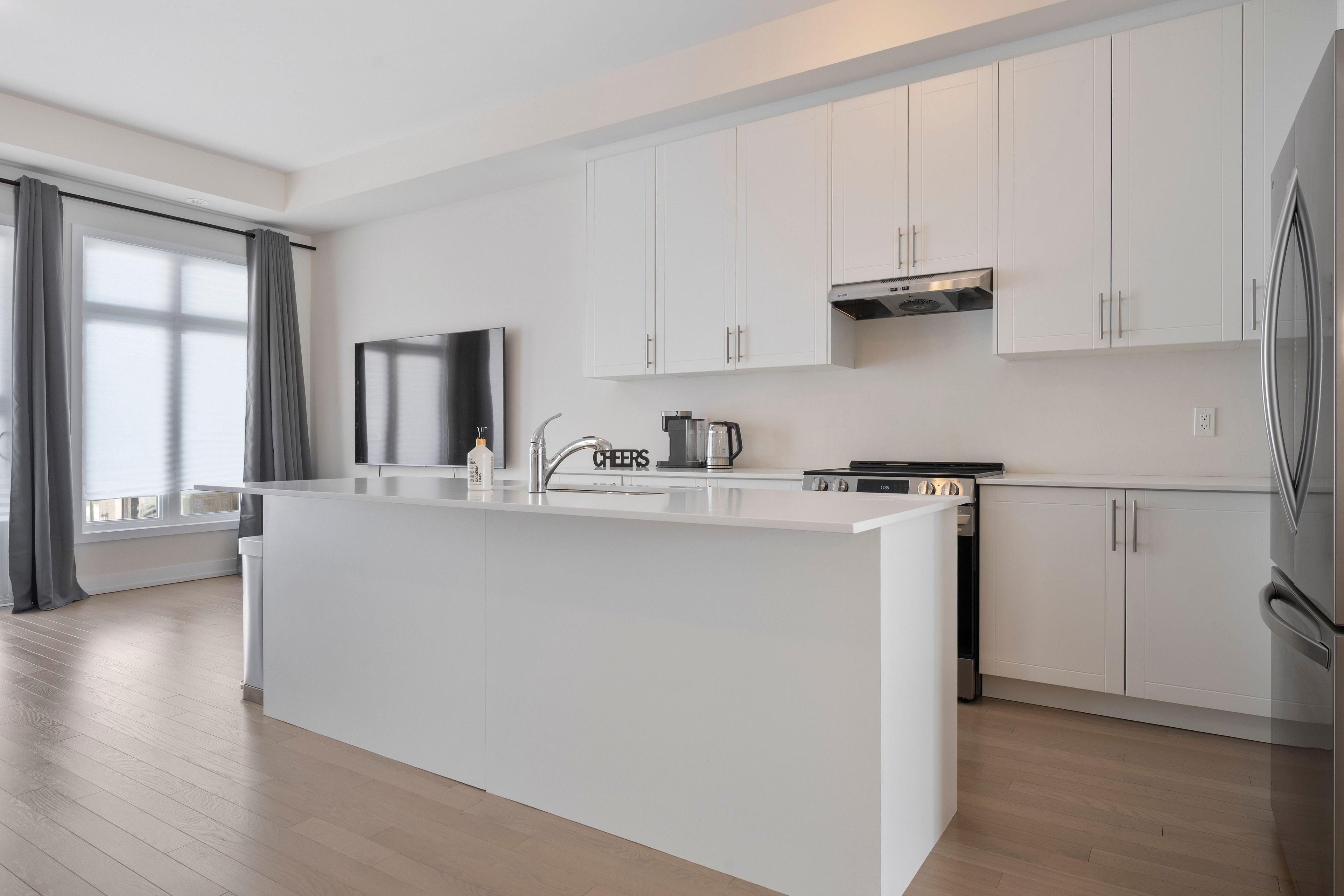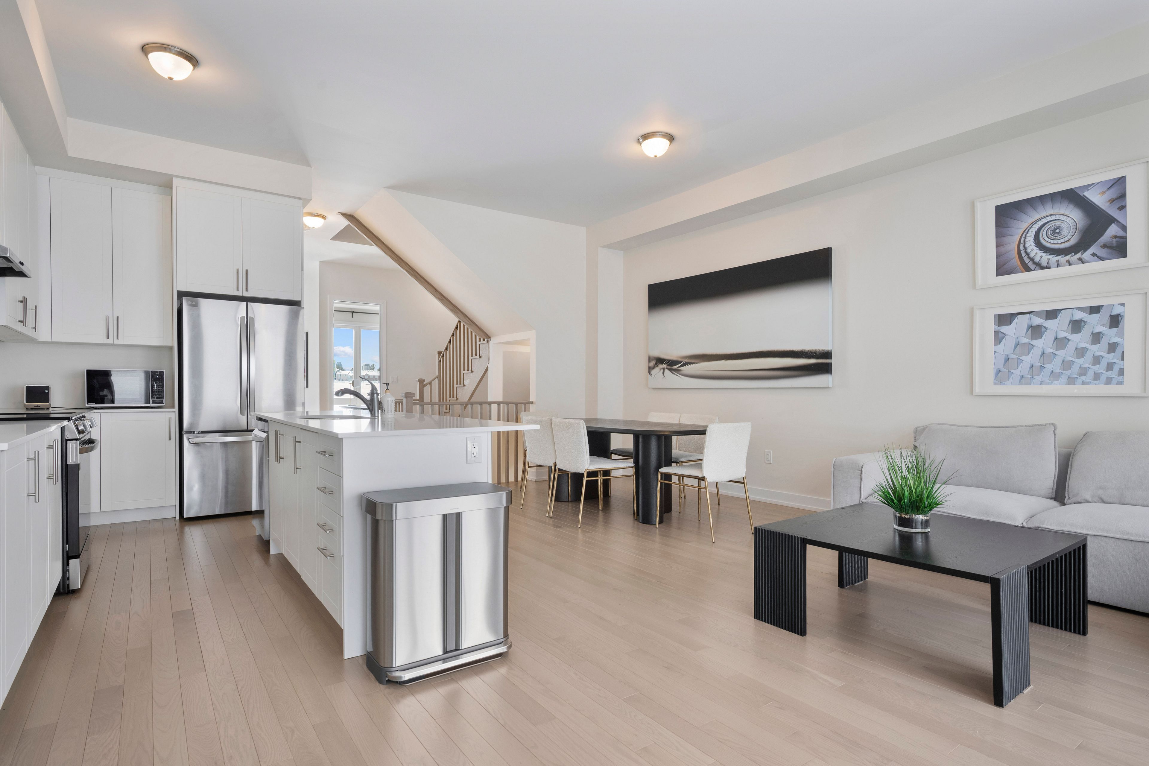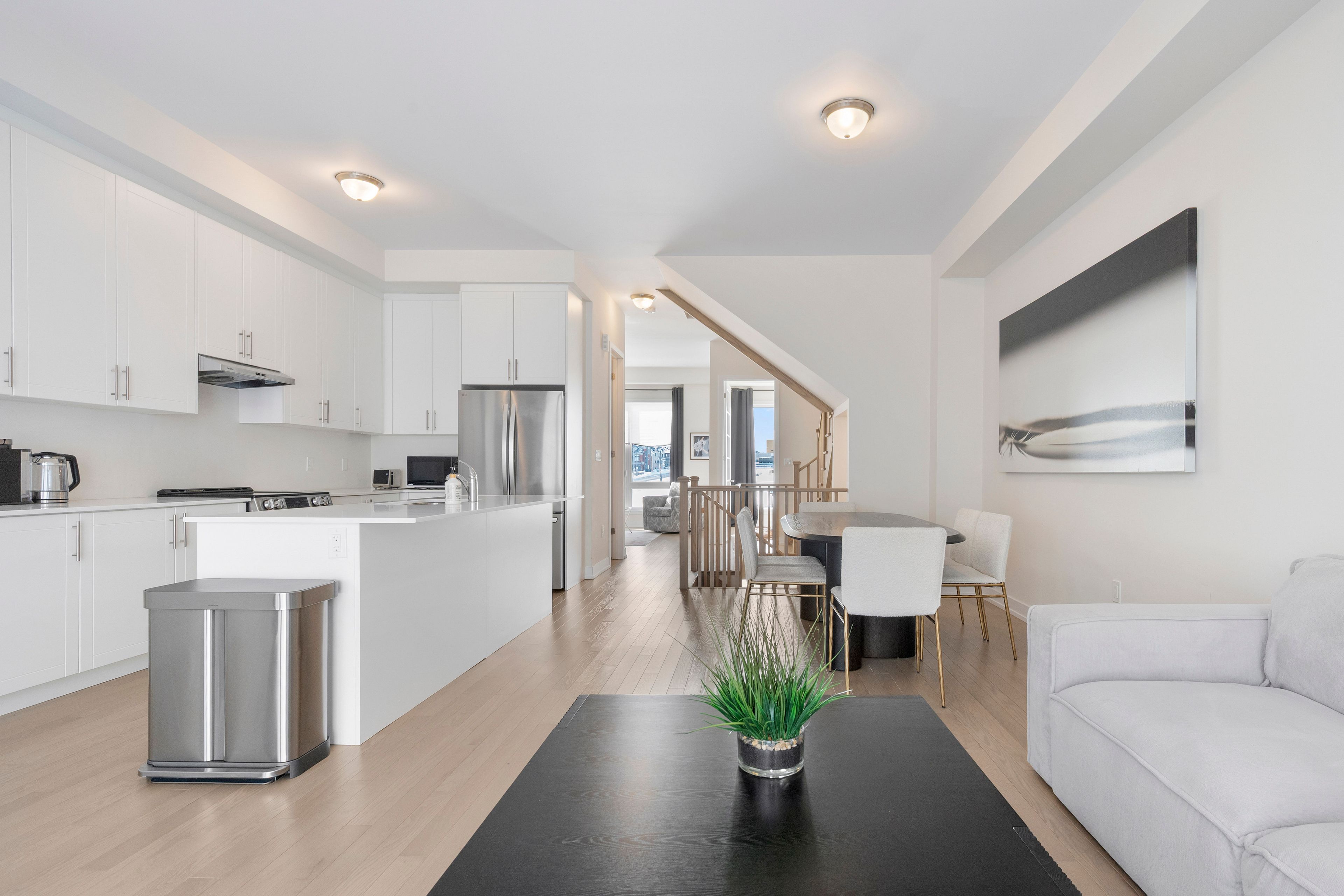 • Modern kitchen features stainless steel appliances and breakfast bar.