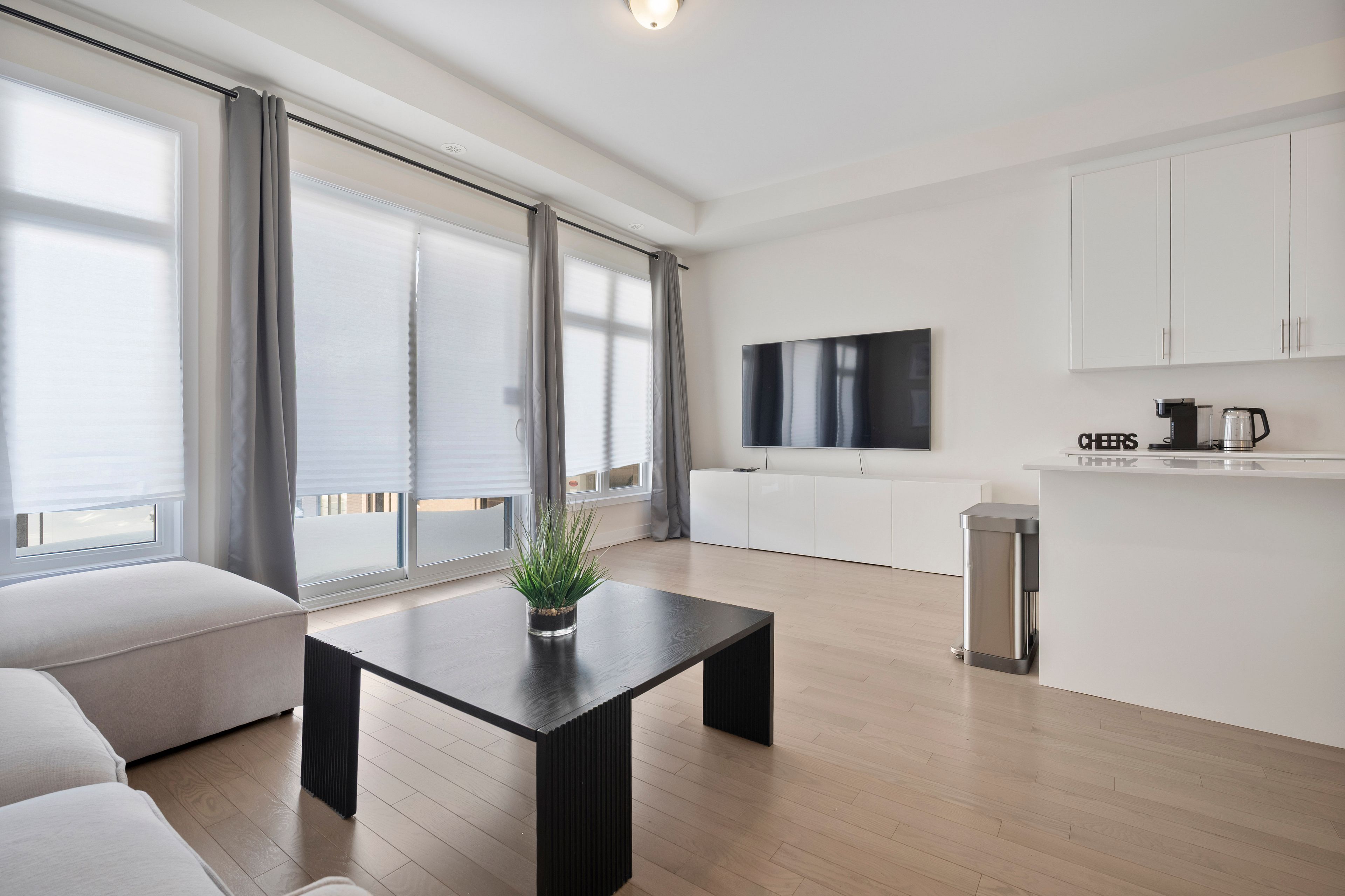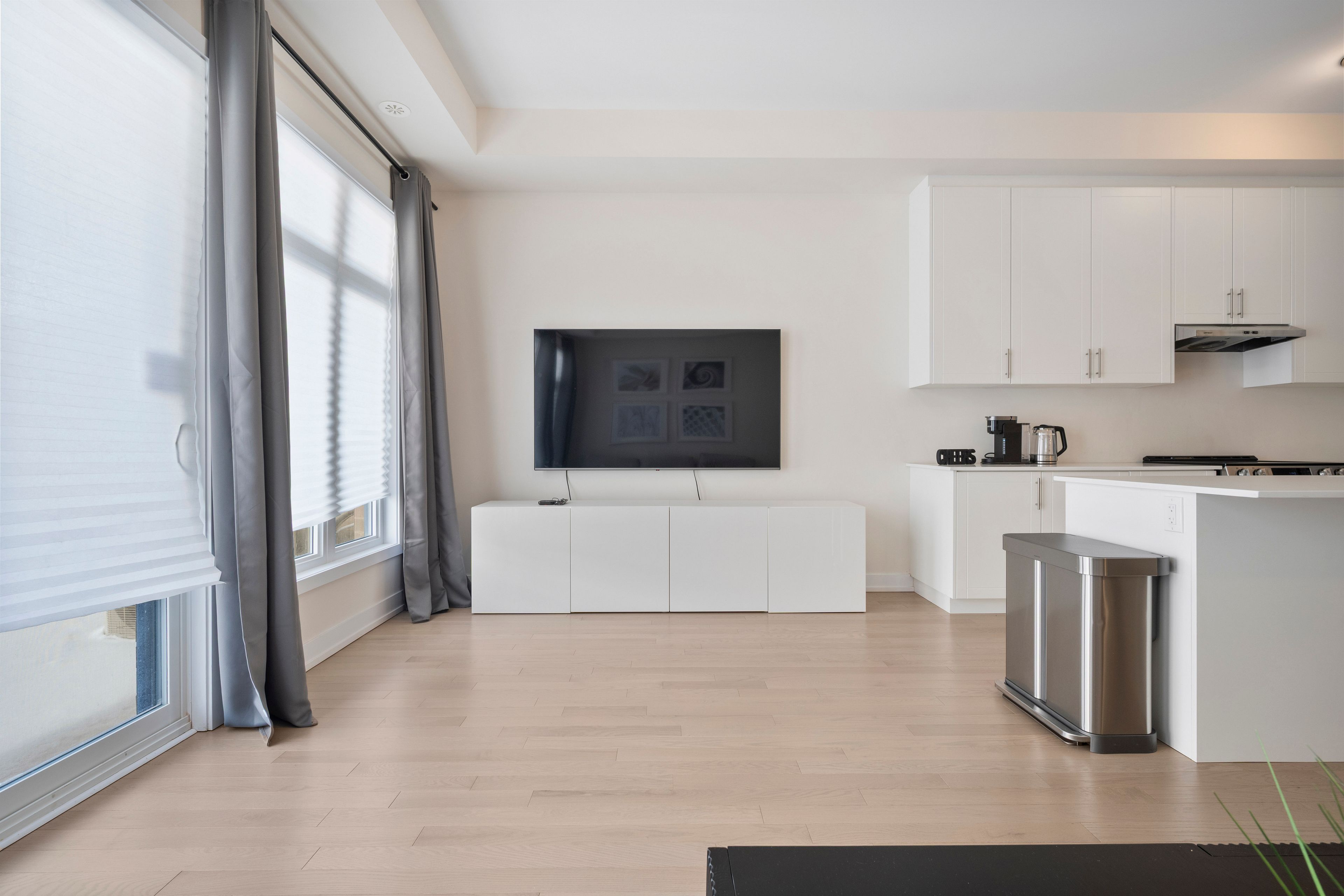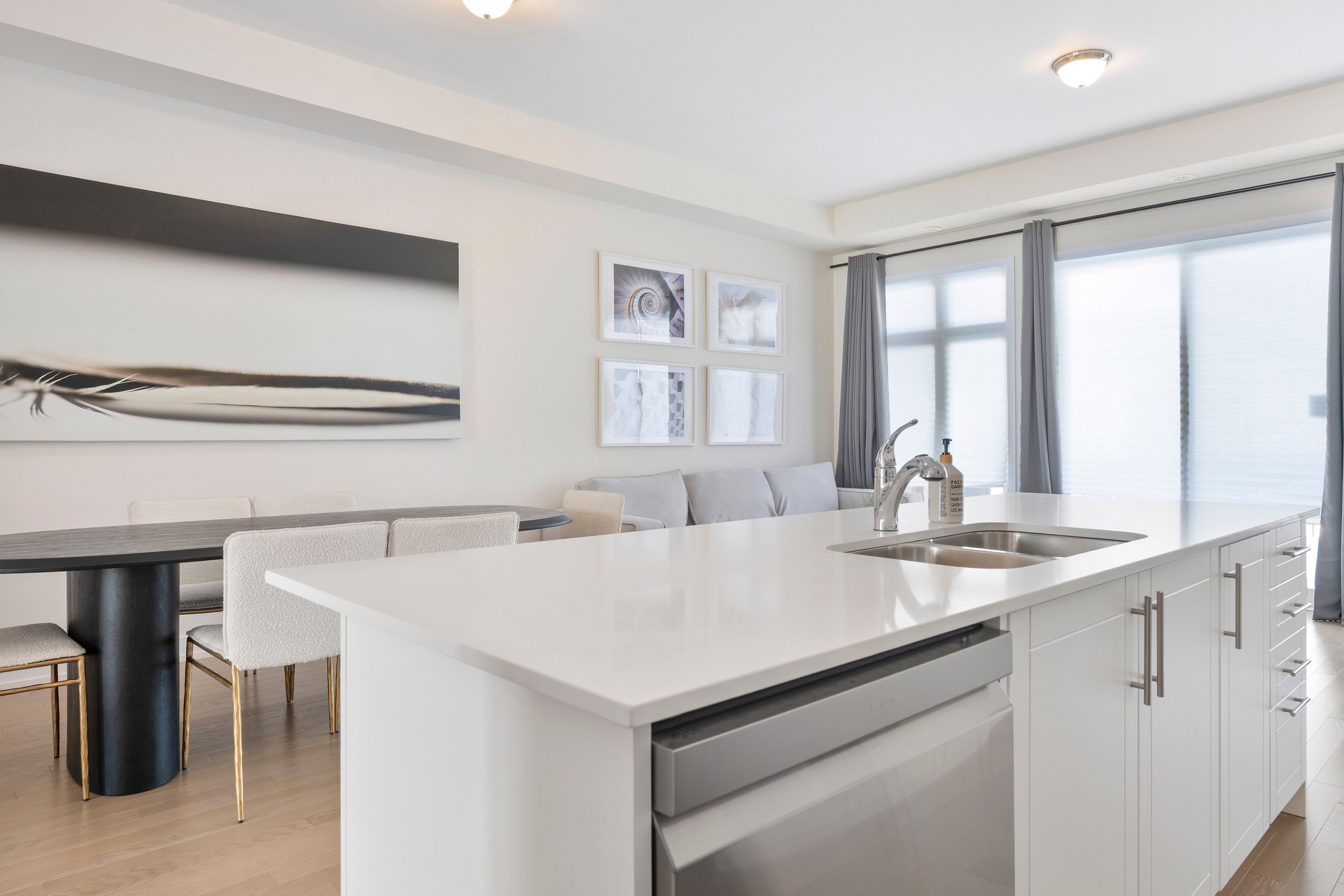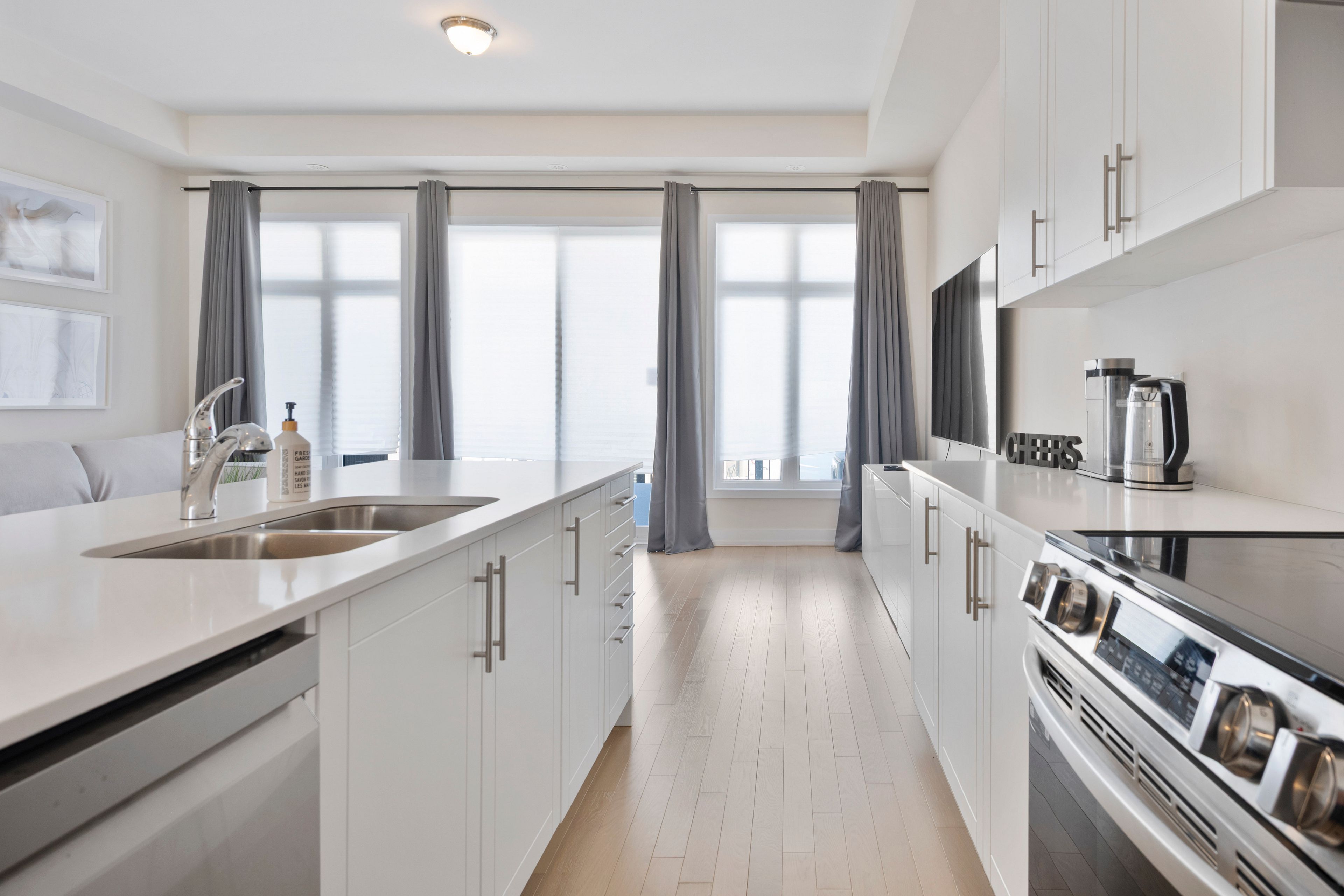 • Modern kitchen features stainless steel appliances and breakfast bar.