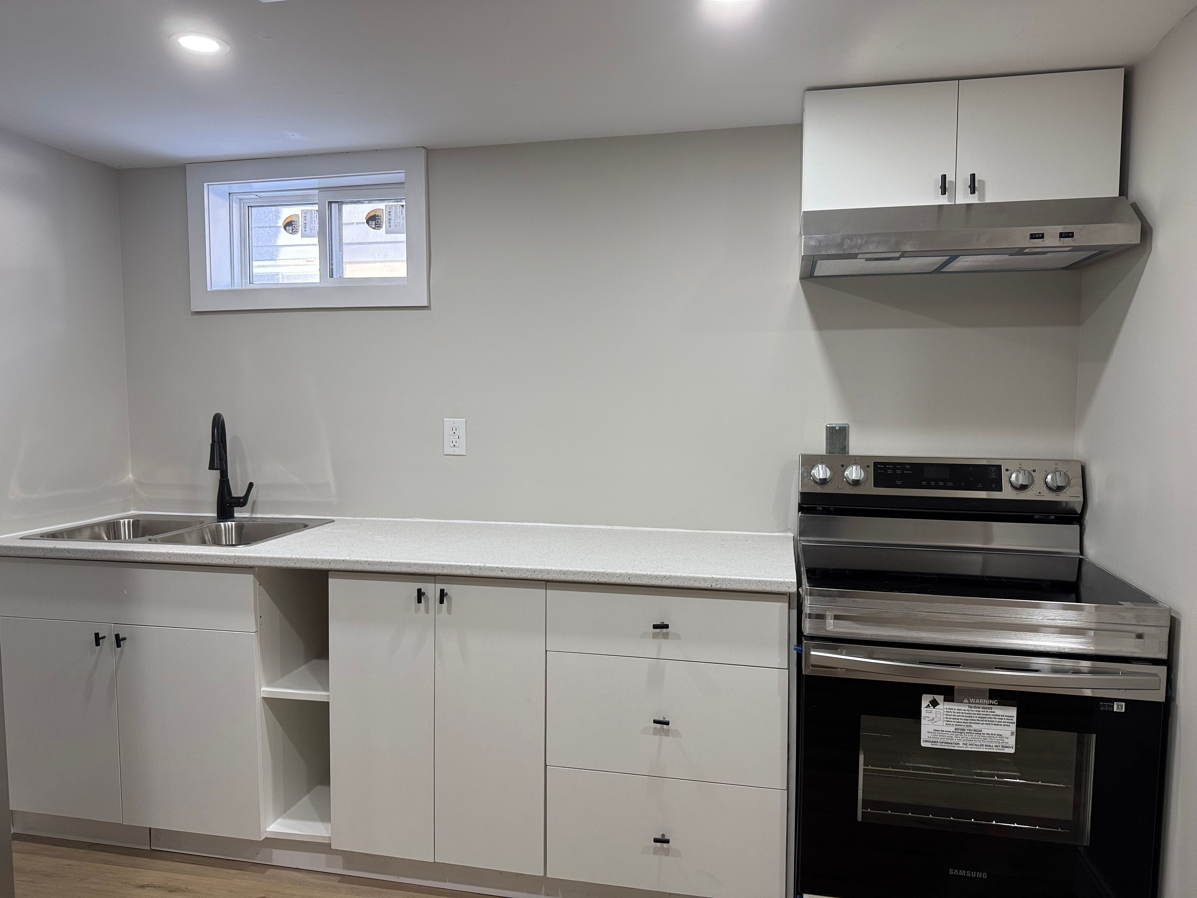 Brand new renovated basement apartment with two bedrooms and newly built washroom. The unit comes with separate entrance. Excellent location, within walking distance to shopping, schools, bus stops, and amenities, this cozy residence boasts an open-concept floor plan. The lovely kitchen features plenty of cabinet space, including a fridge, stove, washer and dryer. This home ensures a comfortable retreat, while the 3-piece bathroom and in-suite laundry contribute to the overall convenience. This clean and well-maintained home is ready for immediate occupancy. One car parking on the driveway. The rent includes all the utilities. Students are welcome.