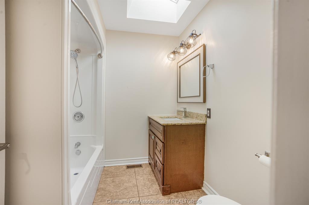 • Upper level has three bedrooms and a full bathroom for convenience.