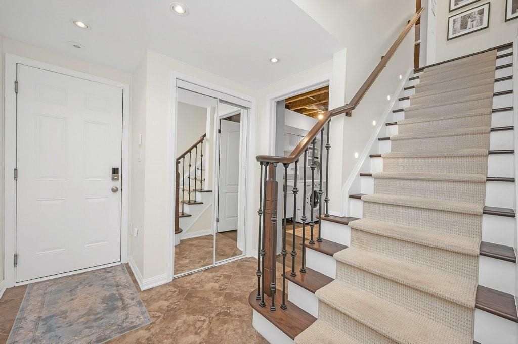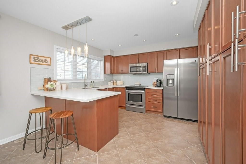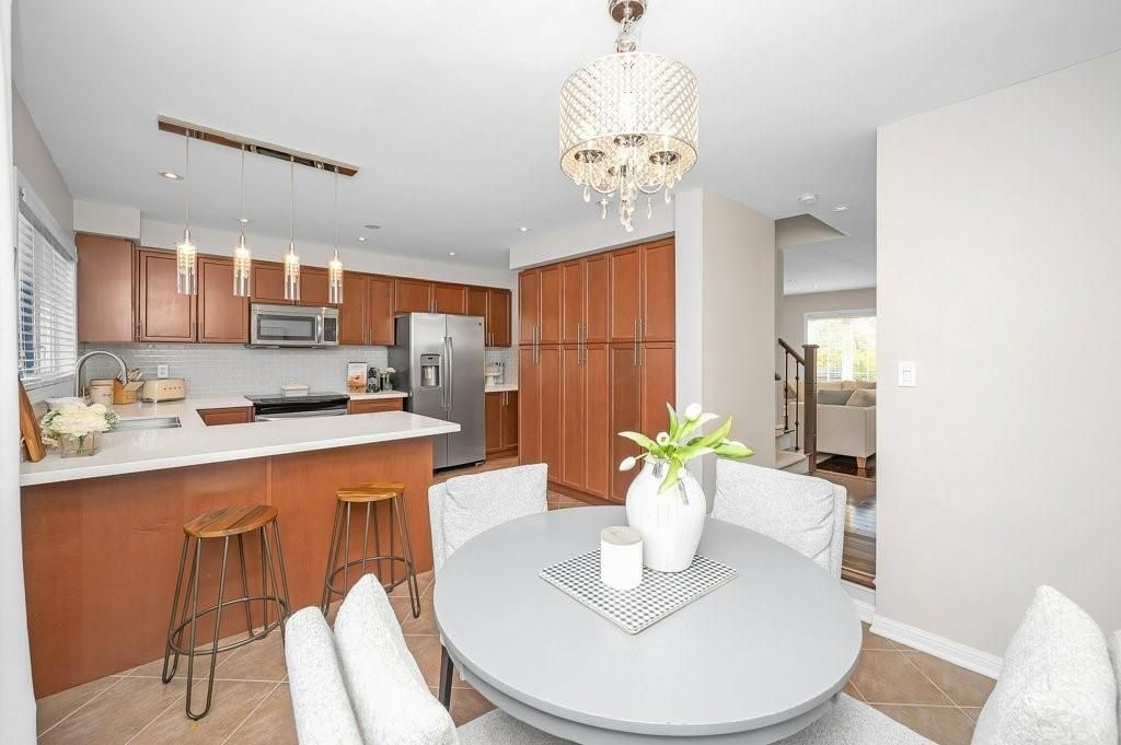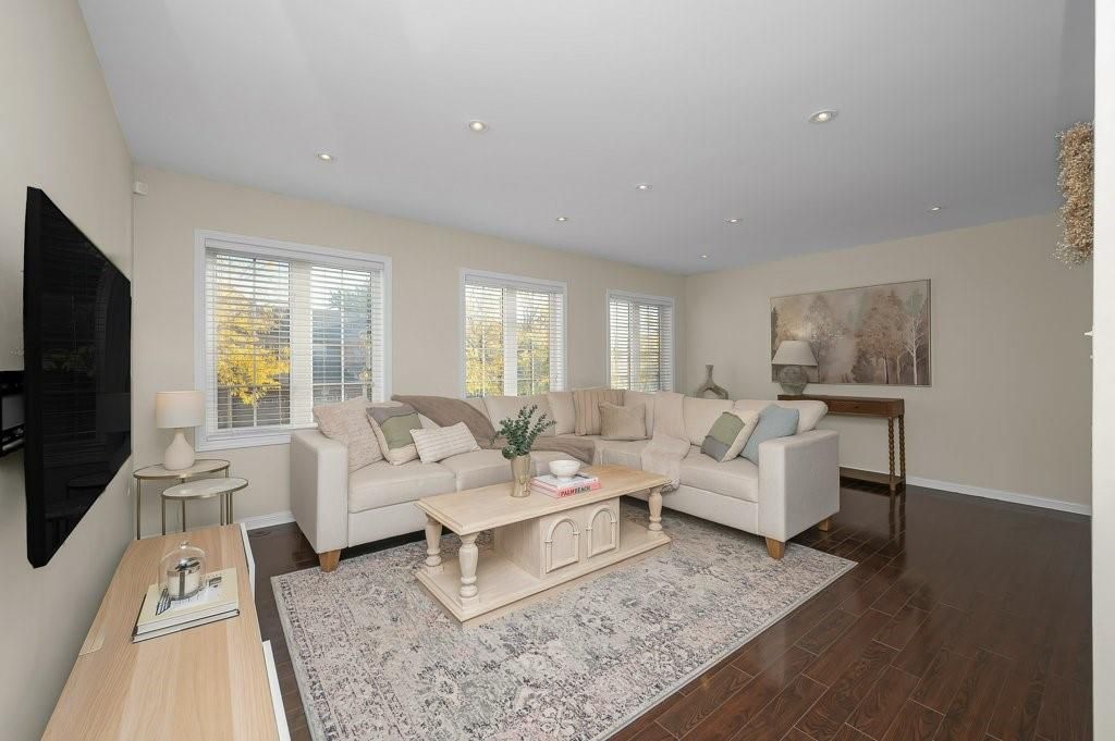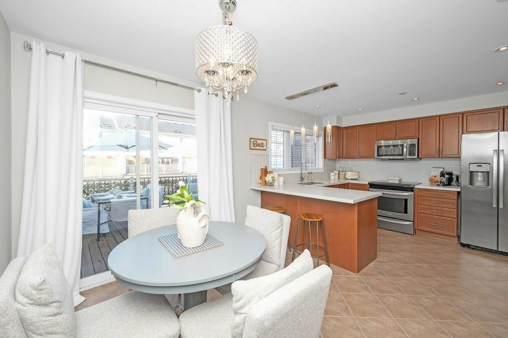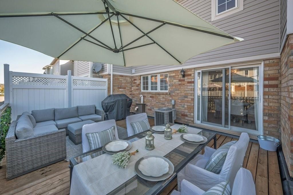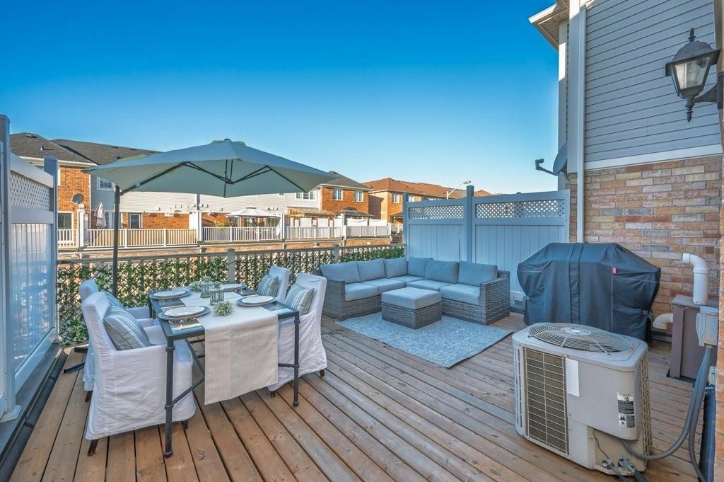Stylish move-in ready freehold townhome w/double garage steps to shops, cafés & everyday essentials. Thoughtfully upgraded with modern finishes and recent updates, pride of ownership shines from the moment you enter the spacious, welcoming foyer. Engineered hardwood floors, smooth ceilings, solid oak staircase w/tread lighting, pot lights, updated trim & fresh on-trend finishes throughout. Dream kitchen w/breakfast bar, quartz counters, s/s appliances, custom cabinets to ceiling height, large pantry, dining area & walk-out to an incredible 17' x 20' deck perfect for summer hangouts. Bright, open living room/great room with eng. Hardwood, pot lights & oversized windows creates the ideal space for hosting friends. Private primary suite offers a spacious 4 pc ensuite w/soaker tub and walk-in closet. Beautifully refreshed in 2025, the 2nd bedroom features stylish wainscoting, wallpaper & designer lighting, plus access to a sleek 4pc main bath with built-in vanity. Large, sun-filled main floor family room off the foyer offers bright flex space: home office, guest room, gym & more! Main floor laundry with new side by side washer, dryer & laundry sink. Huge double car garage w/inside entry. Key updates include roof '21, garage door '21, deck '23, smooth ceilings '21, carpet, paint, trim & more!! Walk to farm boy, starbucks & shoppers drug mart plaza, parks, restaurants & well ranked schools, with quick hwy 407 access for an easy commute. Only 10 min. To appleby go & qew. Only 15 min. To the lakefront or bruce trail hiking. The perfect move-in ready home to start your next chapter!