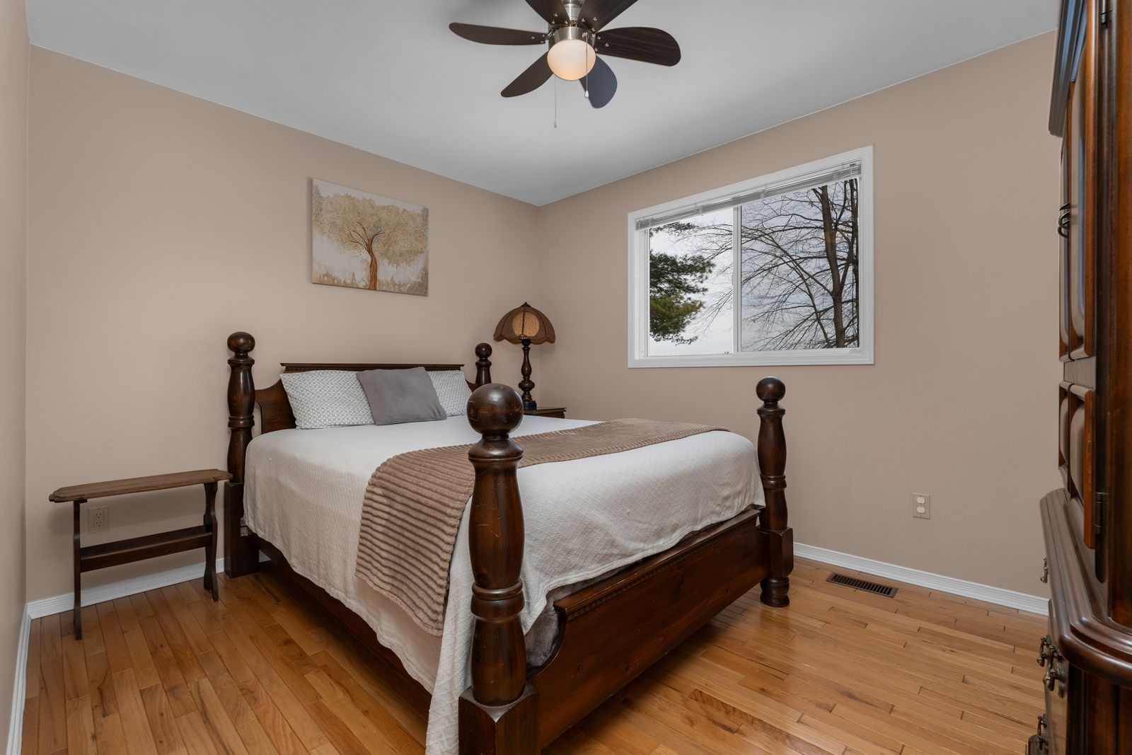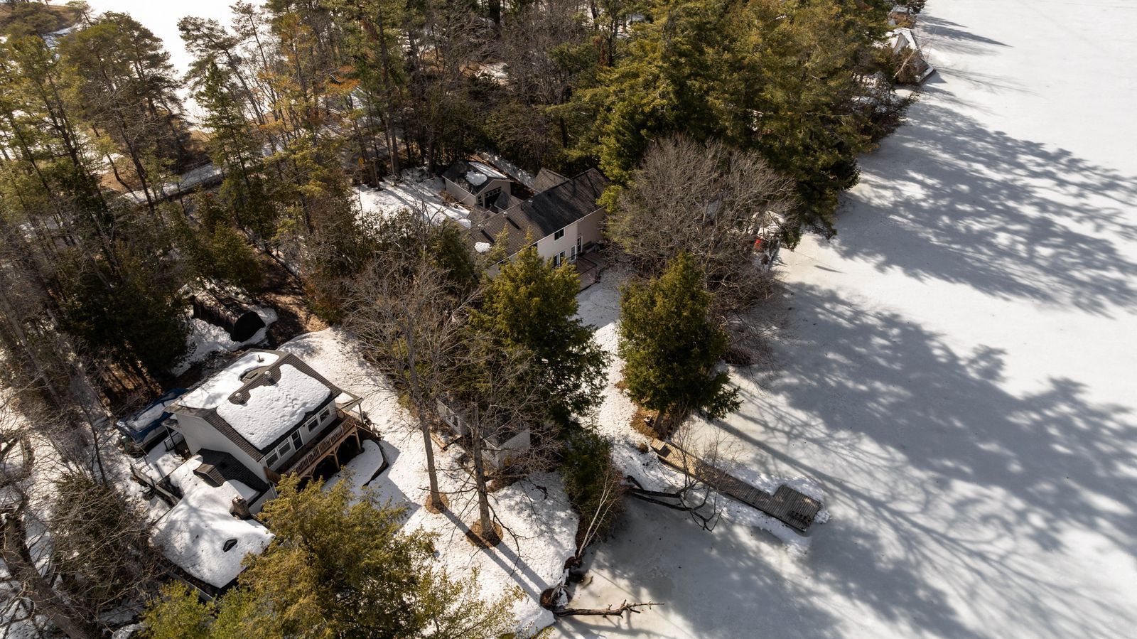 Lakefront living with 109 ft of sandy shoreline, 2 garages, & over 2,150 sq ft above grade! Set on 109 feet of sandy waterfront along lake st. George, this 2-storey family home places the lake at the centre of daily life, with a private dock, open water views, and a generous back deck positioned to take it all in. Set back from the road and framed by mature trees, the home is introduced by dormer windows, shutters, a covered front entry, and a flagstone walkway, while the detached garage, along with an attached 2-car garage with a loft space above, adds useful extra room for storage, hobbies, or a workshop. More than 2,150 square feet above grade gives the interior a substantial feel, with hardwood flooring, a bright kitchen finished with generous wood cabinetry, pantry cabinets, a breakfast area, ample prep space, and a garden door walkout, while the dining room brings added character with a stone-surround fireplace and its own walkout. Separate living and family rooms allow the home to stretch out naturally, the main floor laundry is right where it should be, and the upper level offers three bedrooms, including a primary with a walk-in closet and private 4-piece ensuite. A heat pump installed in 2022 and a furnace replaced in 2025 add meaningful value. Lake st. George golf club, a 27-hole course, sits directly across the road, while washago and orillia are just 5 and 10 minutes away for shopping, dining, services, and essentials. What stays with you isn't just the view, but how the lake quietly pulls you outside and slows the pace, giving the entire property a sense of escape that's hard to replicate.