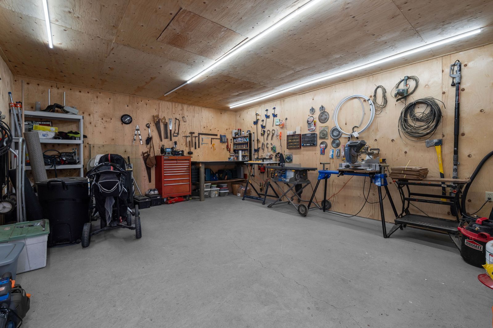 • Two garages provide ample storage and workspace options.