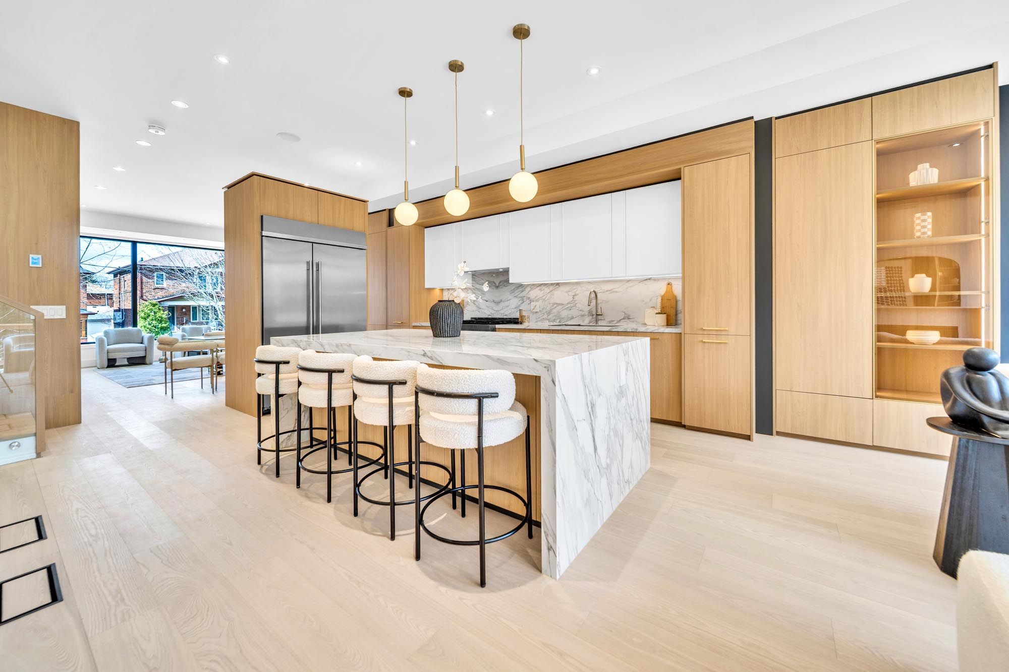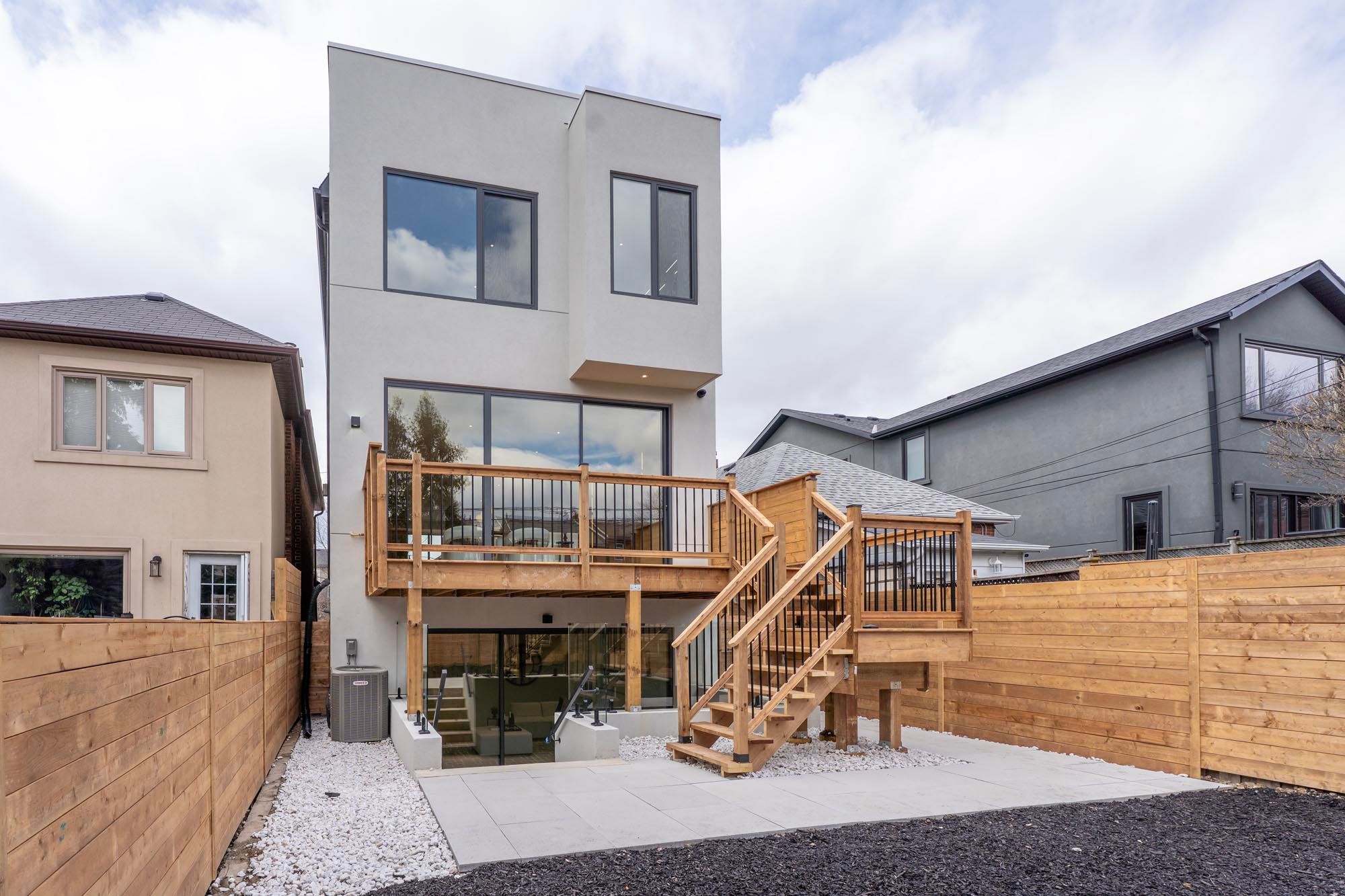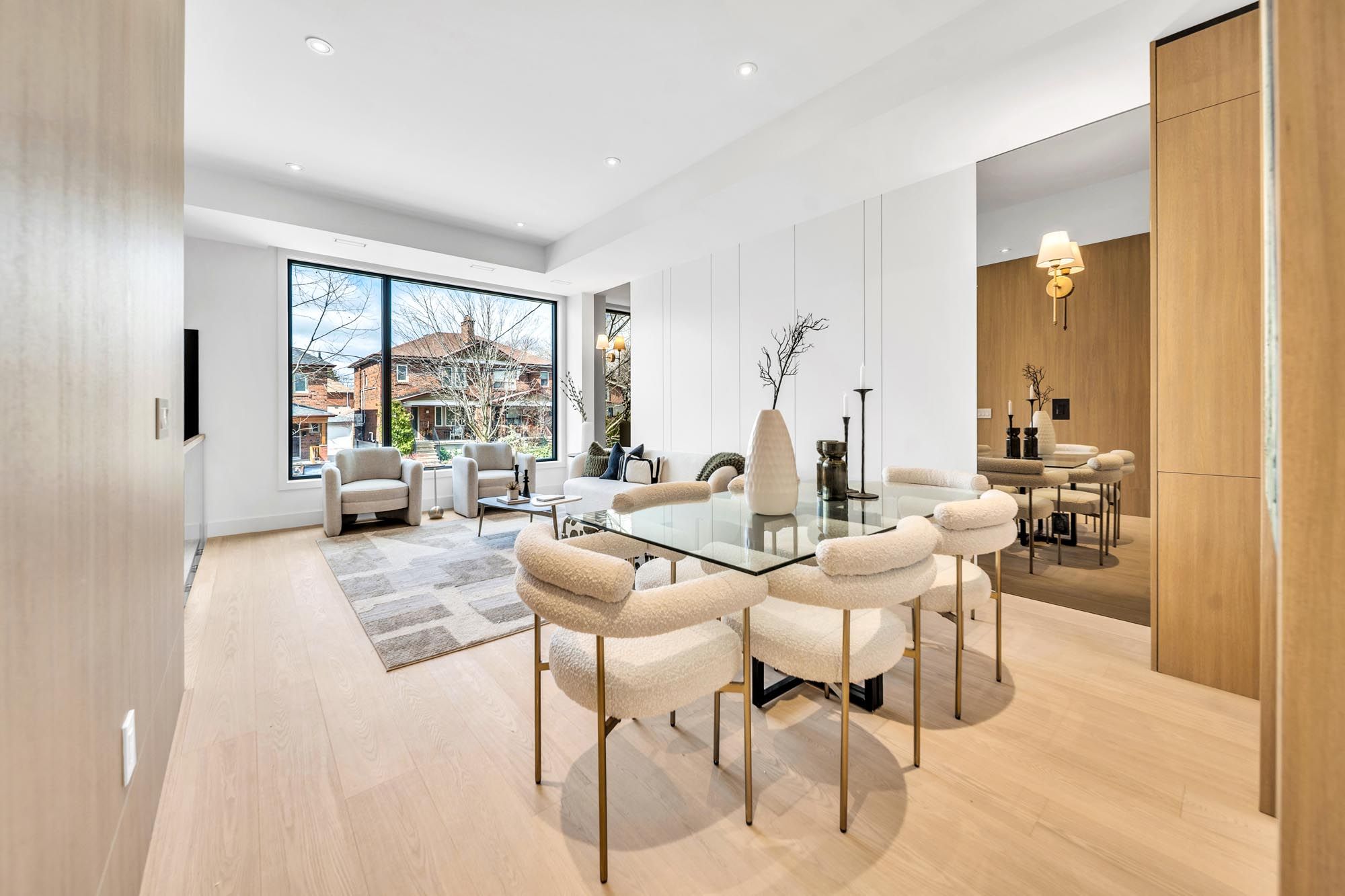 Brand new custom residence in the heart of humewood-cedarvale, where modern design meets exceptional craftsmanship across approximately 3,000 sq. Ft. Of thoughtfully curated living space. The home's clean architectural lines and aluminum windows set the tone for what's inside, an interior defined by sophisticated finishes, functional design, and seamless flow. Step into a light-filled main level featuring floor to ceiling windows, soaring ceilings, wide-plank white oak hardwood floors, and striking custom millwork that carries throughout the entire home. Living and dining room with elegant panelled walls and a bronze mirrors, while the family room offers a warm and inviting setting with a gas fireplace framed by bespoke built-ins and shelving. The chef's kitchen is designed to impress, showcasing an oversized centre island, premium appliances w/ 48-inch refrigerator & 36-inch stove, and abundant storage integrated into custom cabinetry. A large sliding door extends the living space outdoors to a private deck and fully fenced backyard-perfect for entertaining or quiet everyday living. The primary suite offers a serene retreat with a spacious walk-in closet and a beautifully appointed ensuite featuring italian slab finishes. Three additional bedrooms w/ generous size, each with ample closet space, along with a convenient second-floor laundry room, complete this level with both comfort and practicality in mind. The lower level is designed for versatility with a generous recreation area ideal for entertaining, a playroom, or media space, along with an additional bedroom. Direct access from the garage leads into a functional mudroom, adding everyday convenience to this well-designed home. Ideally located just steps to cedarvale park, top-rated schools, transit, lrt, and the vibrant shops and restaurants along st. Clair west, this turnkey residence offers a rare opportunity to own a brand new, design-forward home in one of toronto's most sought-after neighbourhoods.