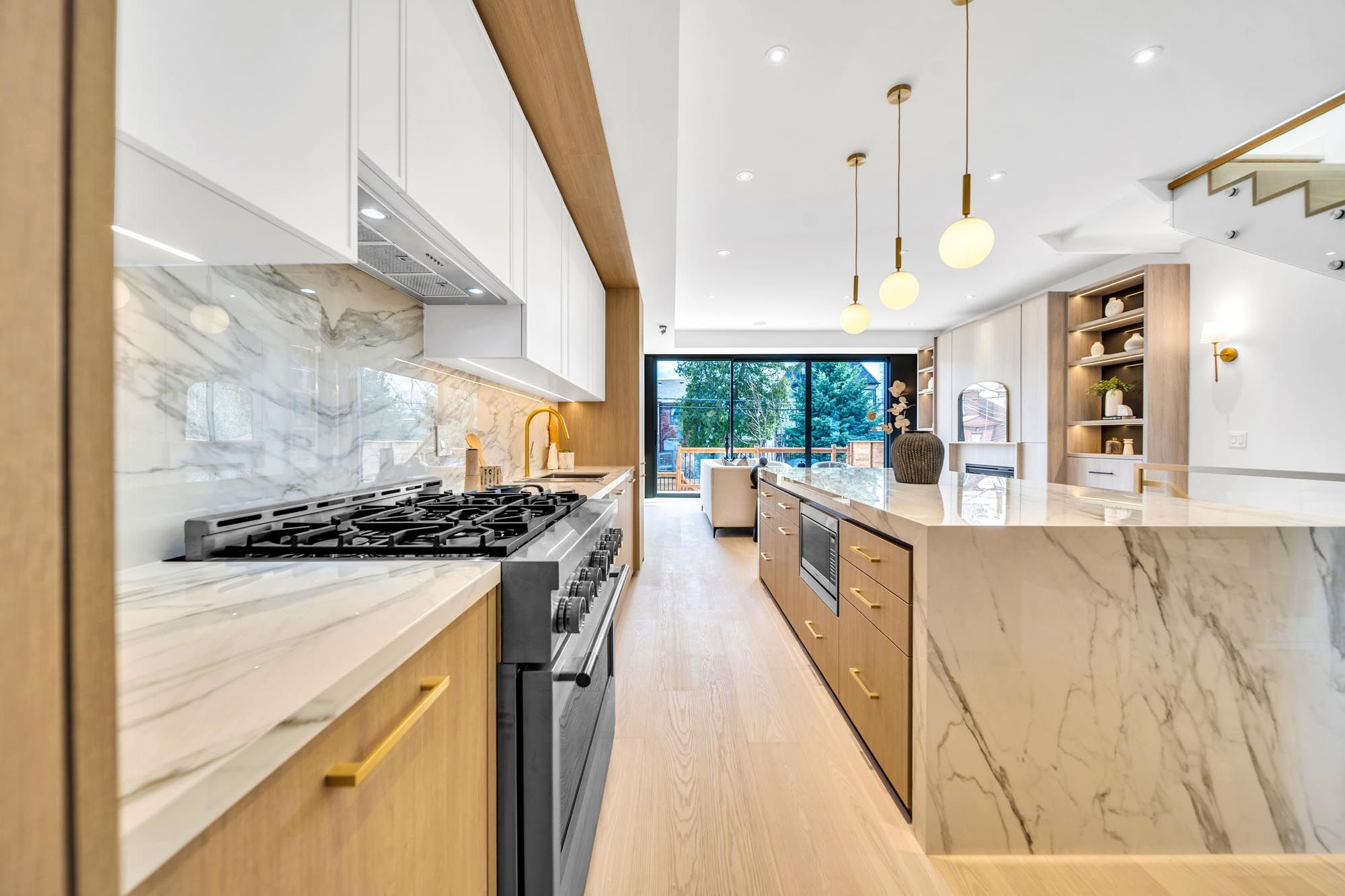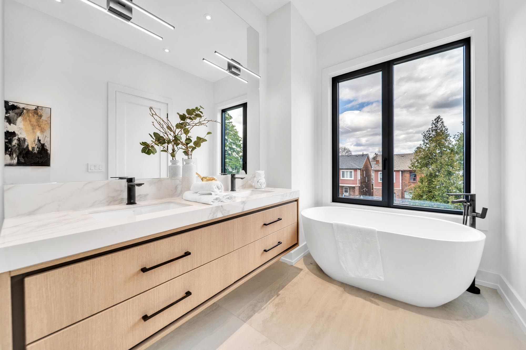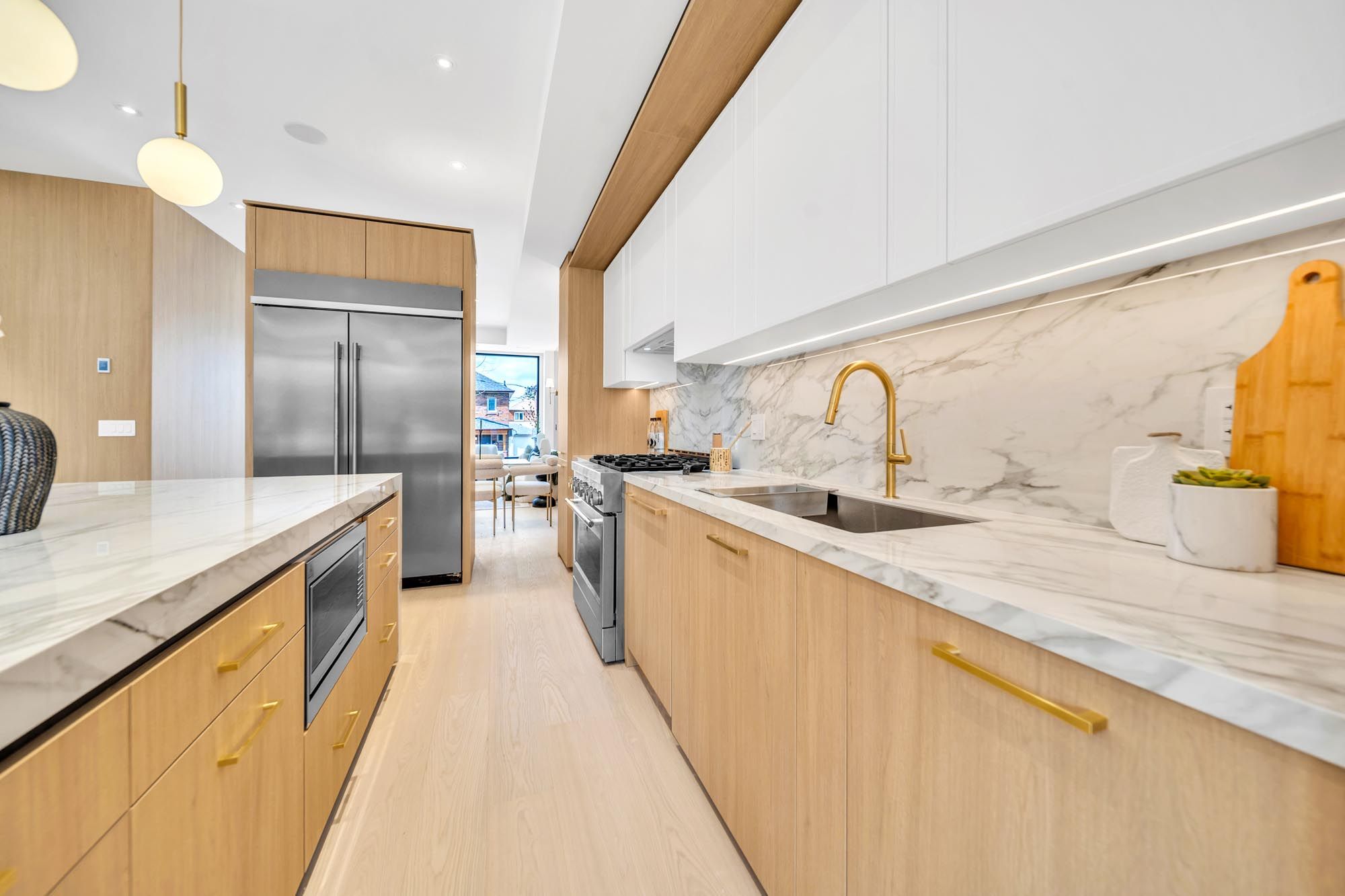 Brand new custom residence in the heart of humewood-cedarvale, where modern design meets exceptional craftsmanship across approximately 3,000 sq. Ft. Of thoughtfully curated living space. The home's clean architectural lines and aluminum windows set the tone for what's inside, an interior defined by sophisticated finishes, functional design, and seamless flow. Step into a light-filled main level featuring floor to ceiling windows, soaring ceilings, wide-plank white oak hardwood floors, and striking custom millwork that carries throughout the entire home. Living and dining room with elegant panelled walls and a bronze mirrors, while the family room offers a warm and inviting setting with a gas fireplace framed by bespoke built-ins and shelving. The chef's kitchen is designed to impress, showcasing an oversized centre island, premium appliances w/ 48-inch refrigerator & 36-inch stove, and abundant storage integrated into custom cabinetry. A large sliding door extends the living space outdoors to a private deck and fully fenced backyard-perfect for entertaining or quiet everyday living. The primary suite offers a serene retreat with a spacious walk-in closet and a beautifully appointed ensuite featuring italian slab finishes. Three additional bedrooms w/ generous size, each with ample closet space, along with a convenient second-floor laundry room, complete this level with both comfort and practicality in mind. The lower level is designed for versatility with a generous recreation area ideal for entertaining, a playroom, or media space, along with an additional bedroom. Direct access from the garage leads into a functional mudroom, adding everyday convenience to this well-designed home. Ideally located just steps to cedarvale park, top-rated schools, transit, lrt, and the vibrant shops and restaurants along st. Clair west, this turnkey residence offers a rare opportunity to own a brand new, design-forward home in one of toronto's most sought-after neighbourhoods.