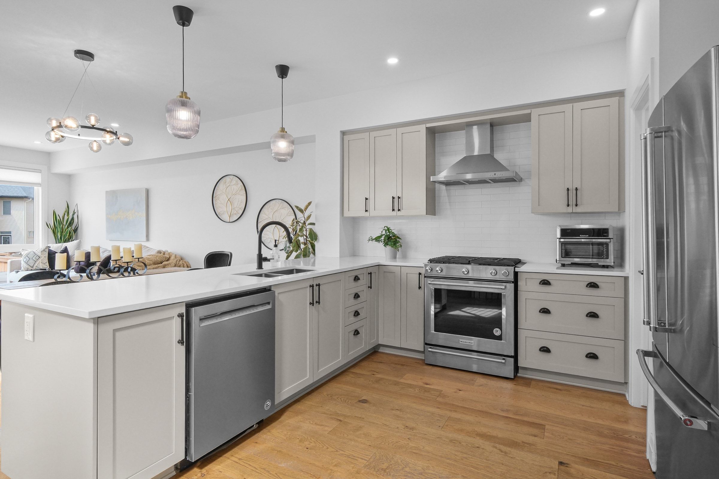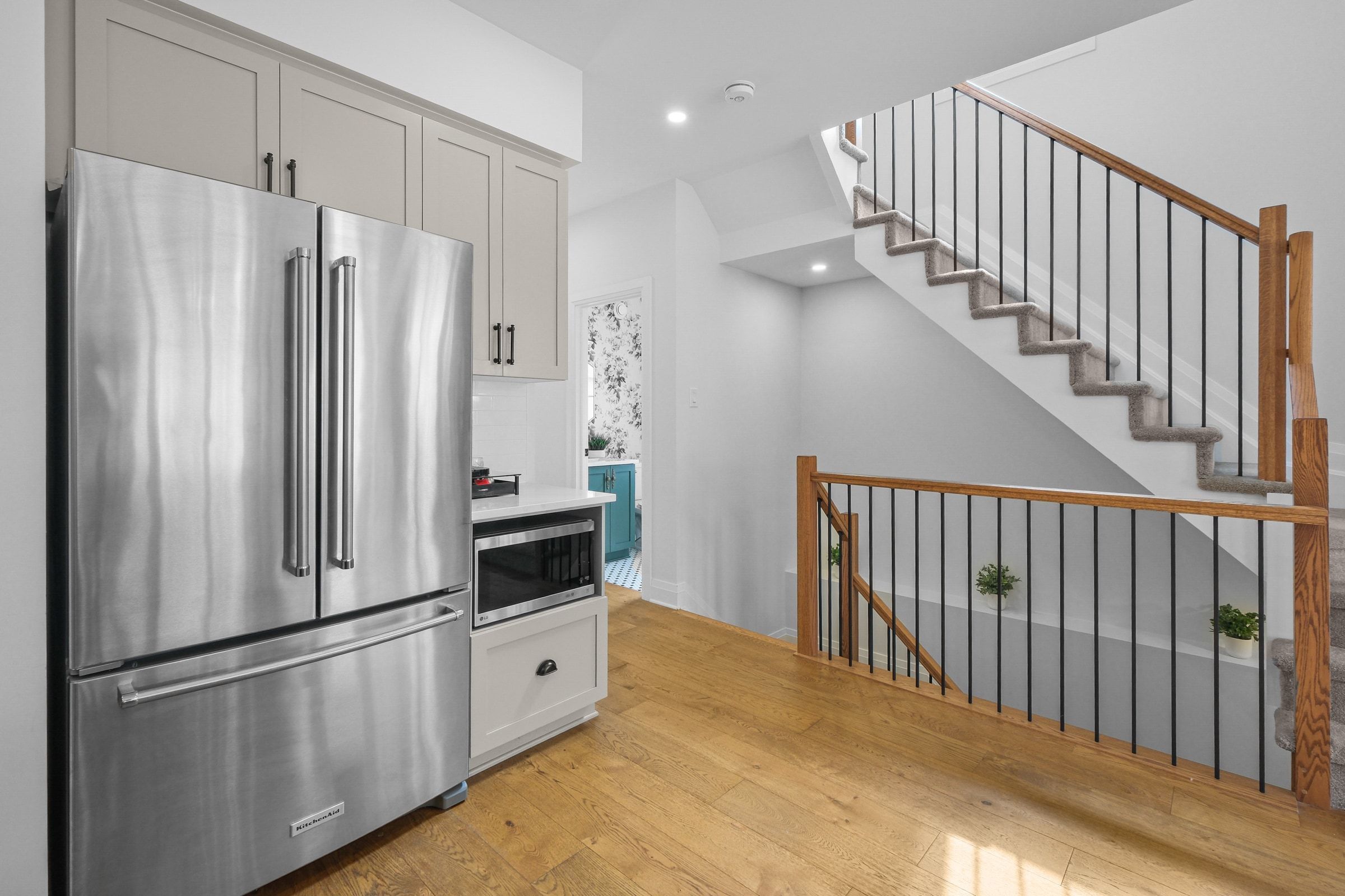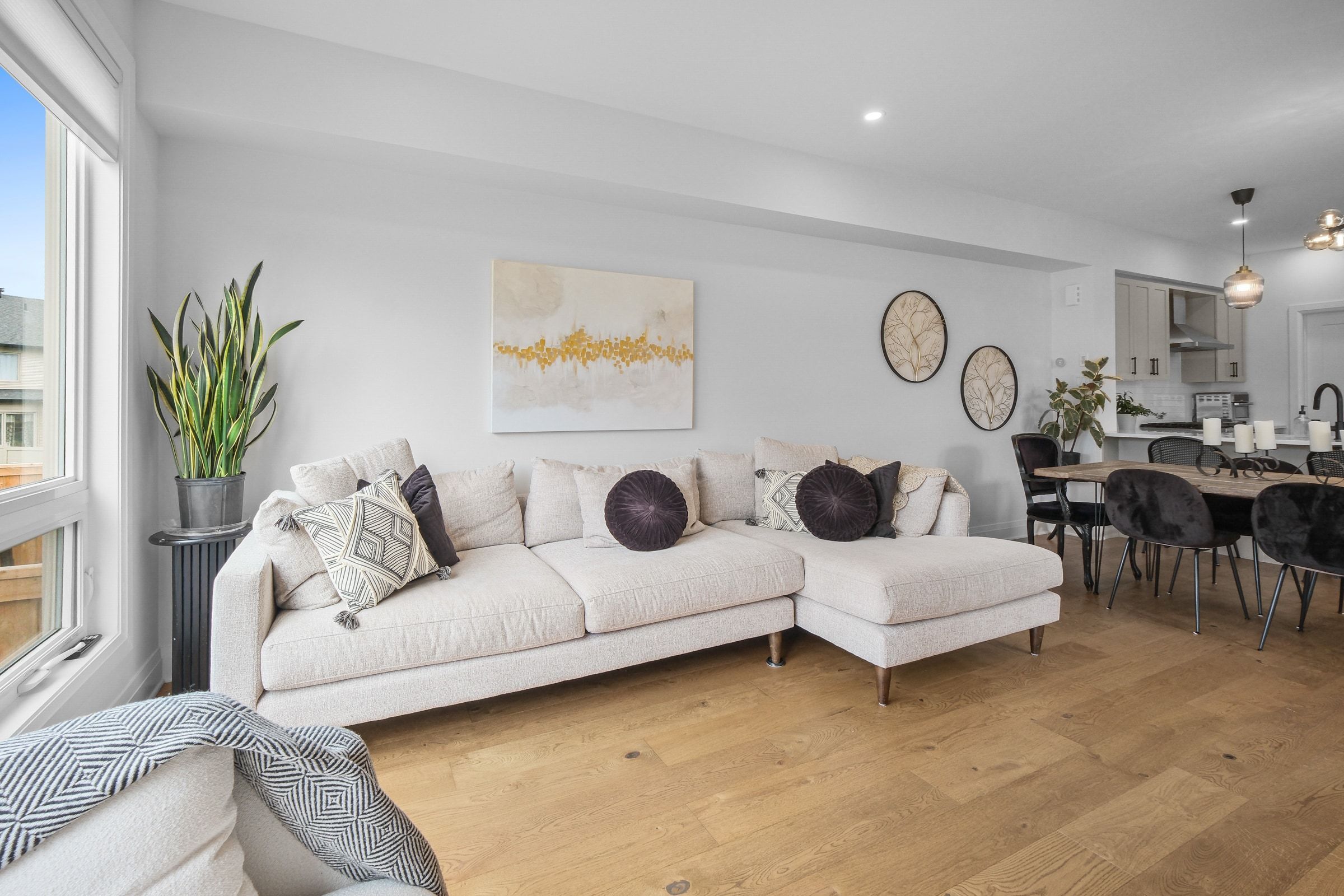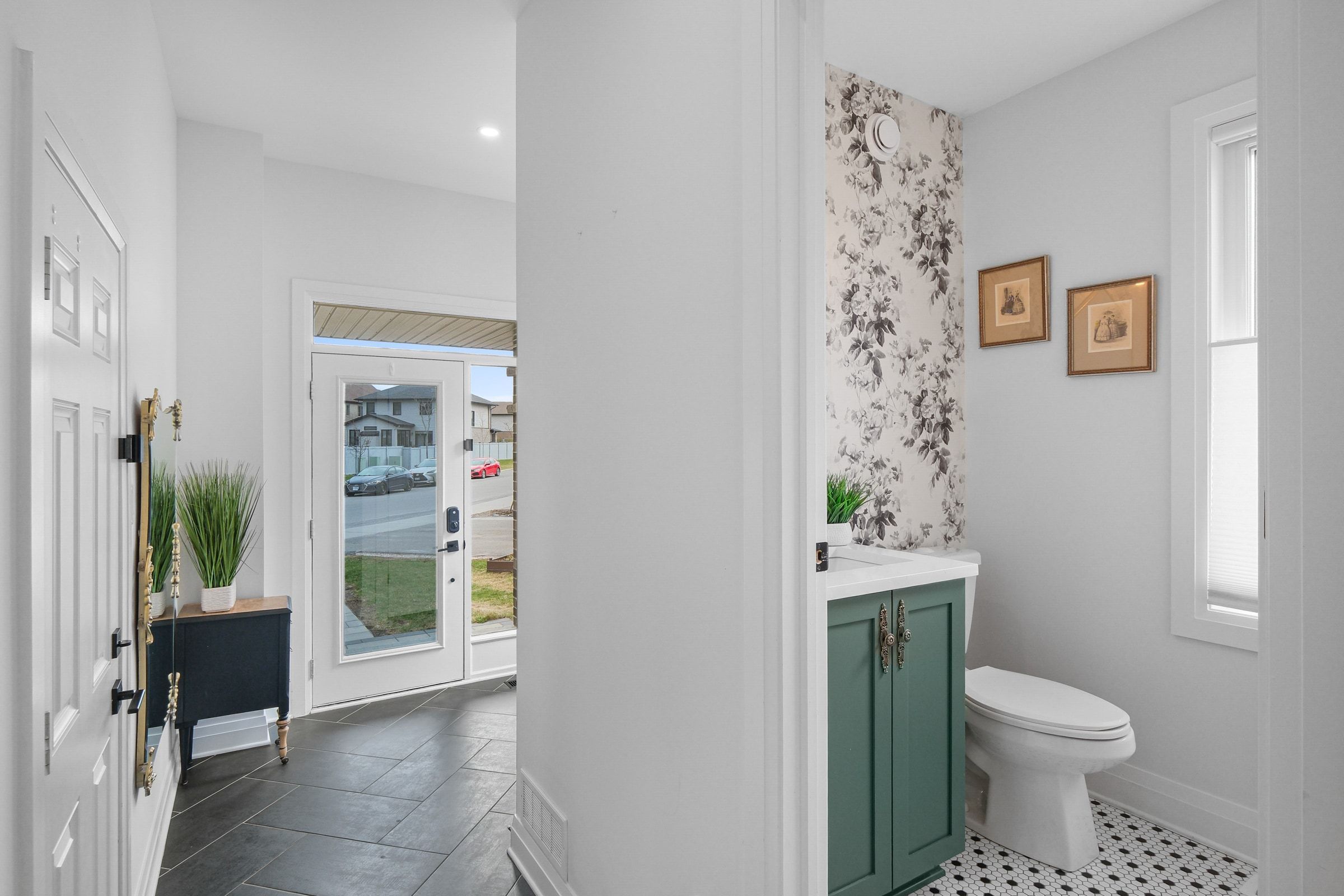 • Bright foyer and large plank hardwood flooring in an open-concept layout.