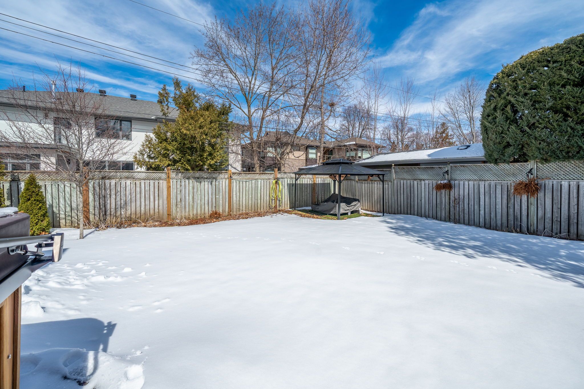Open house sun 29th 2-4 p. M. Welcome to 315 frost avenue, nestled on a quiet, tree-lined street known for its generous lot sizes and a strong sense of community. This is a place where people come to settle down and establish their roots. Set on a spacious pool-sized lot, the home offers generous principal rooms with hardwood floors and plenty of natural light throughout. The spacious living room is anchored by a classic wood-burning fireplace, creating a cozy focal point and flows naturally into the dining room. The main level includes three bedrooms, full bathroom, and a family room just off the kitchen. The finished basement with a 3 piece bathroom, and a bedroom adds flexible space for guests, kids, nanny suite, or a home office. Upstairs, the primary bedroom features a walk-in closet and ensuite, offering a private retreat away from the main living areas. Enjoy the privacy of your fenced-in backyard with a two tiered deck, gazebo and hot tub. Just a few blocks from the ottawa hospital and cheo, only 10 minutes to downtown and a 3 km walk to lansdowne park, this home offers an unbeatable blend of convenience and tranquility. With easy access to the highway and airport, you are perfectly positioned for both daily commuting and lifestyle.